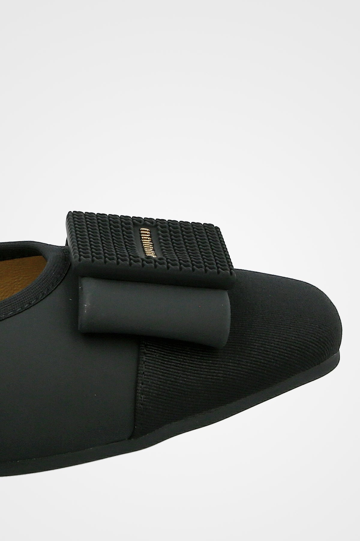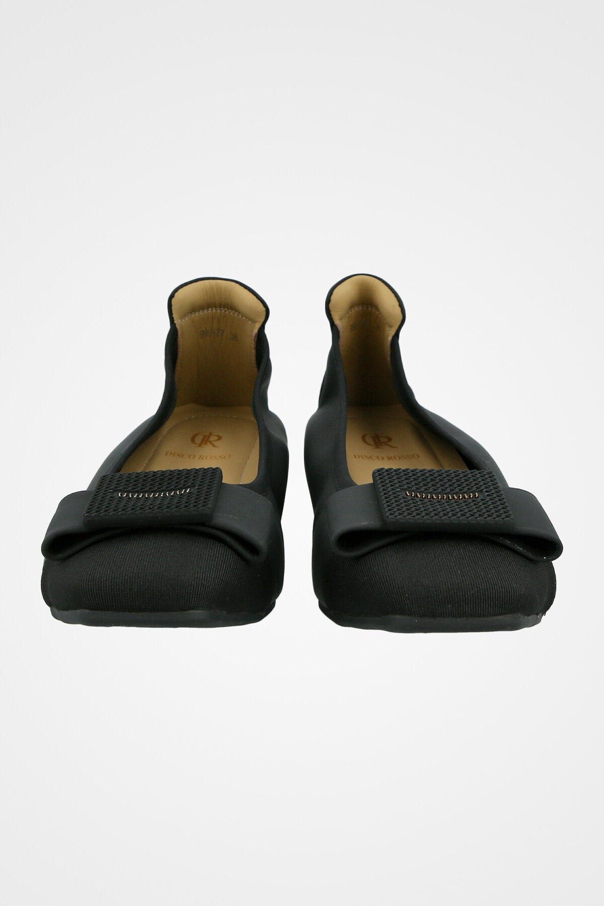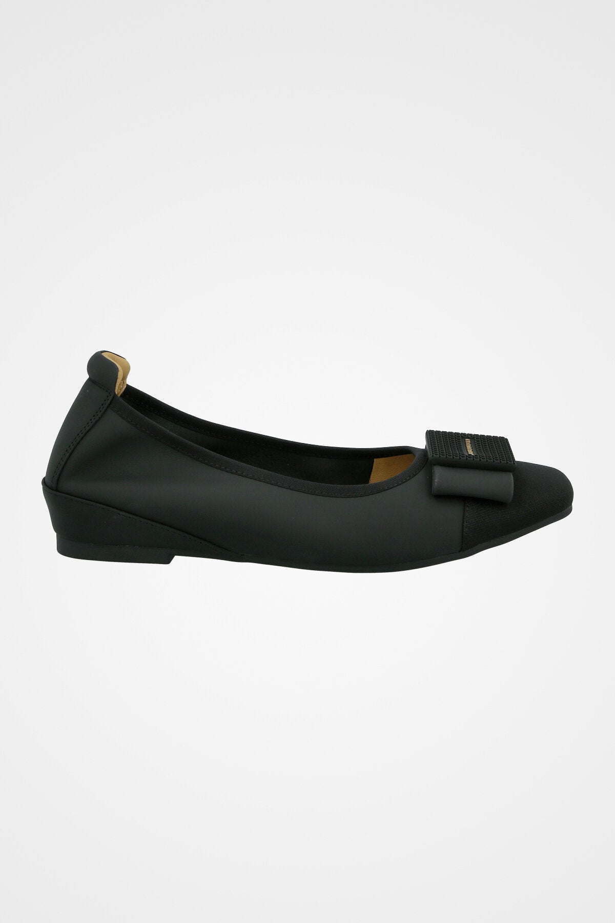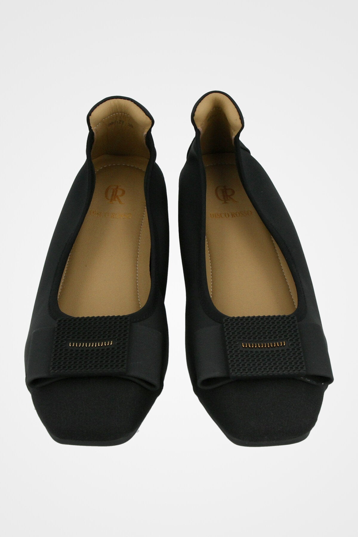 נעל בובה פלטה שחורה עם קדמת זמש מעוטרת אבזם ריבועי תואם מראה אופנתי וקלאסי