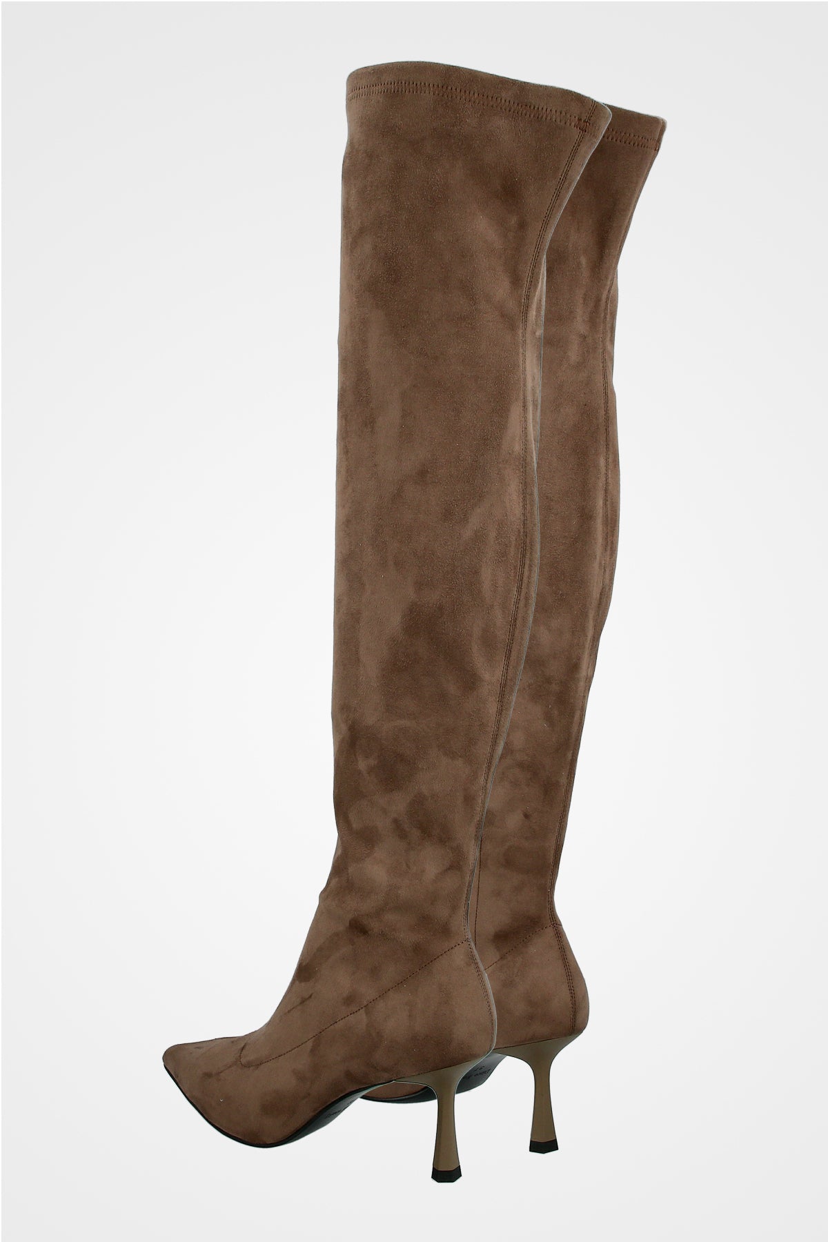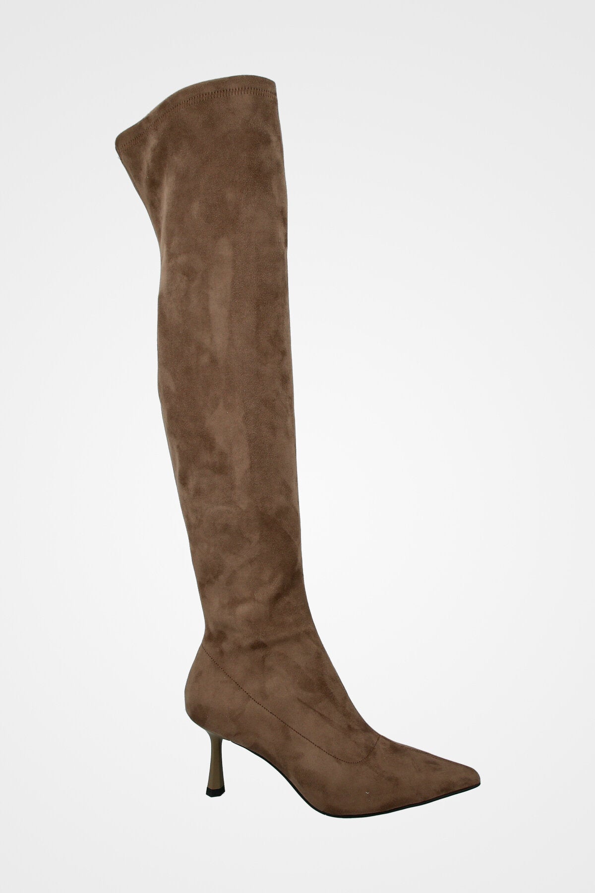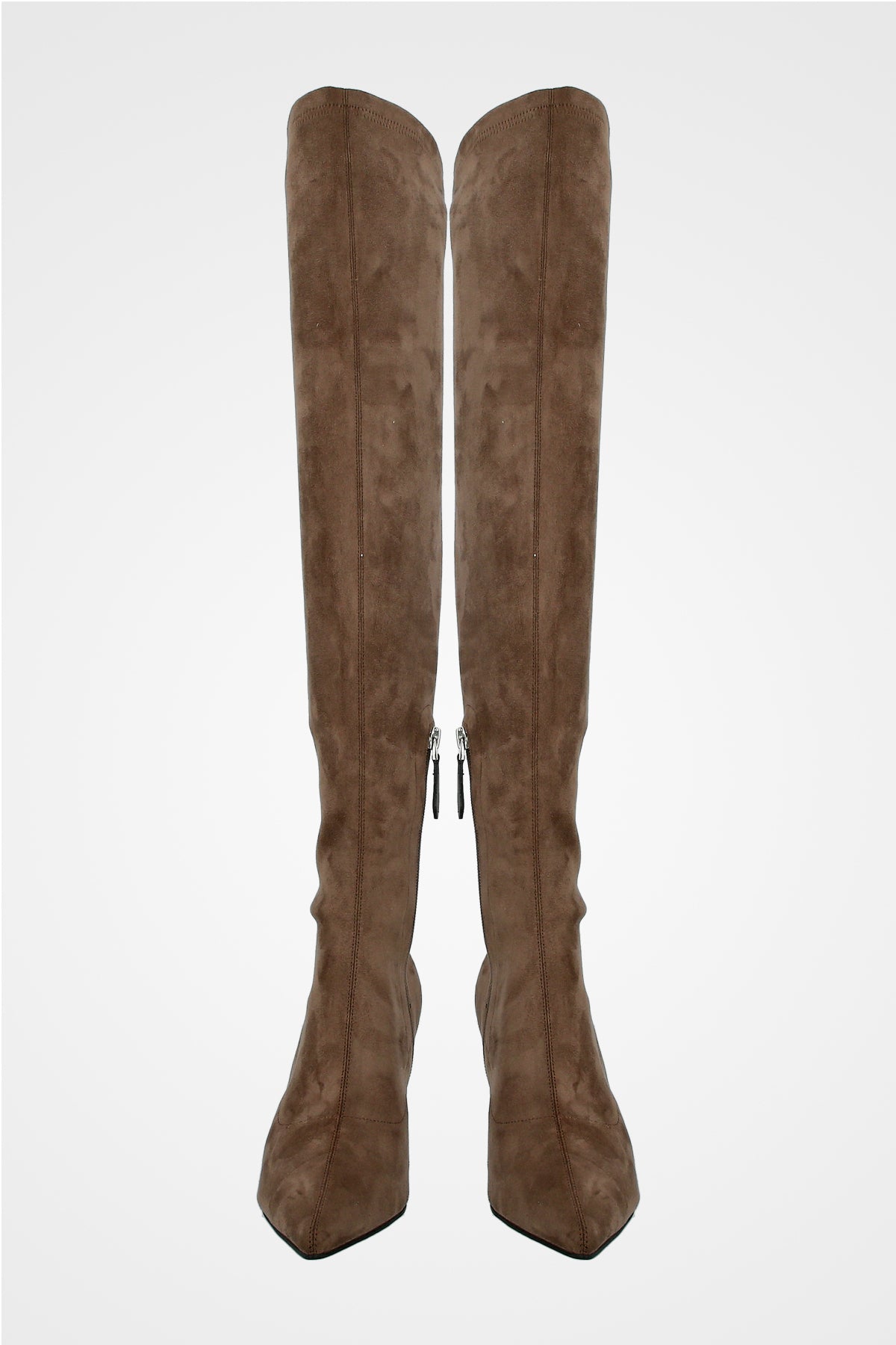 מגף שפיץ אפור אלסטי, בעל עקב בינוני ומראה אלגנטי