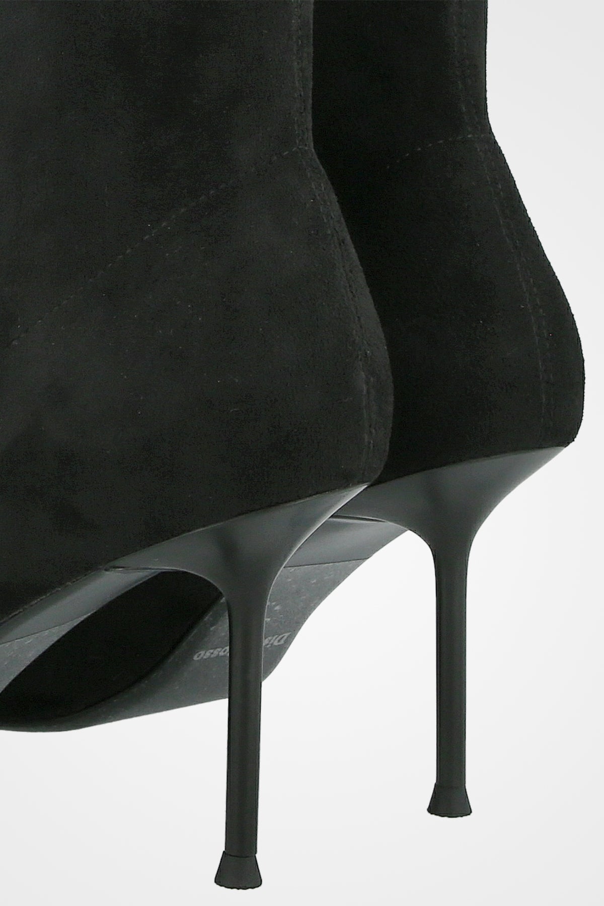 מגף גרב שחור צמוד, עם חזית מחודדת ועקב גבוה ודק