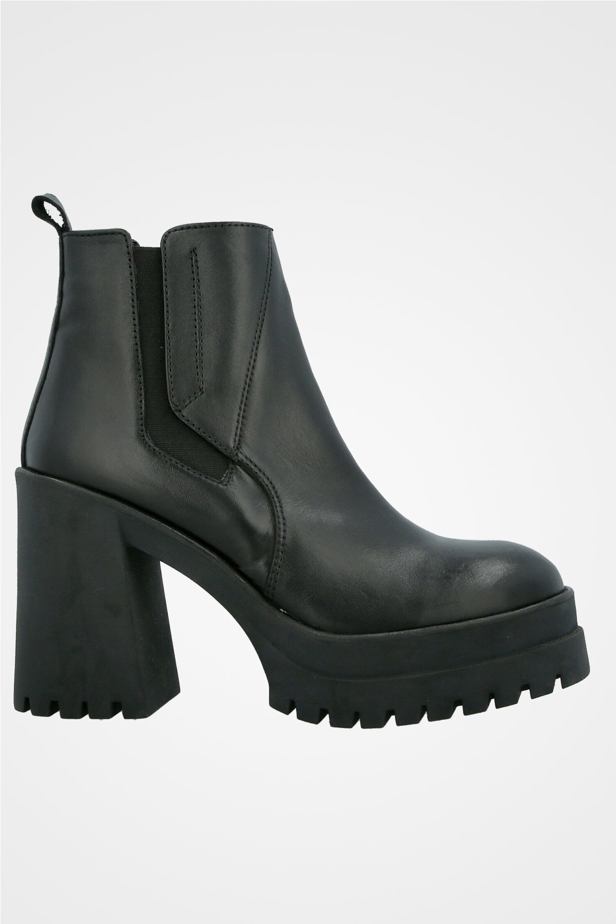 מגפון עקב עבה מעור בצבע שחור, עם סוליה טרקטור יציבה ונוחה