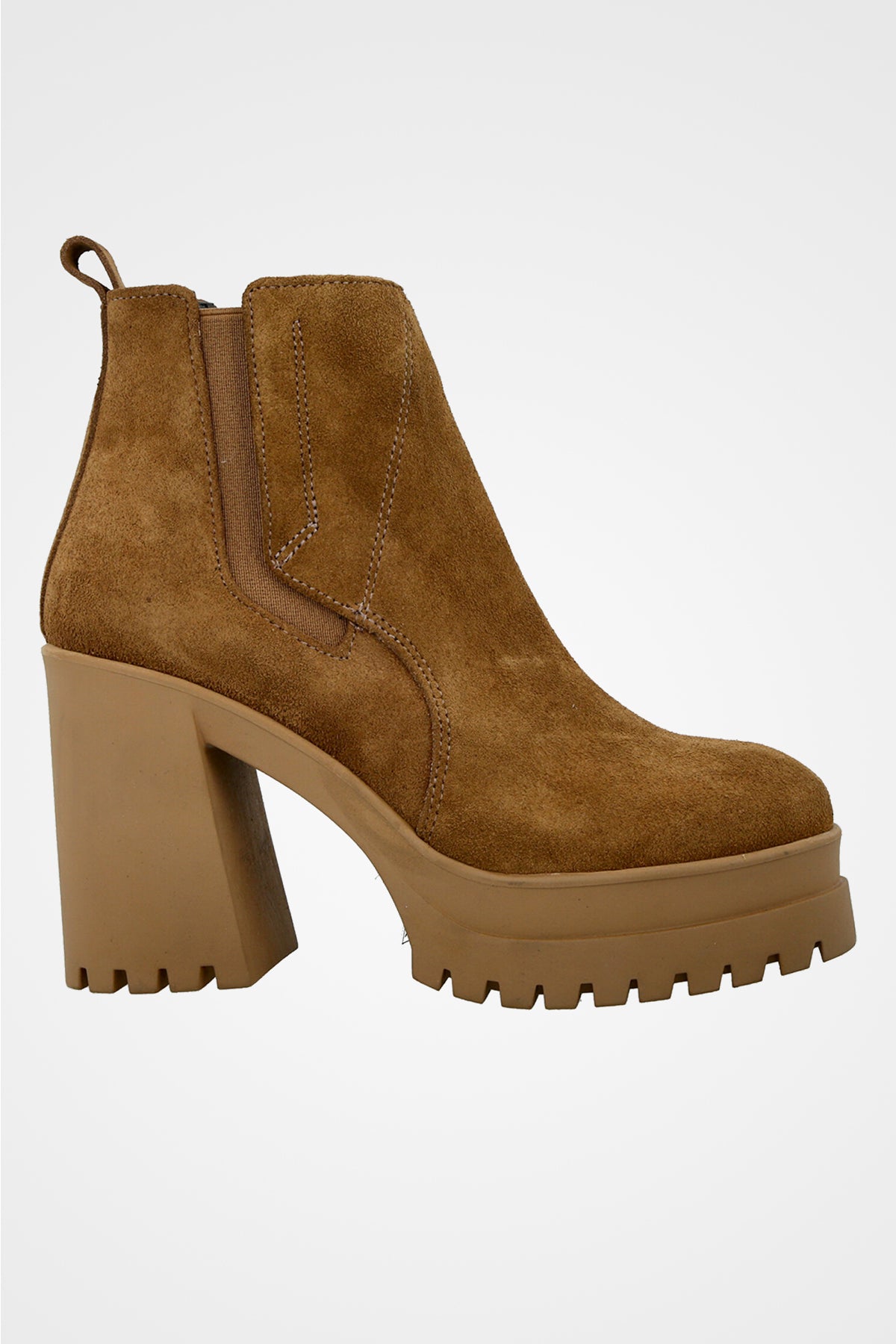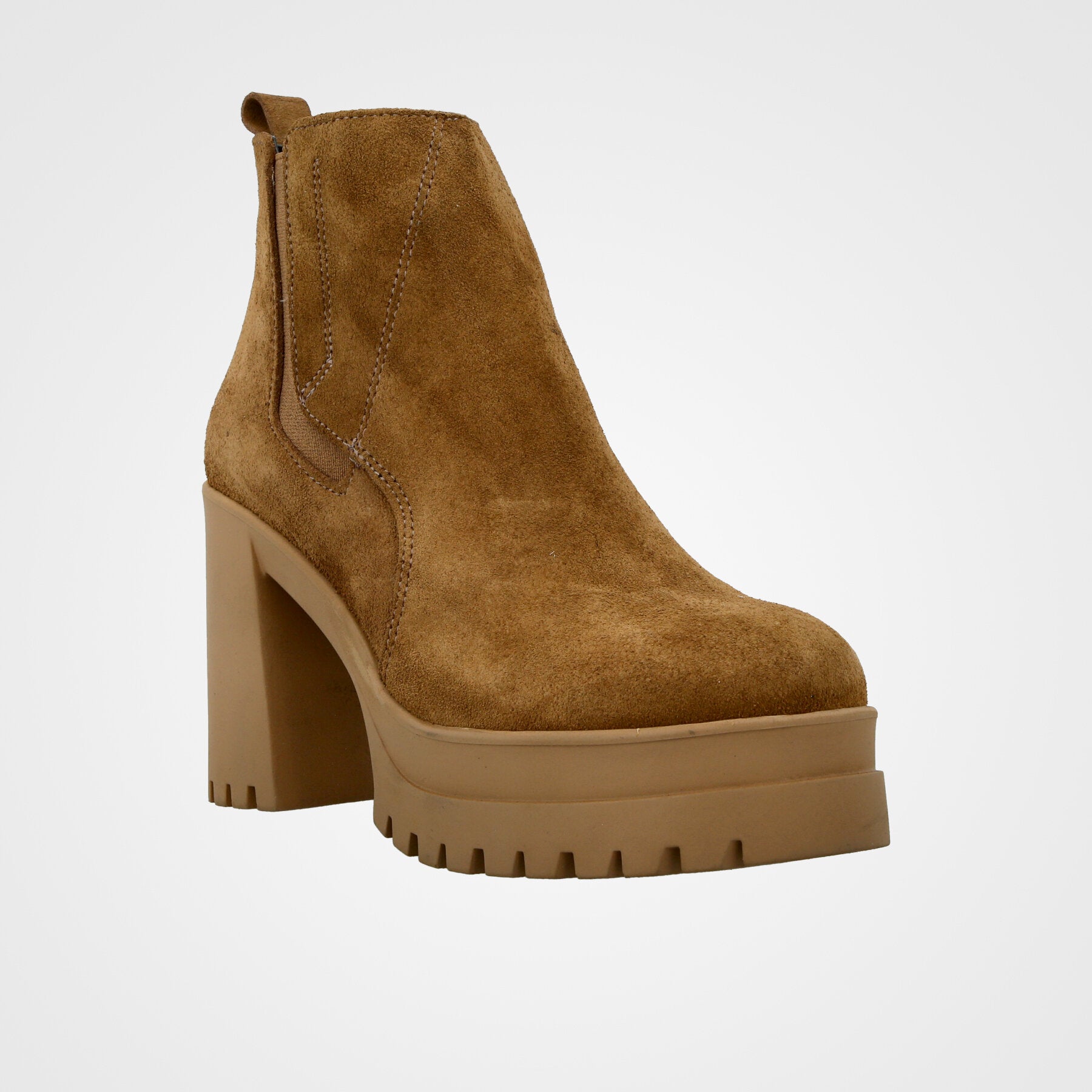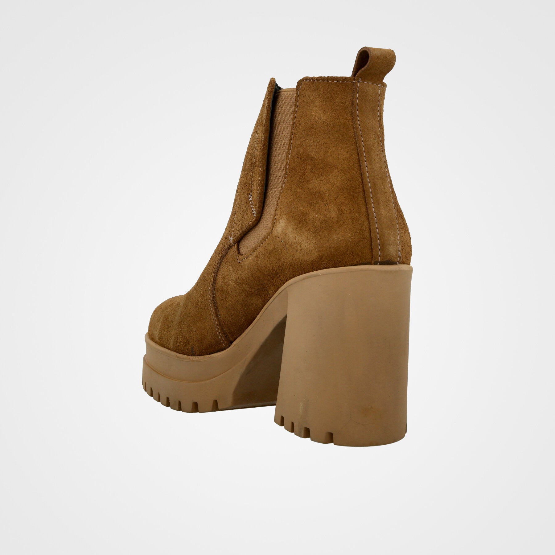 מגפון עקב עבה מעור זמש בצבע קאמל, עם סוליה טרקטור יציבה ונוחה