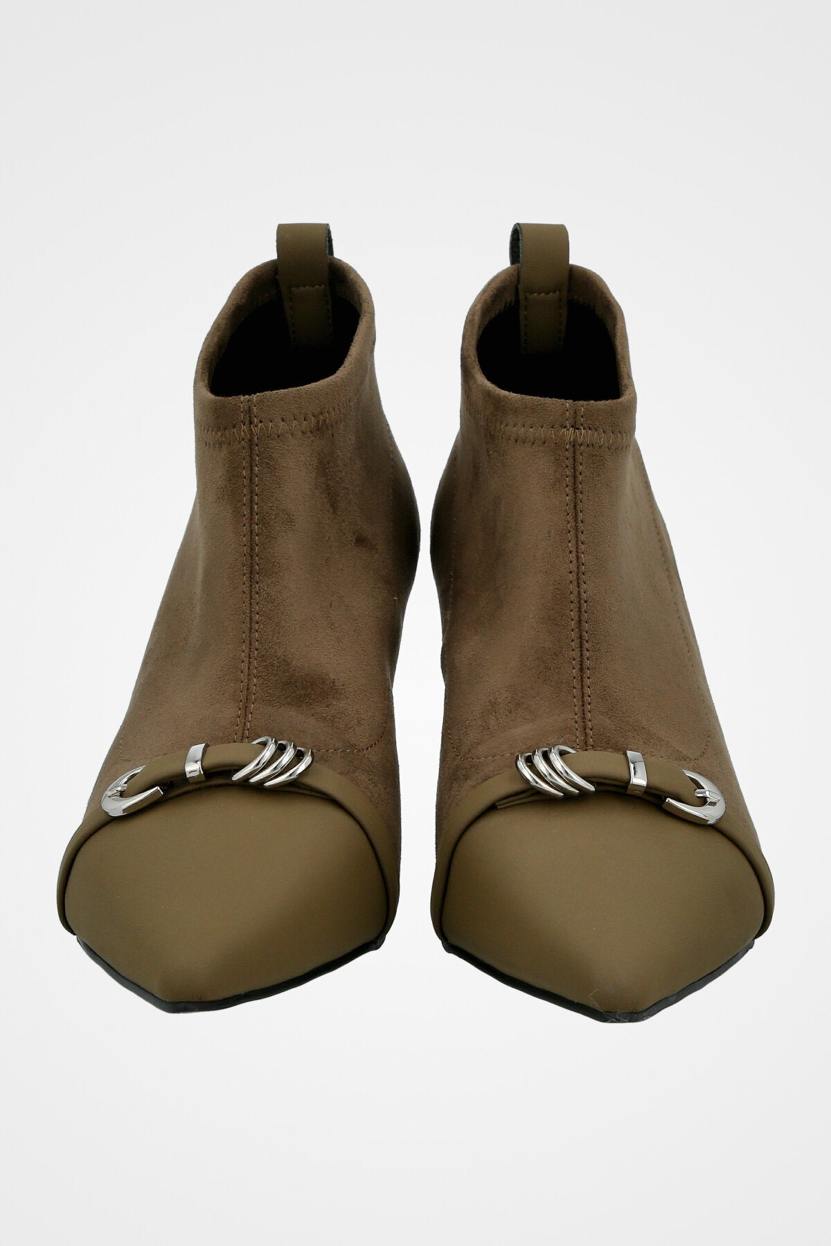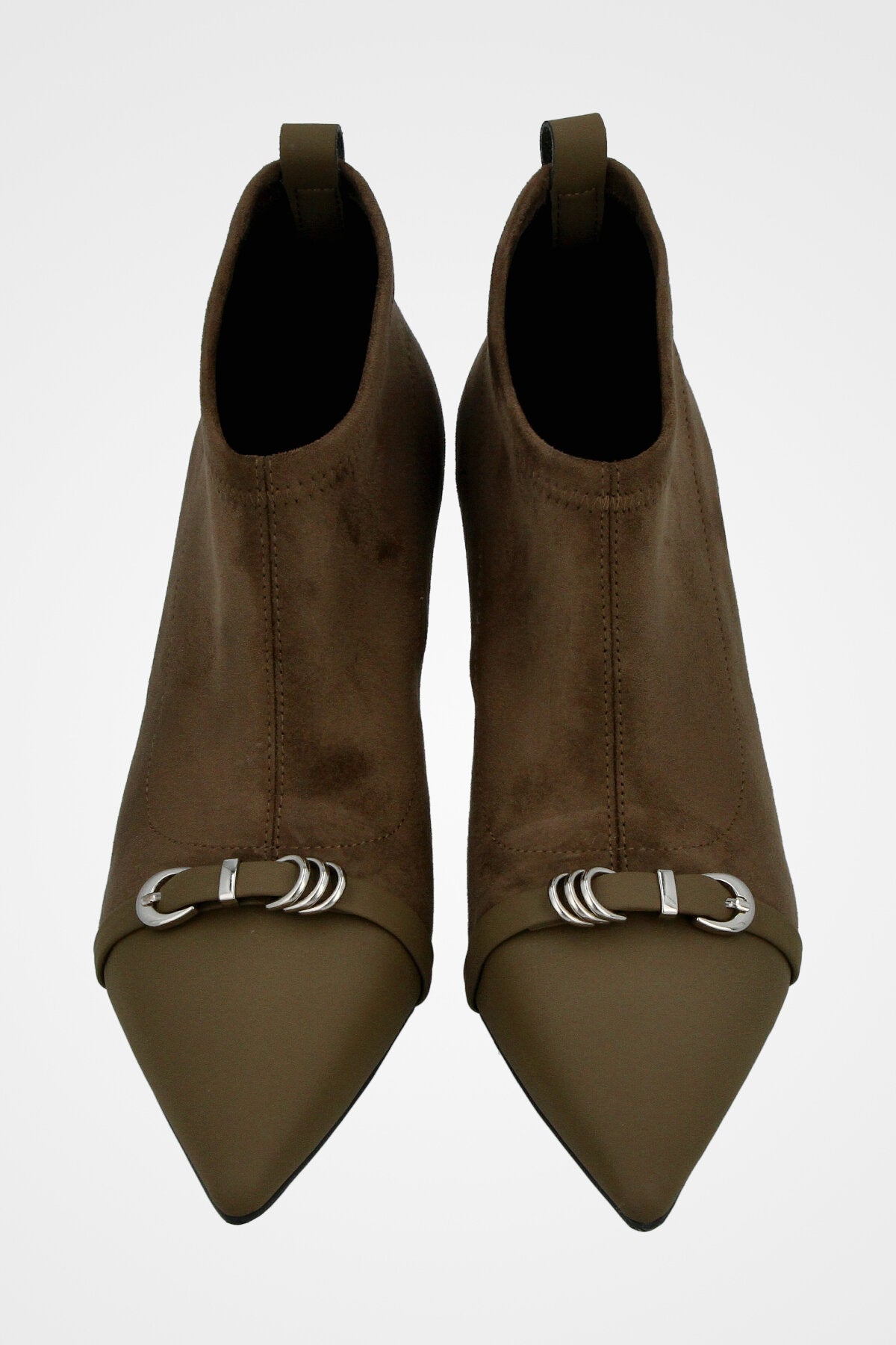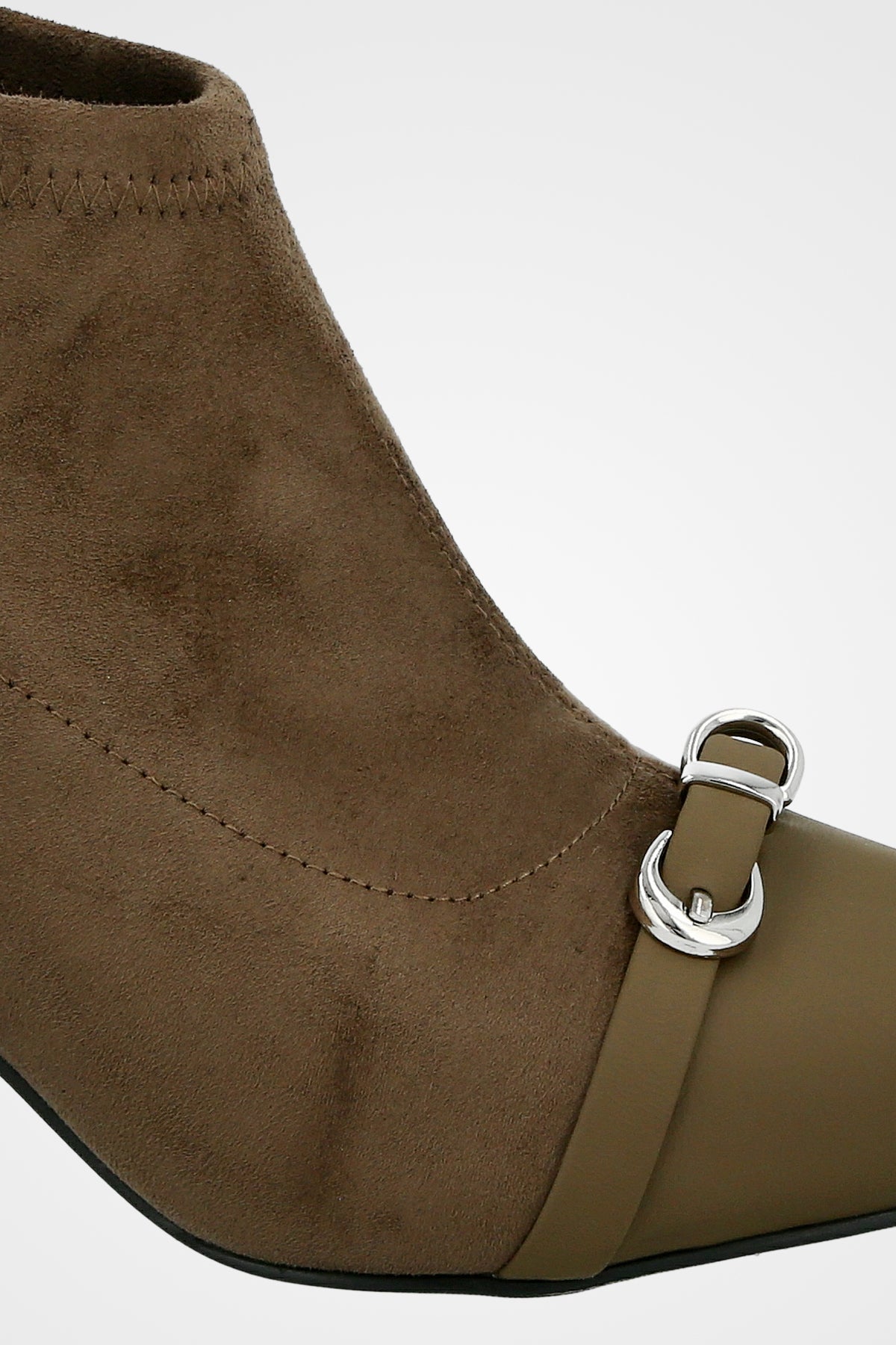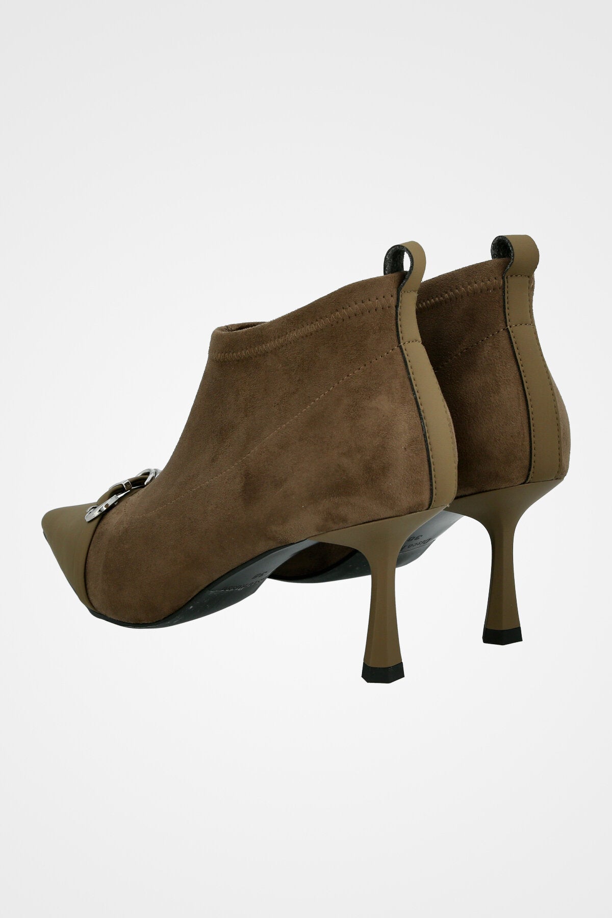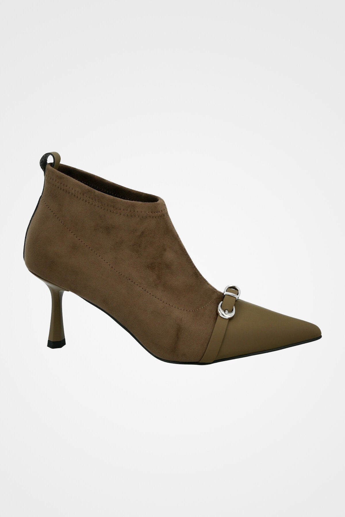 נעל עקב שפיץ, עם רצועת עור דקה ואבזם כסוף משולב עם עקב דק
