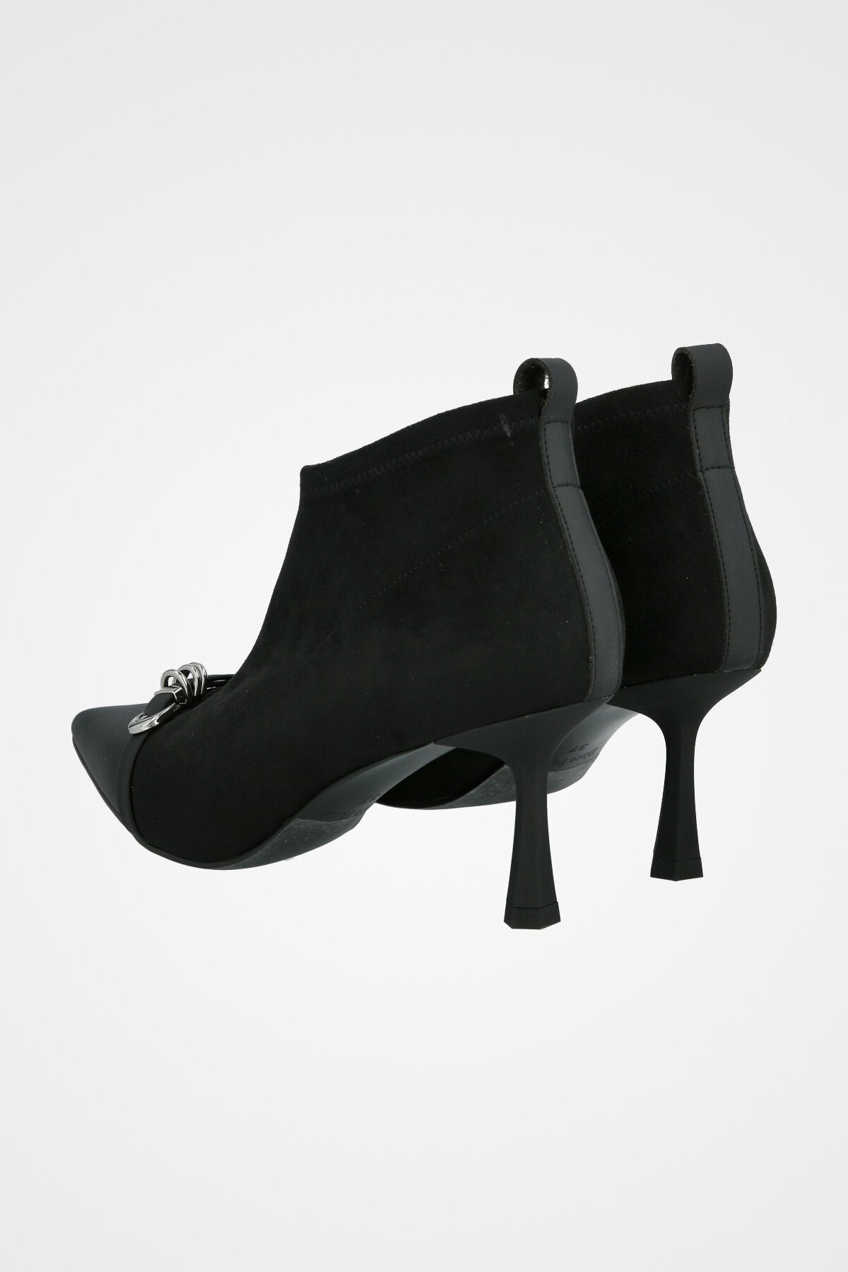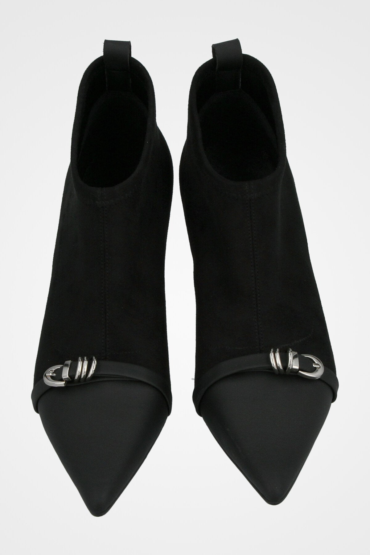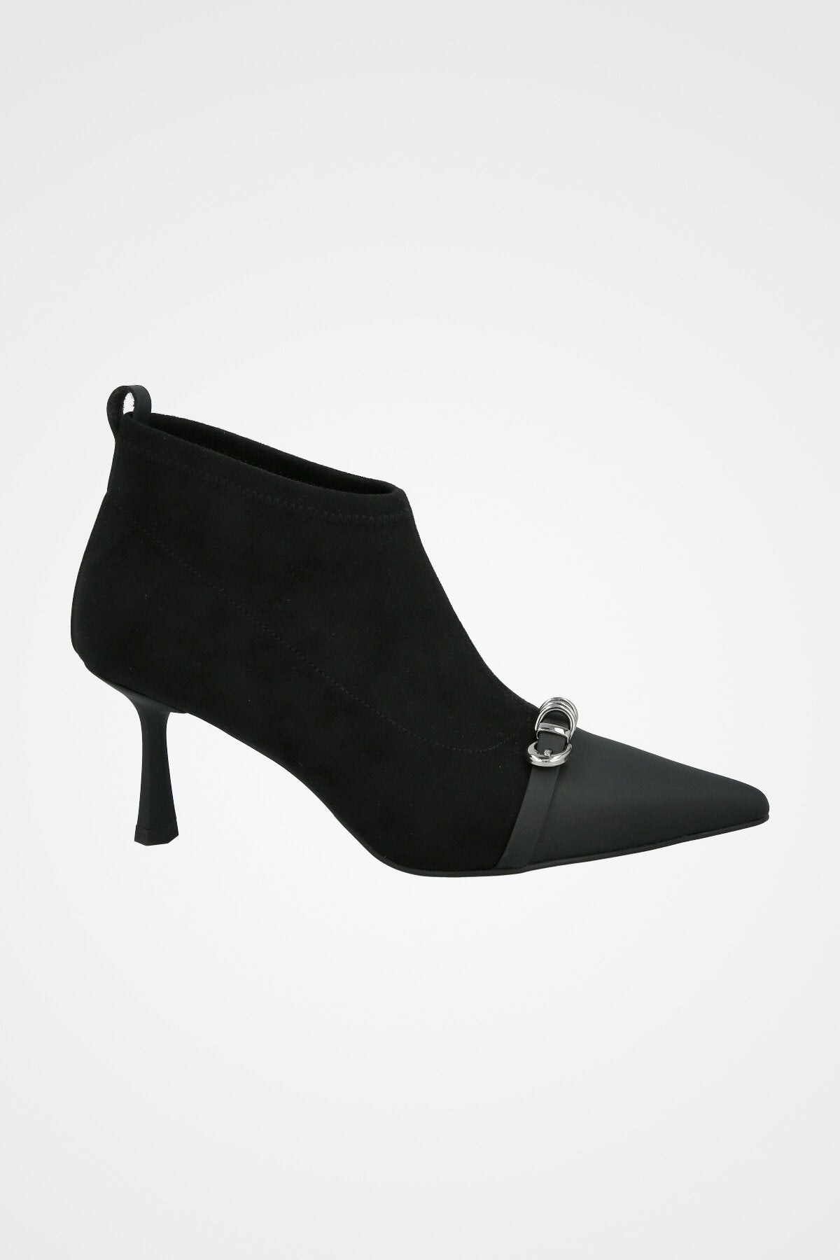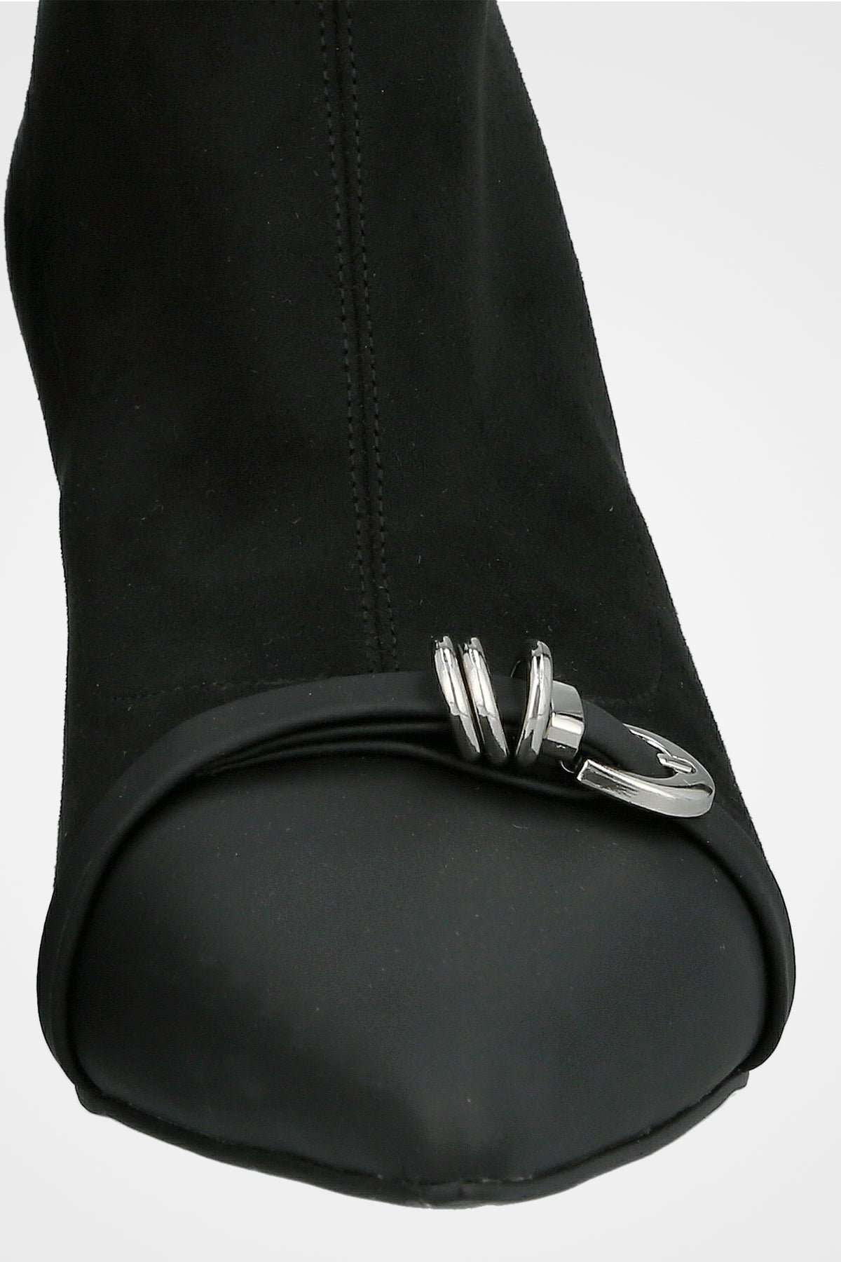 מגפון שפיץ שחור אלגנטי מלייקרה, עקב דק בינוני ורצועת פירסינג מתכתית