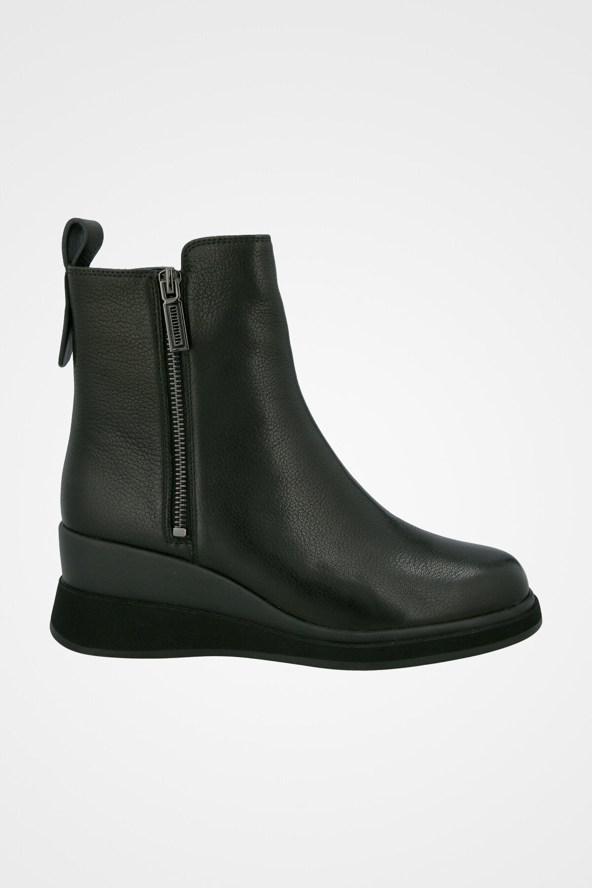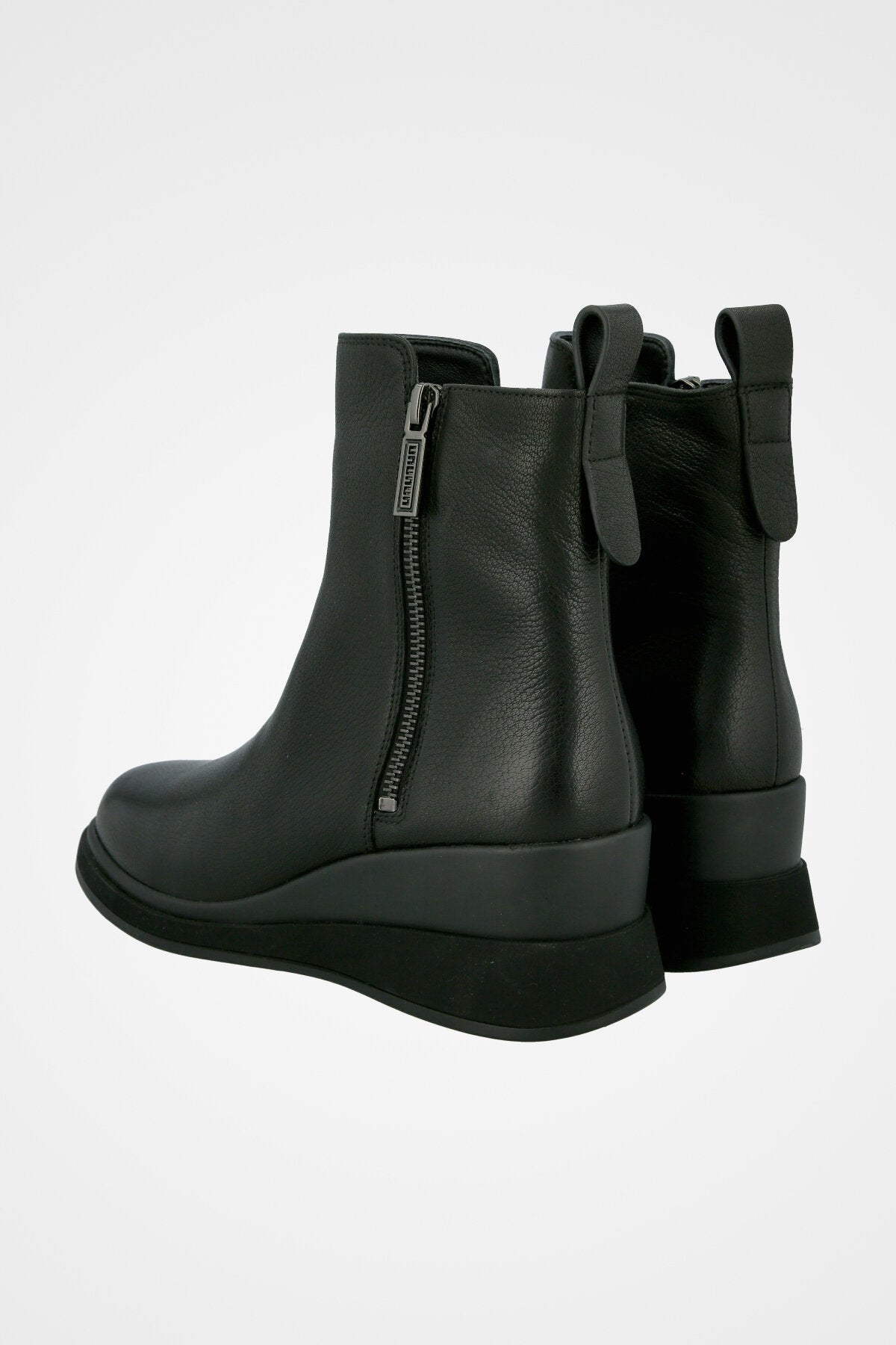 מגפון שחור עם רוכסן צדדי, סוליית טרקטור שחורה מוגבהת ורצועת משיכה אחורית בעיצוב נוח ויומיומי