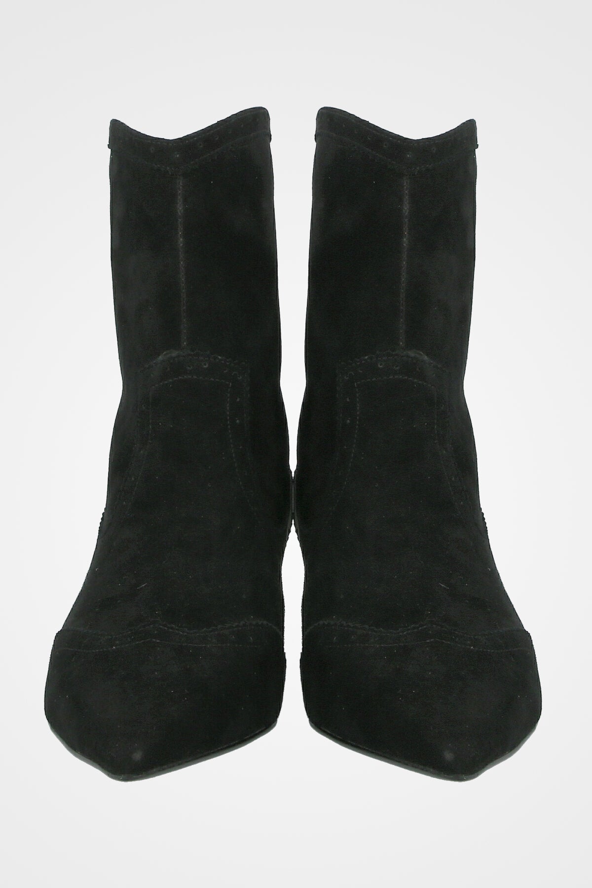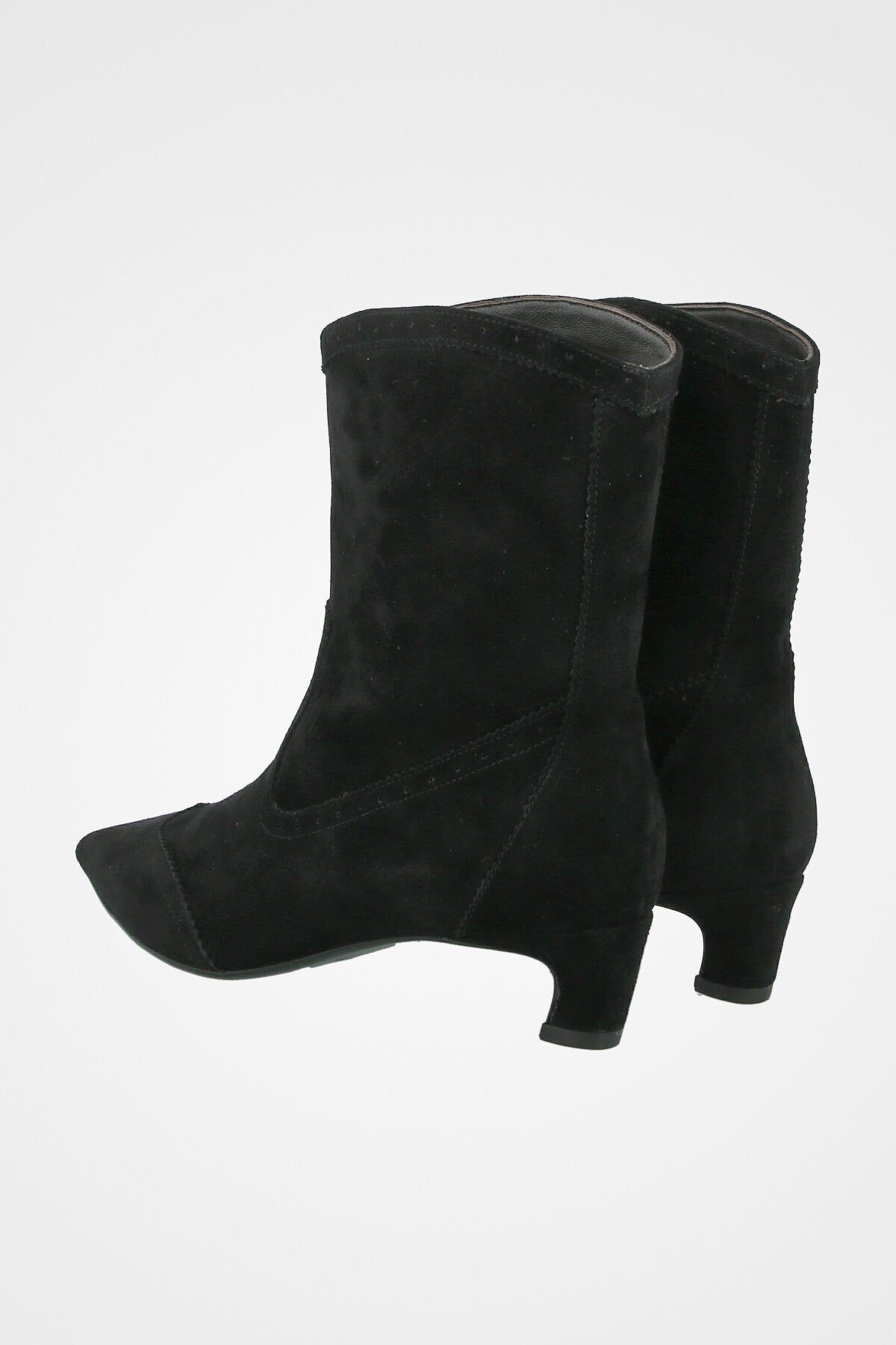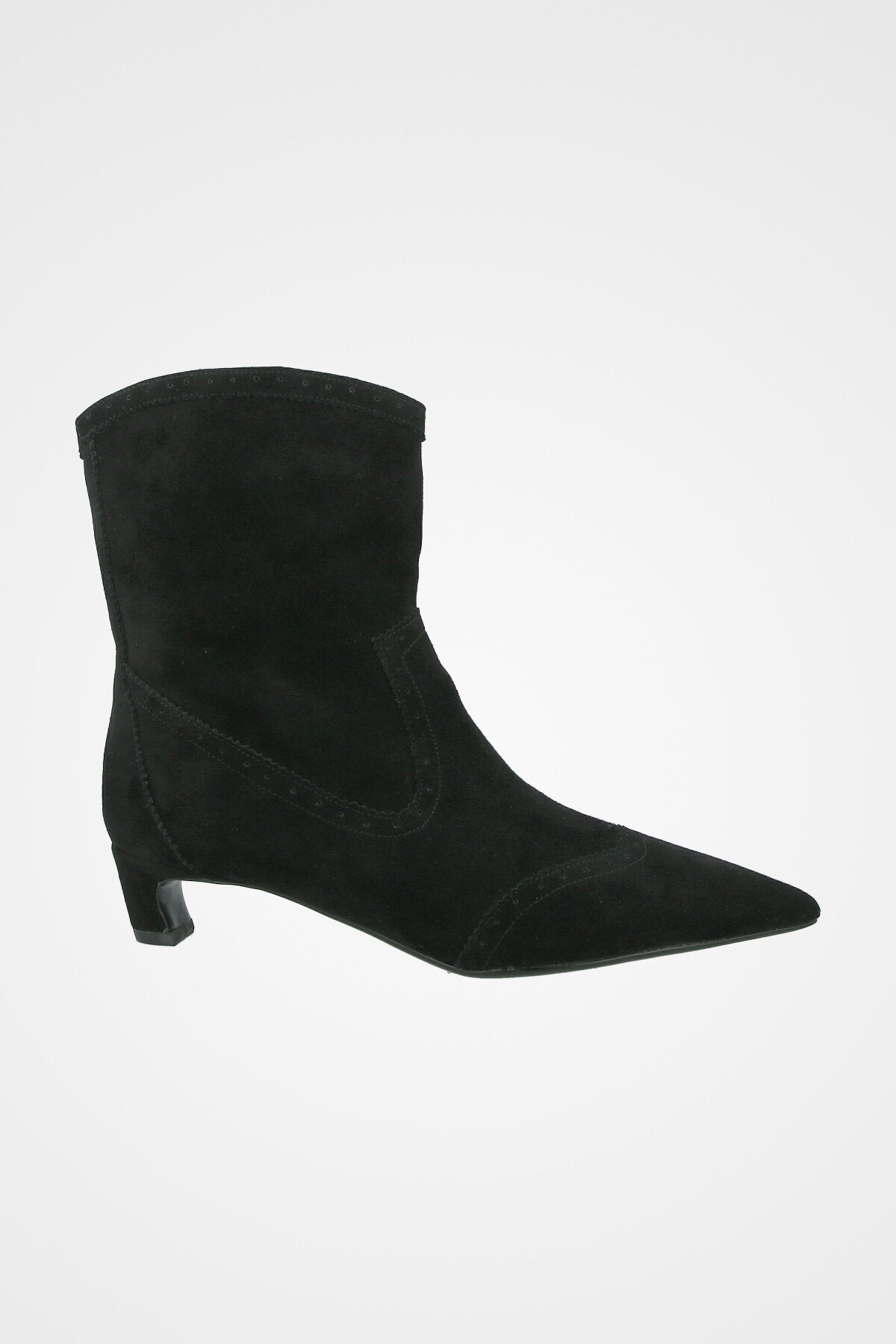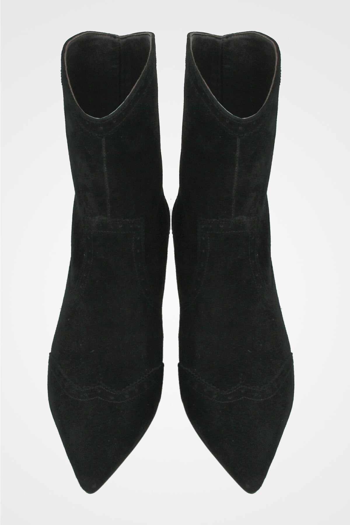 מגף קרסול שחור מזמש, בעיצוב מחודד עם עקב נמוך אלגנטי