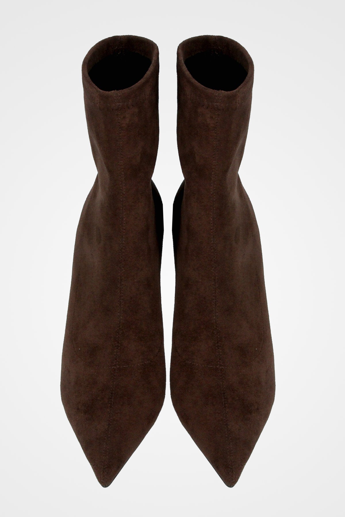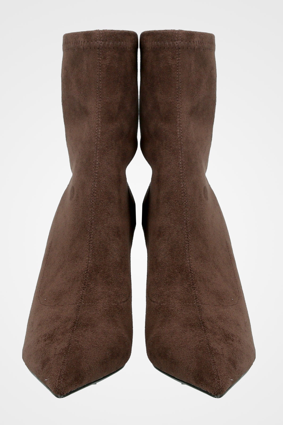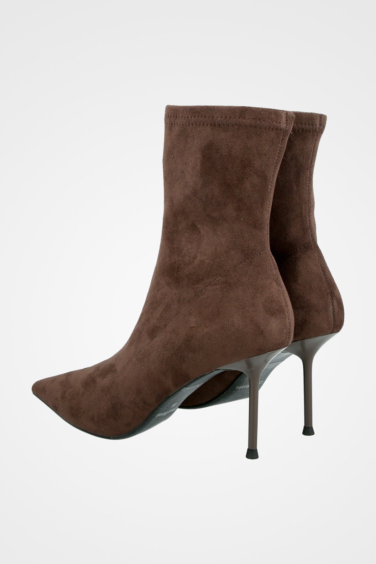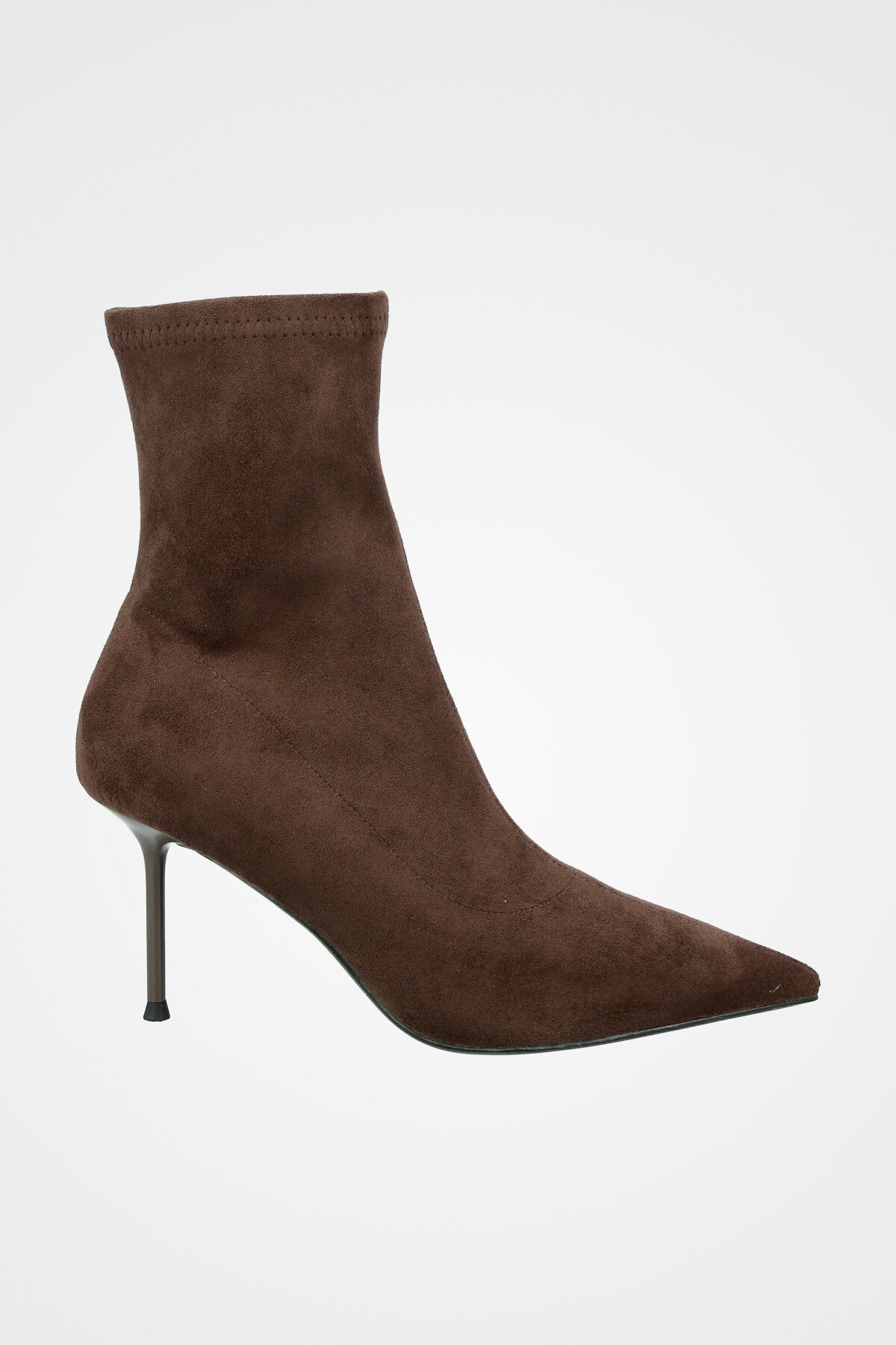 מגף גרב חום צמוד, עם חזית מחודדת ועקב גבוה ודק