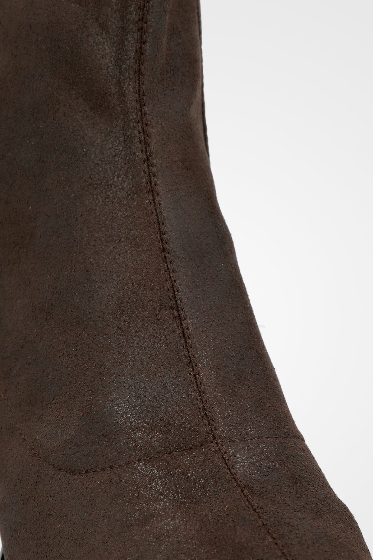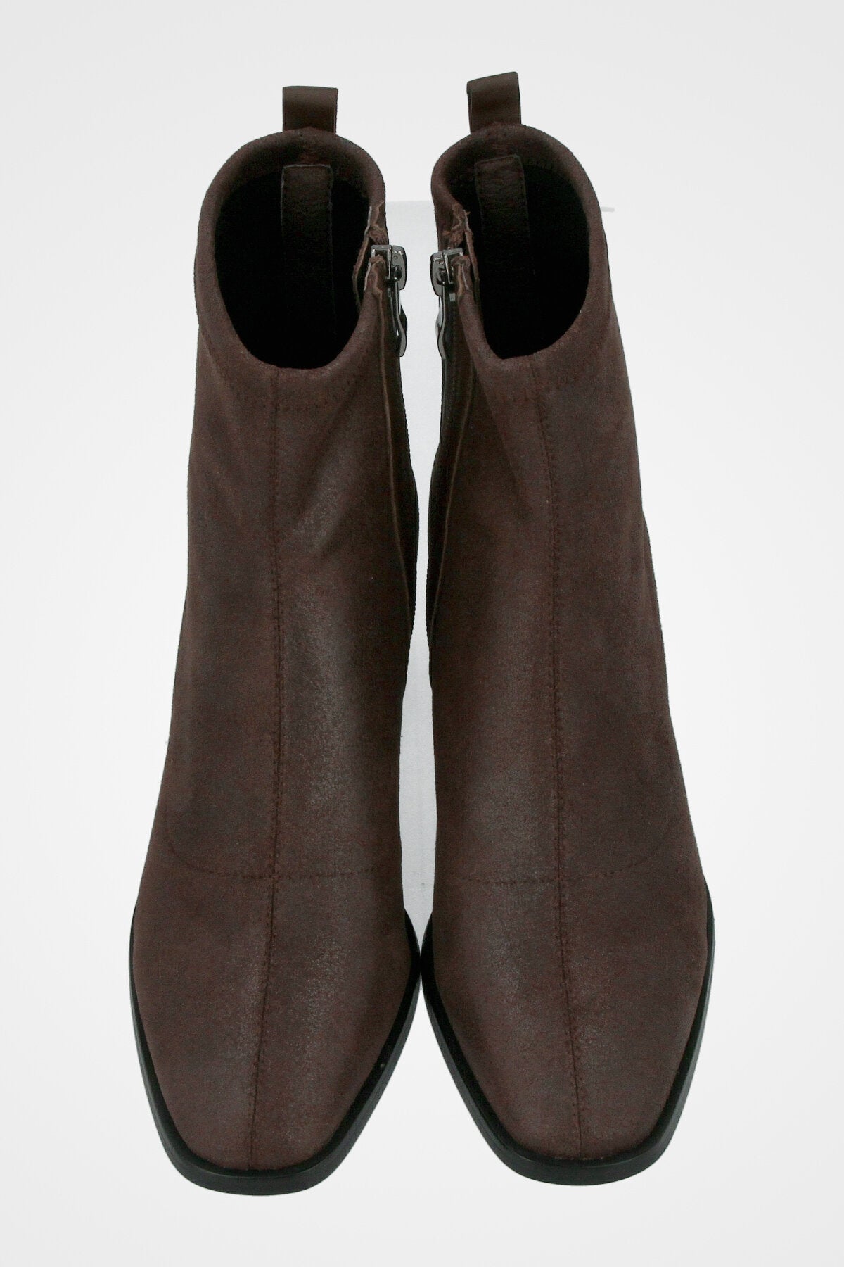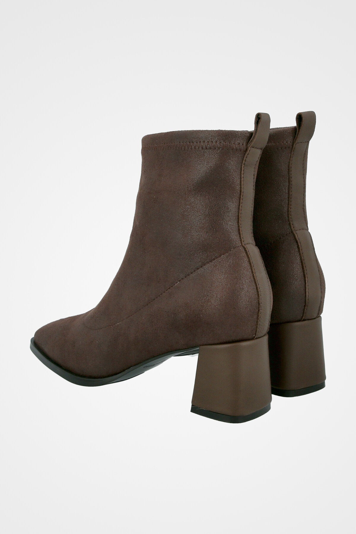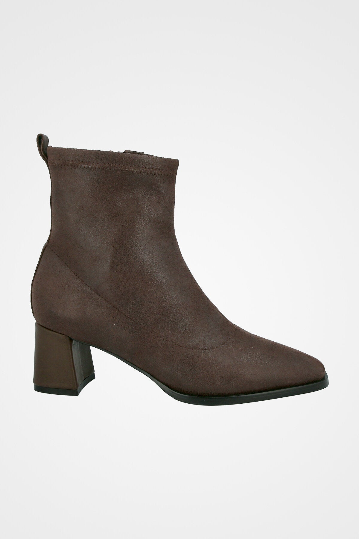 מגפון אלגנטי חום עם חרטום מעוגל, עקב מרובע בינוני ורצועת משיכה אחורית, בעיצוב קלאסי ונקי