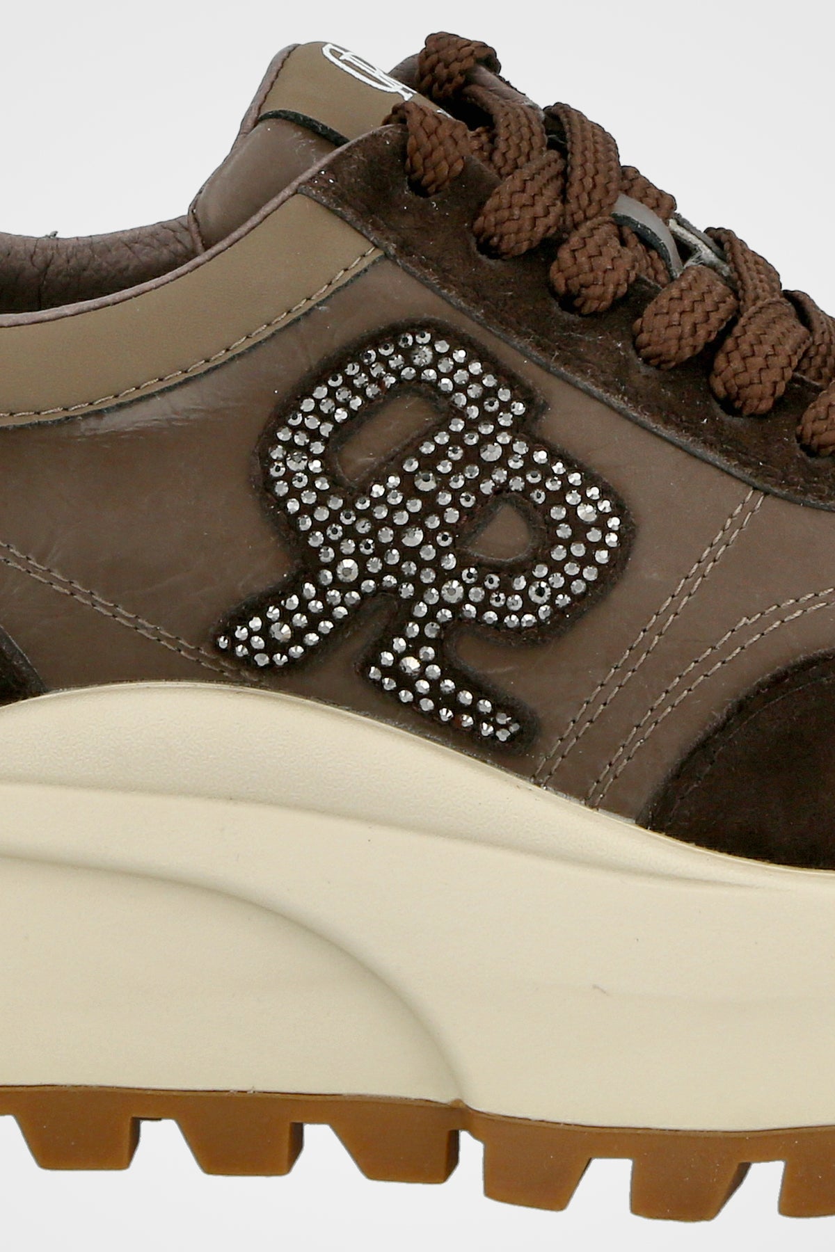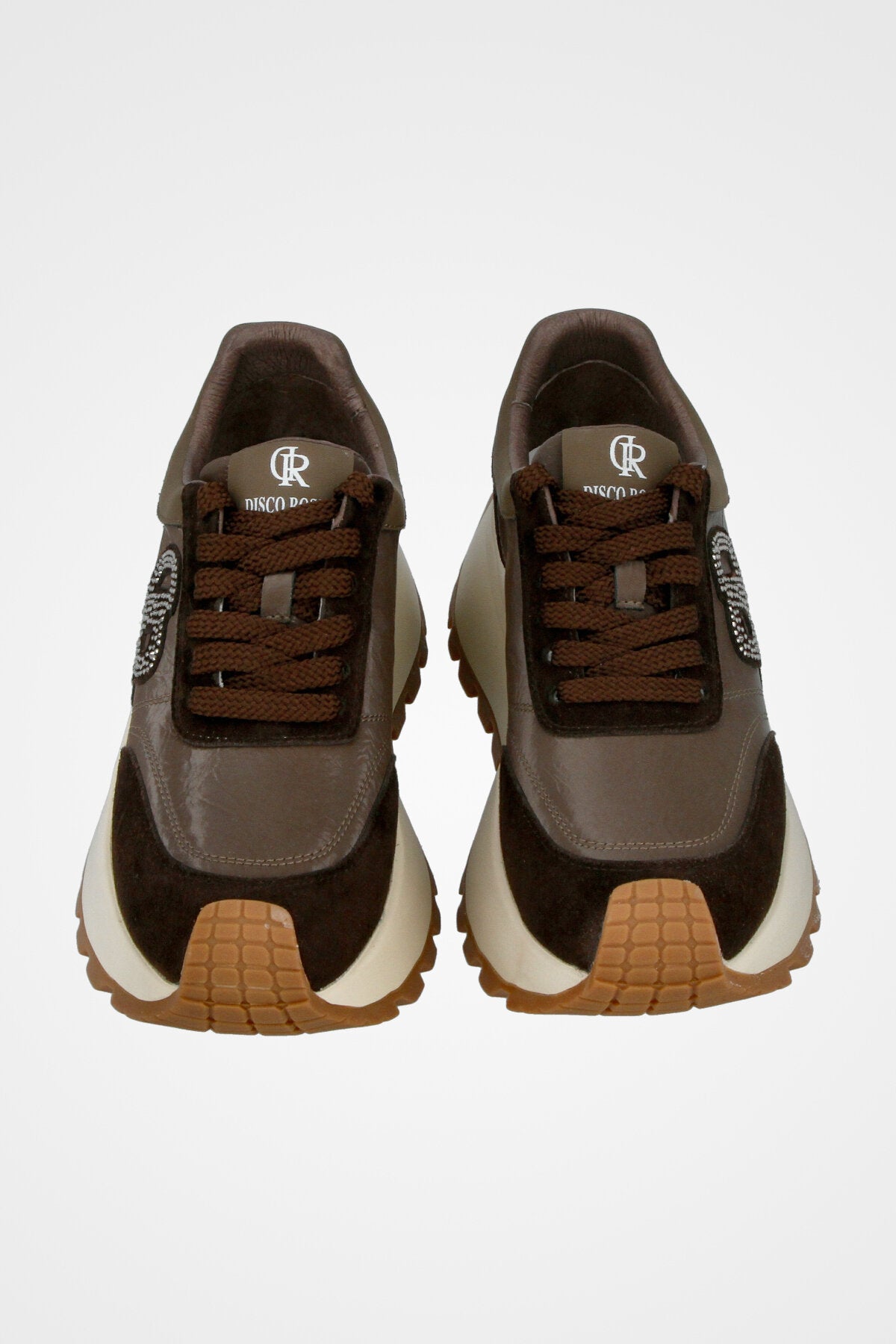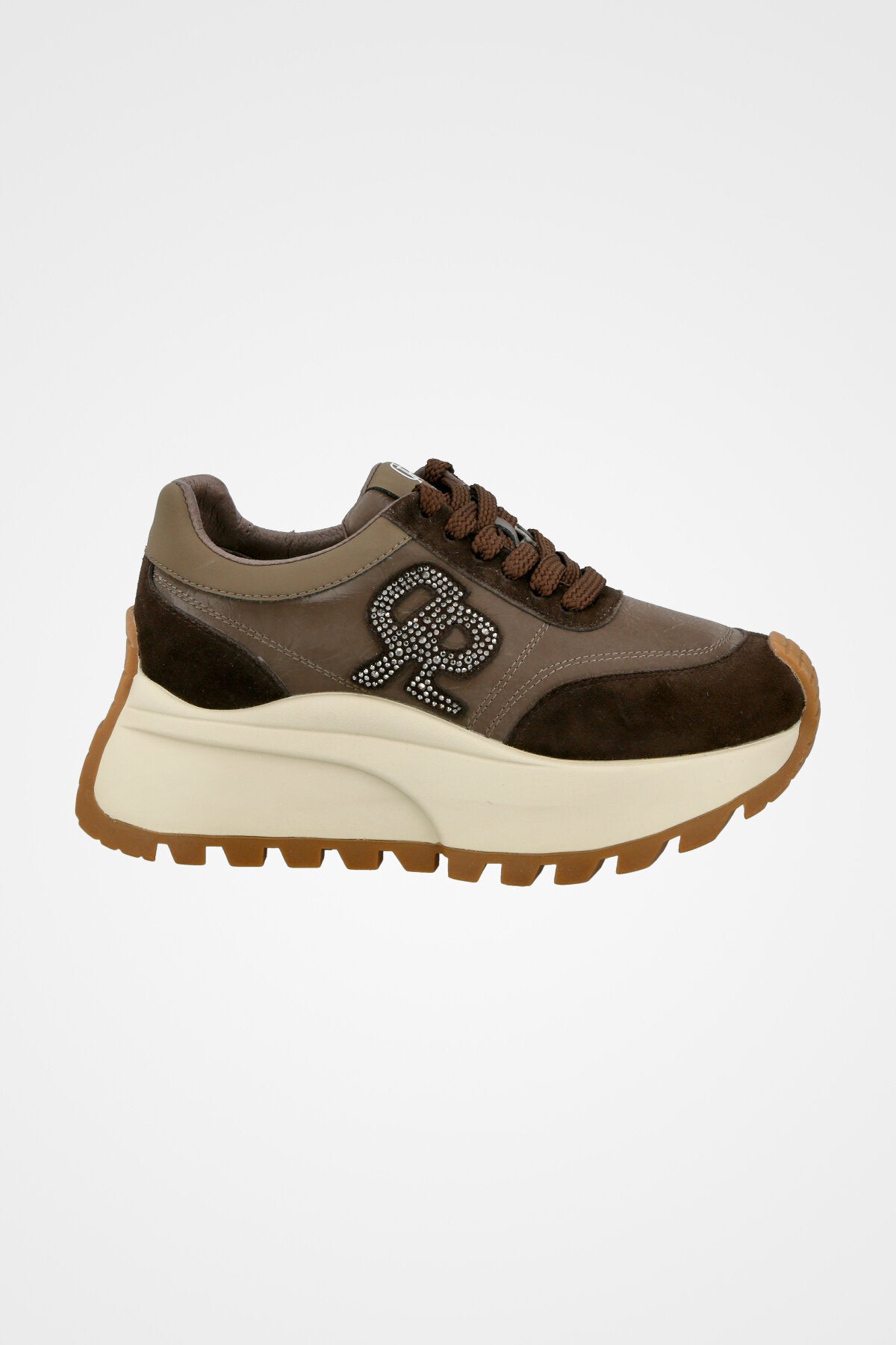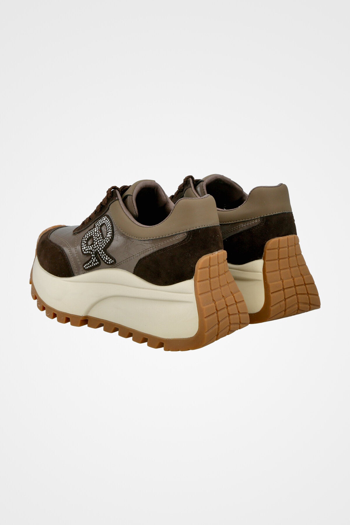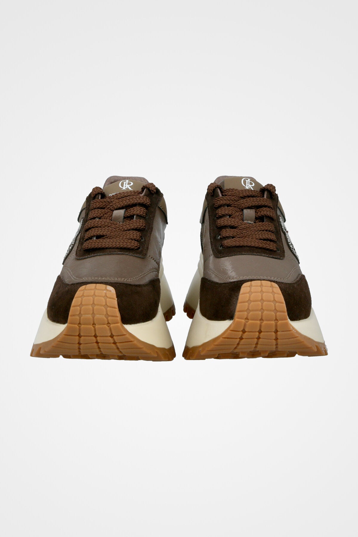 סניקרס בשילוב של צבעי חום בהיר וזמש בצבע חום כהה, בעלות סולייה עבה בשילוב של שמנת עם תחתית משוננת בצבע דבש