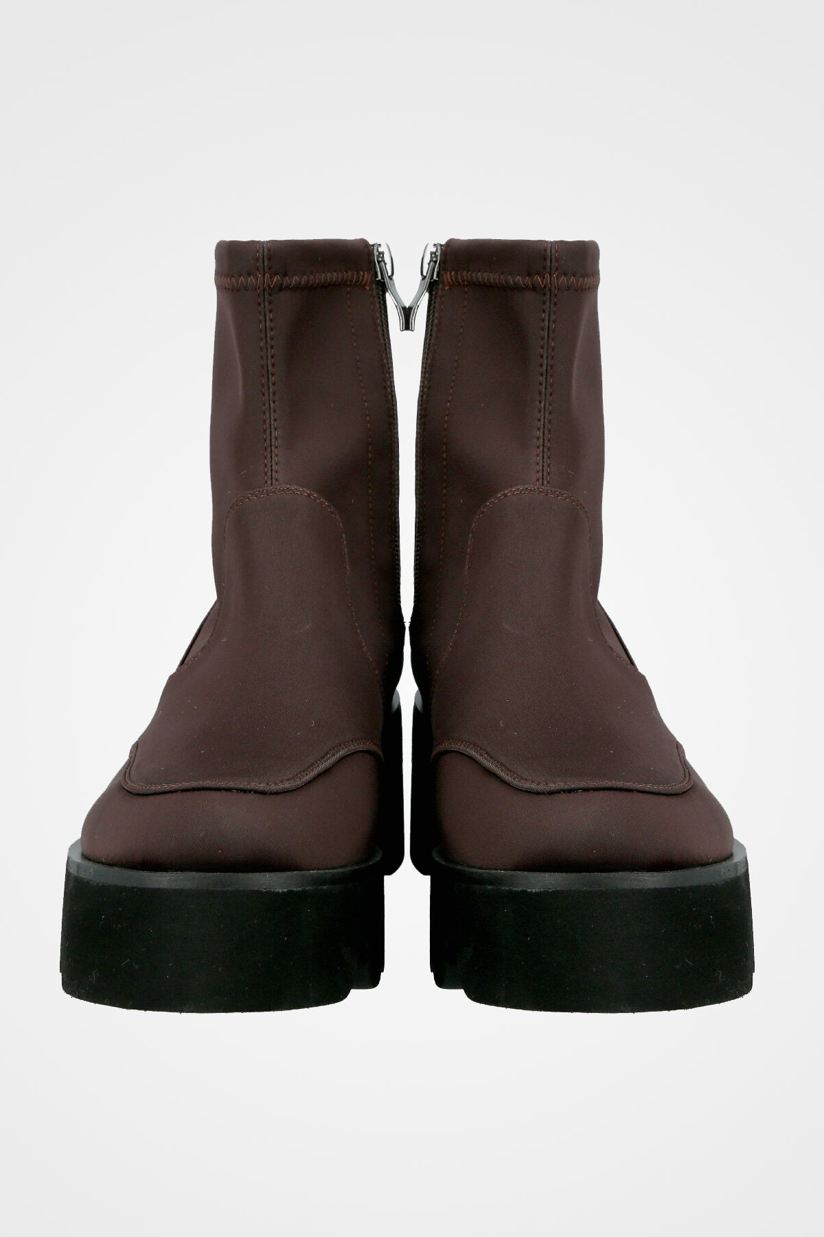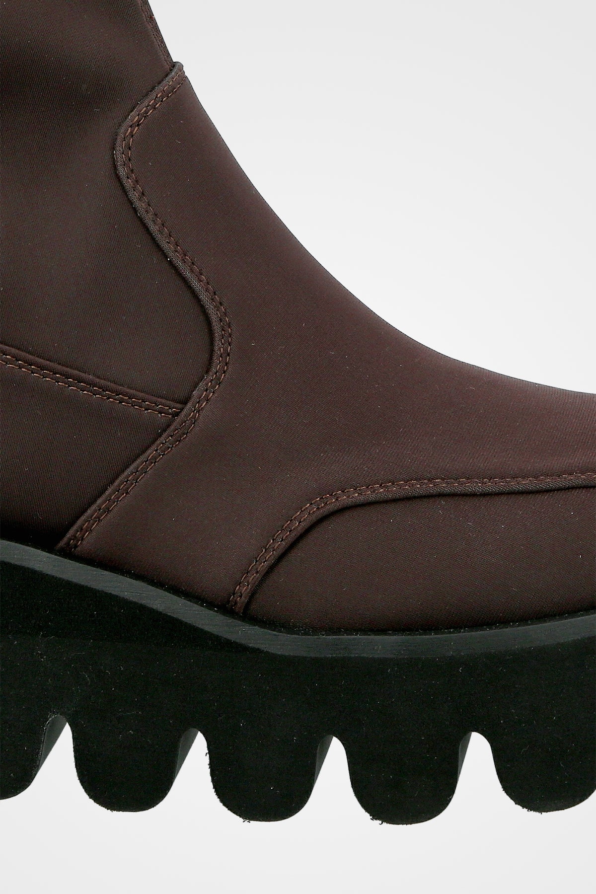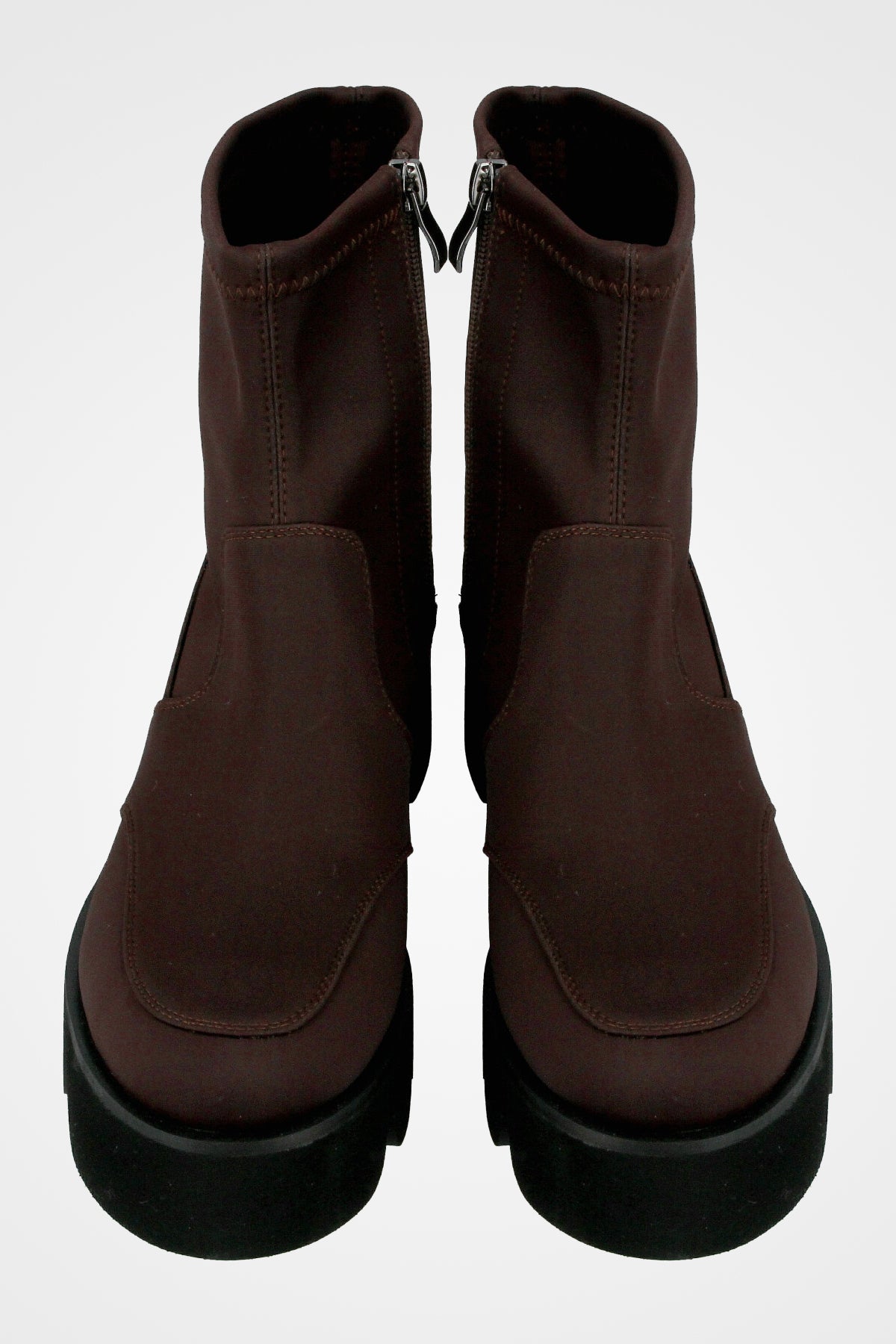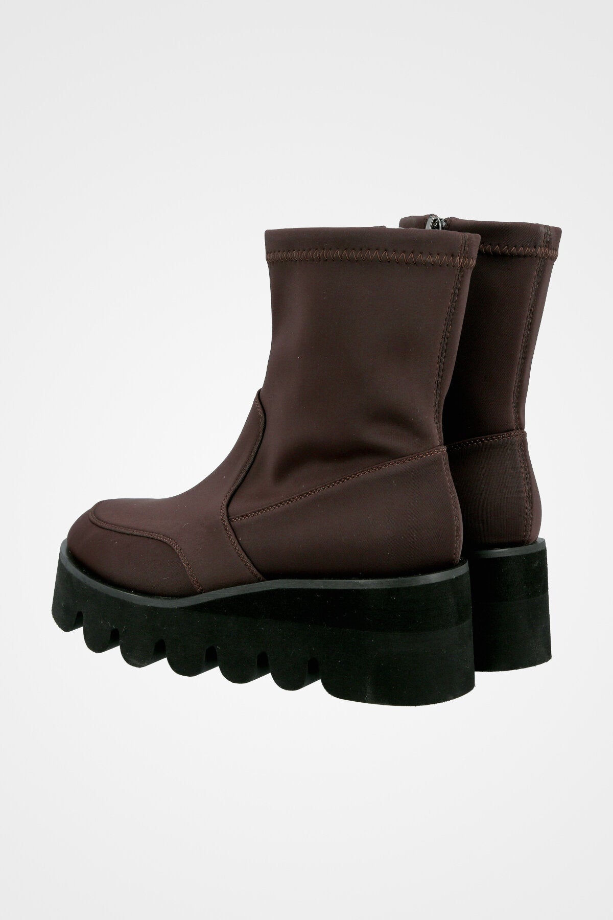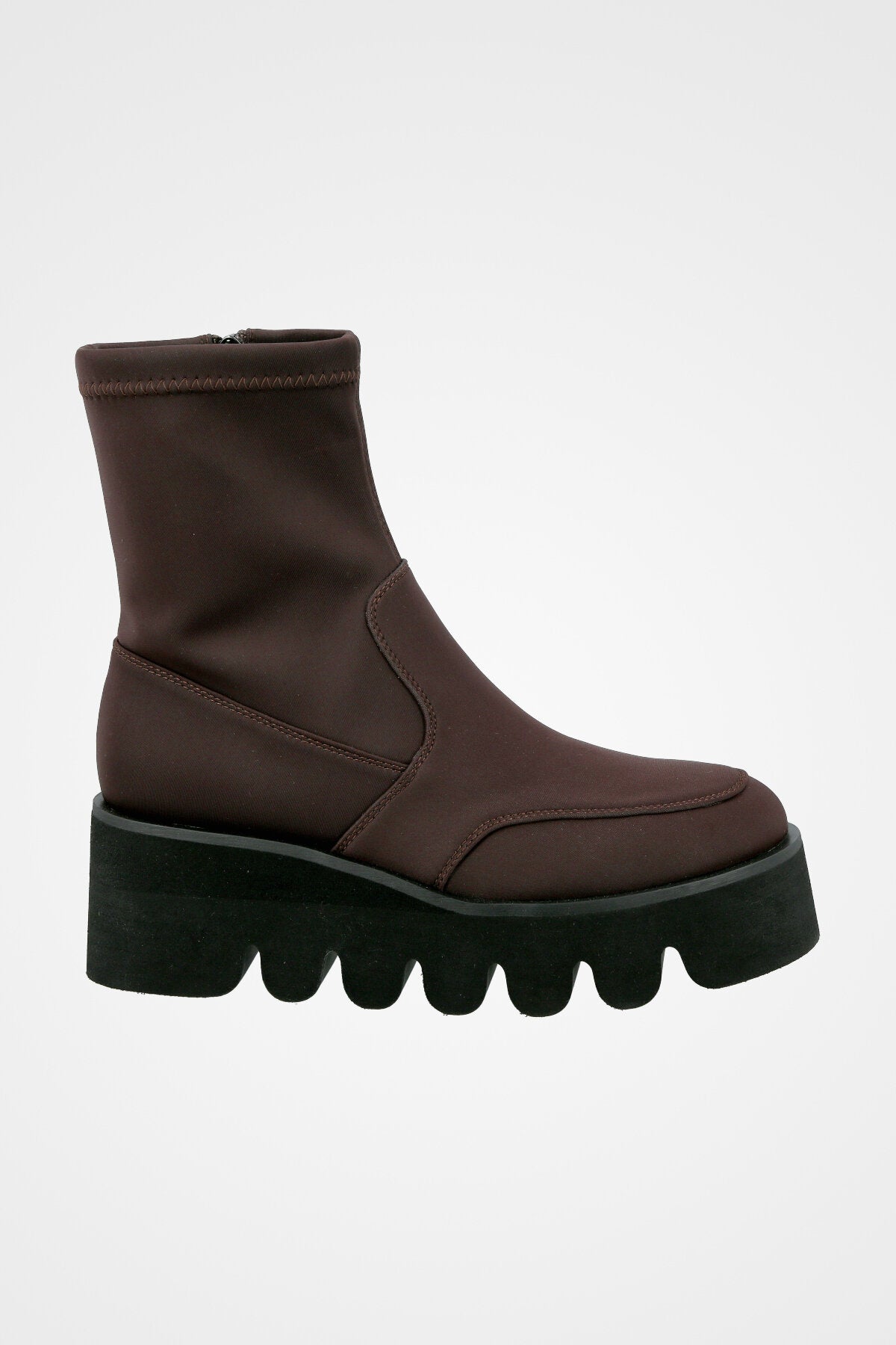 מגף קרסול בצבע חום חלק מלייקרה, עם סוליית פלטפורמה טרקטור