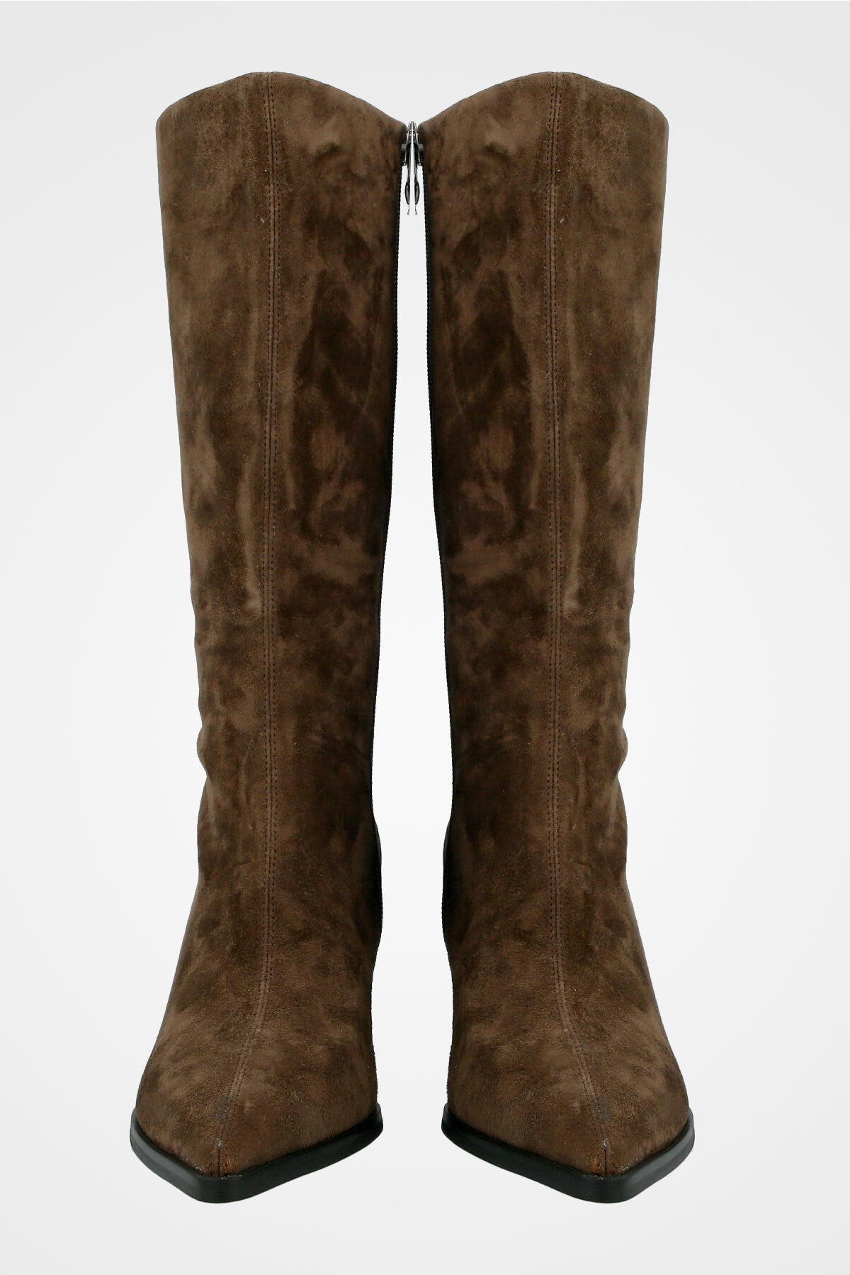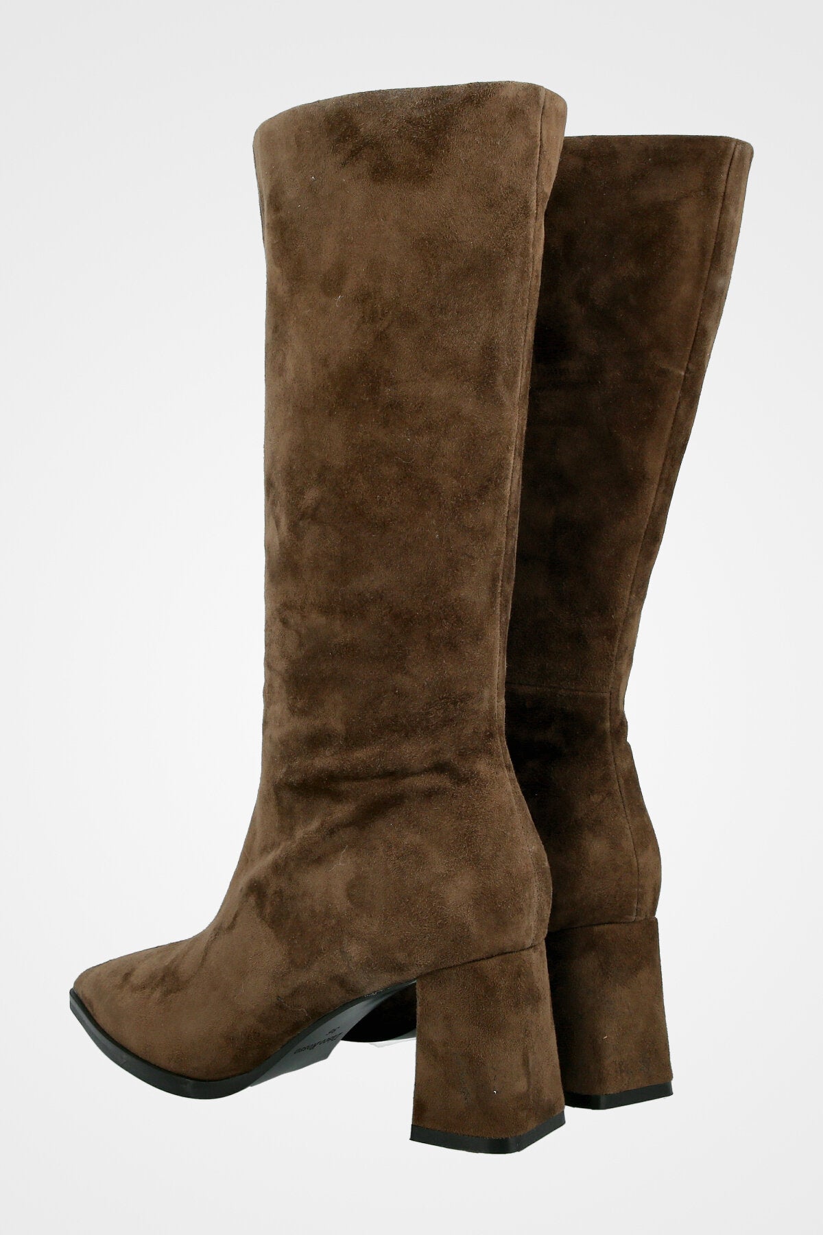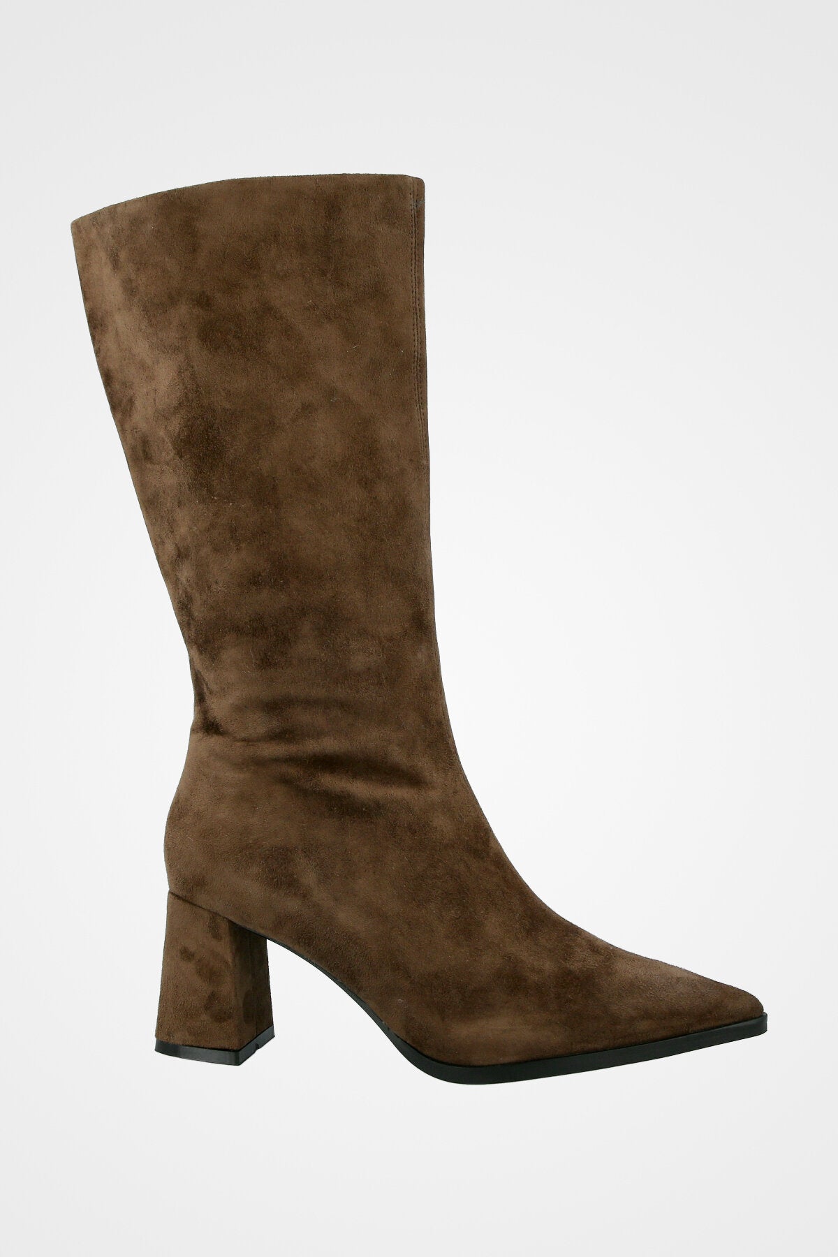 מגף חום גבוה עד מתחת לברך, עם חזית מחודדת ועקב רחב ויציב בינוני-גבוה