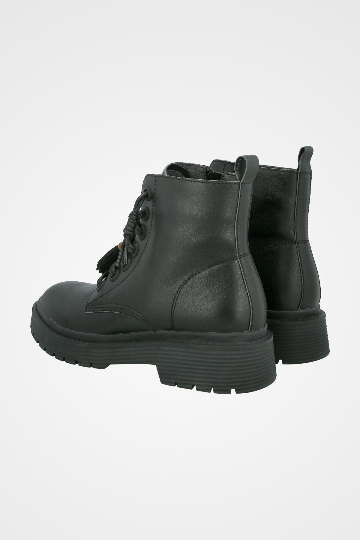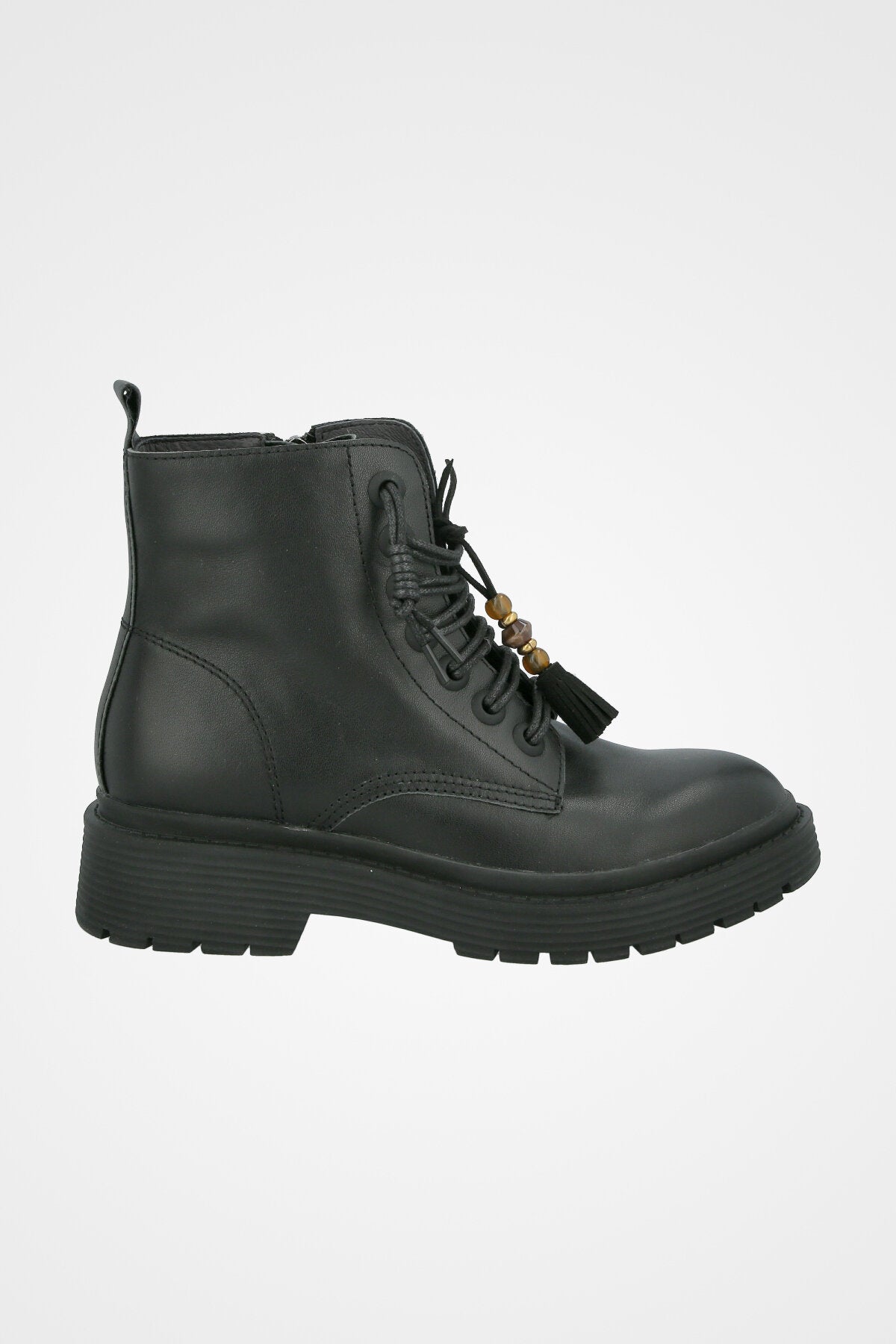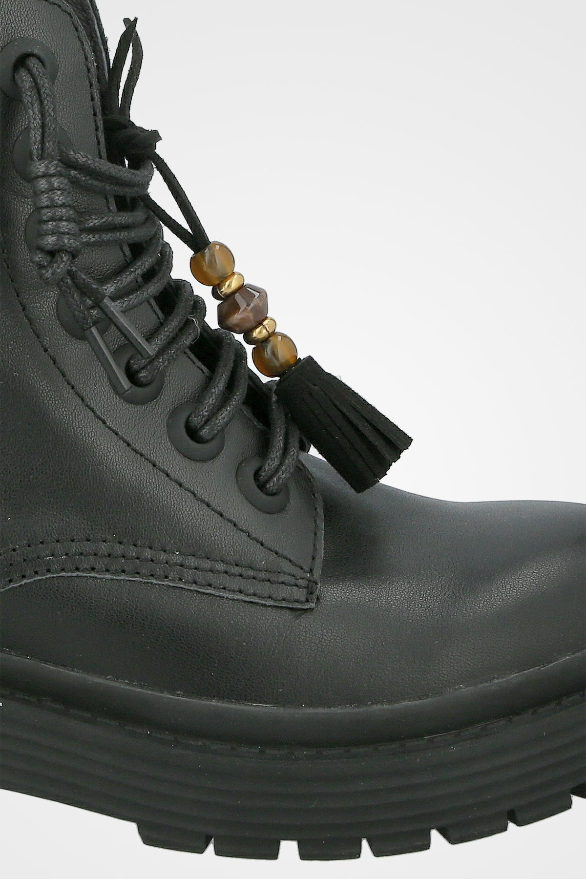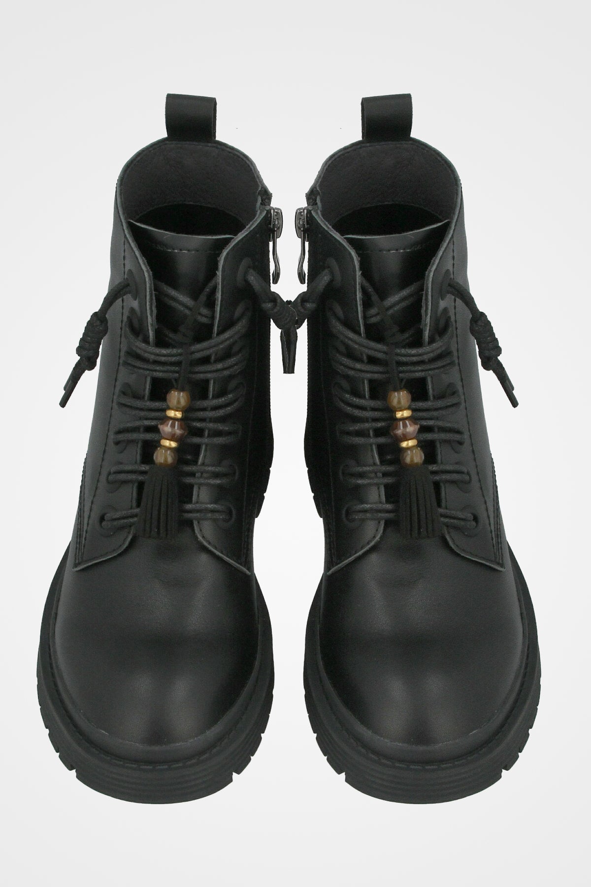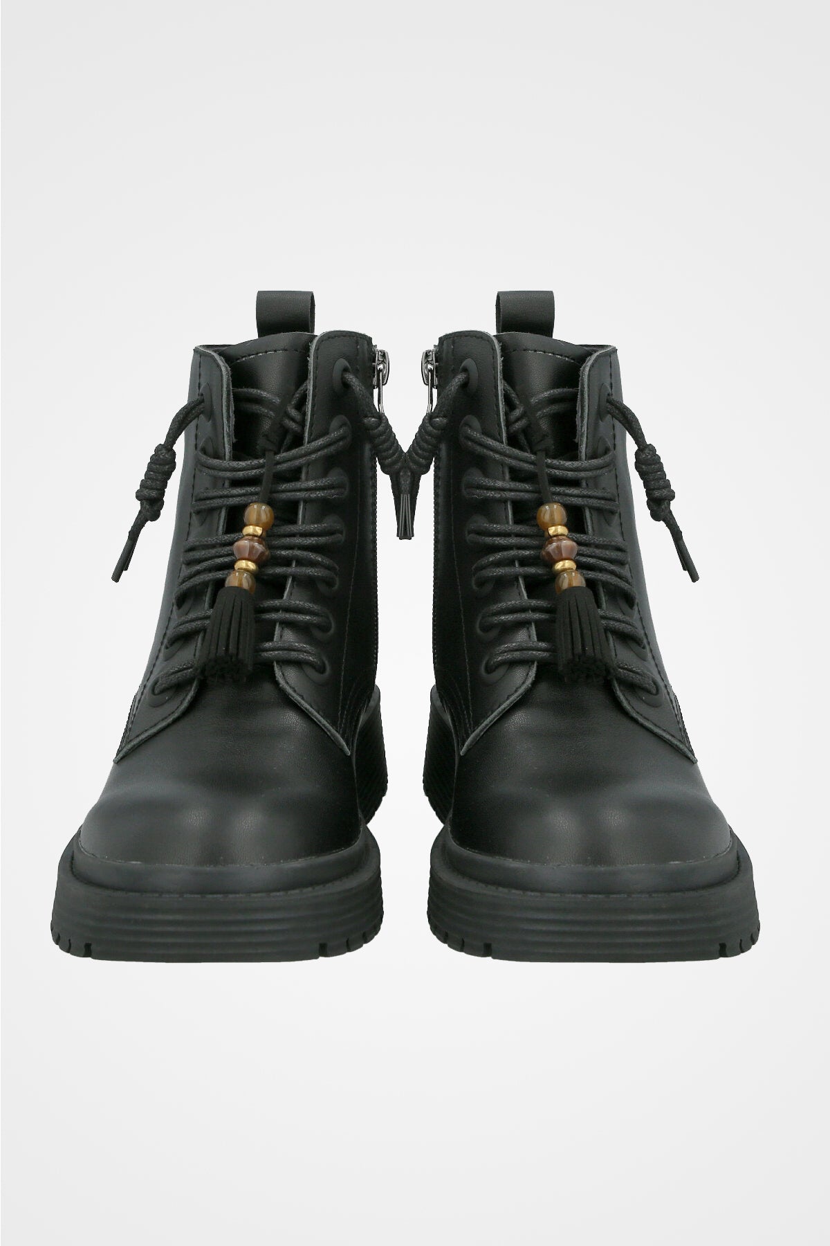 מגפון לייס - אפ שחור עם שרוכים שחורים, סוליית טרקטור שחורה ועיטור פונפון בחזית