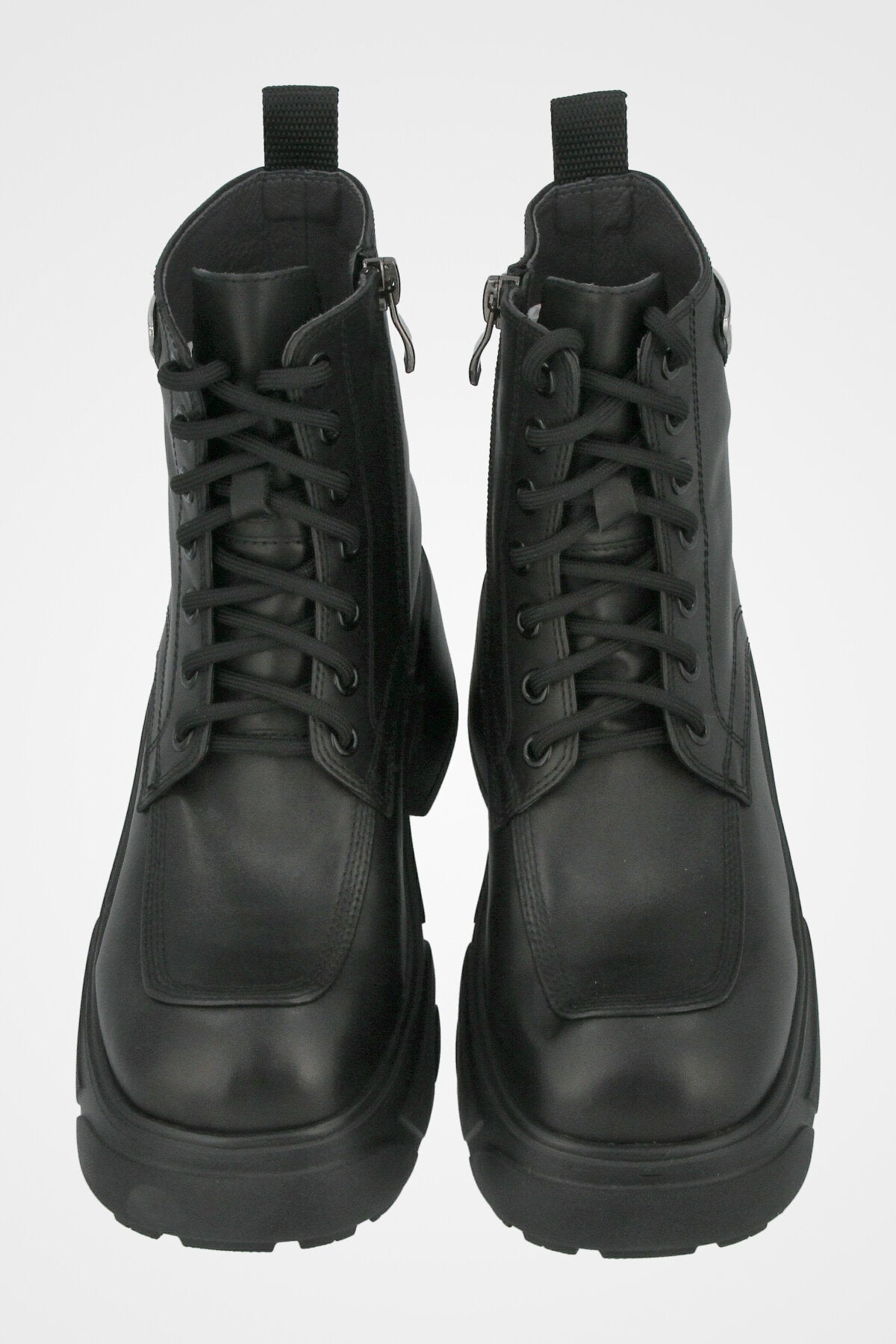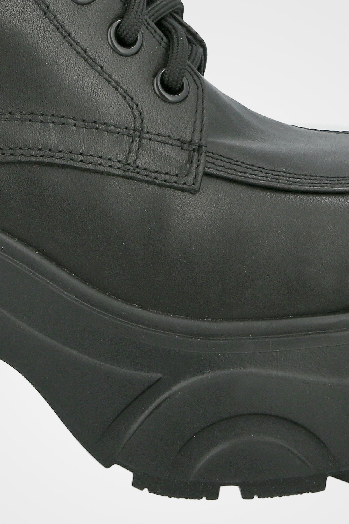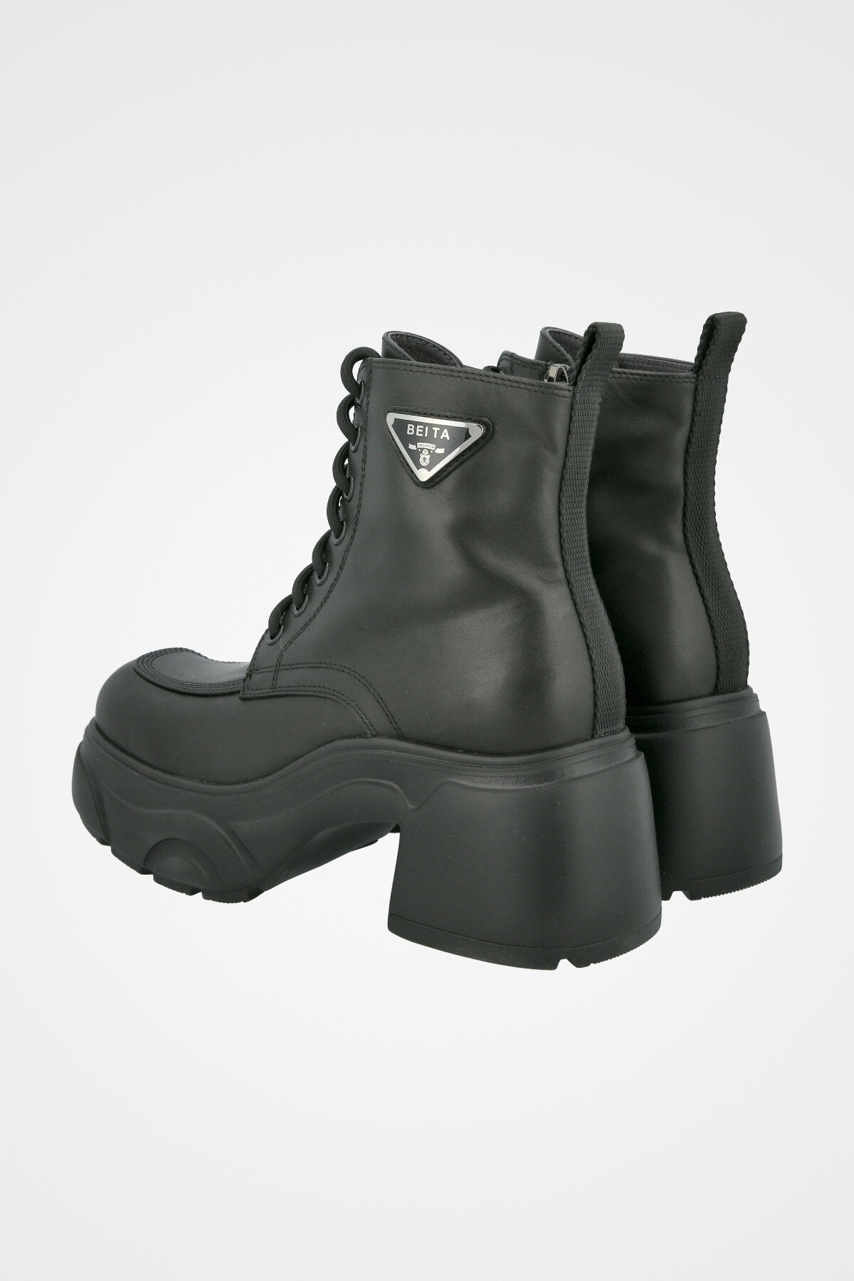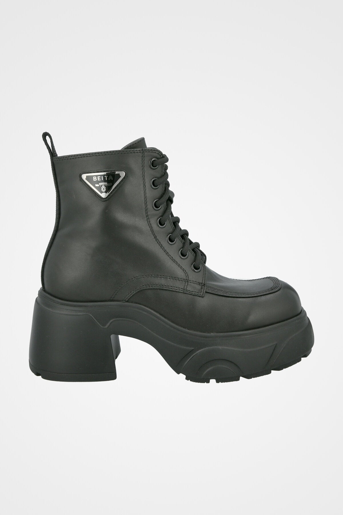 מגפון שחור עם שרוכים, סוליית טרקטור עבה ועקב רחב, בעיצוב אופנתי ומודרני