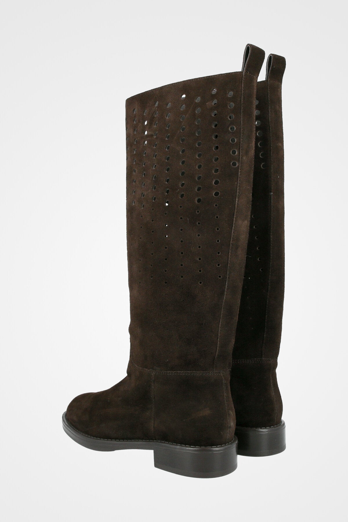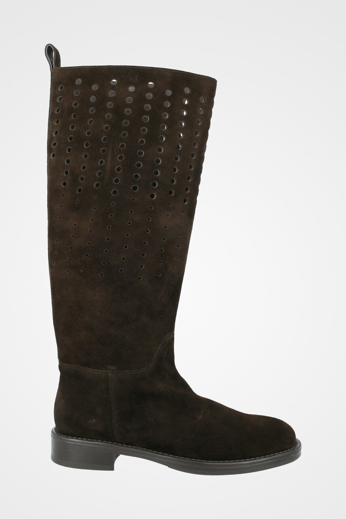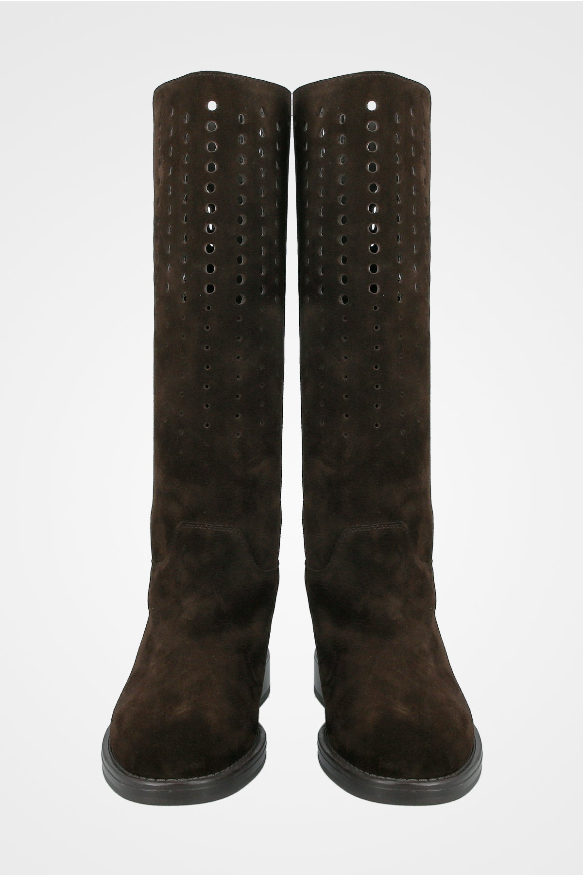 מגף חורים מחום זמש עם חיתוכי חורים בחלק העליון וסוליה שטוחה קלאסית