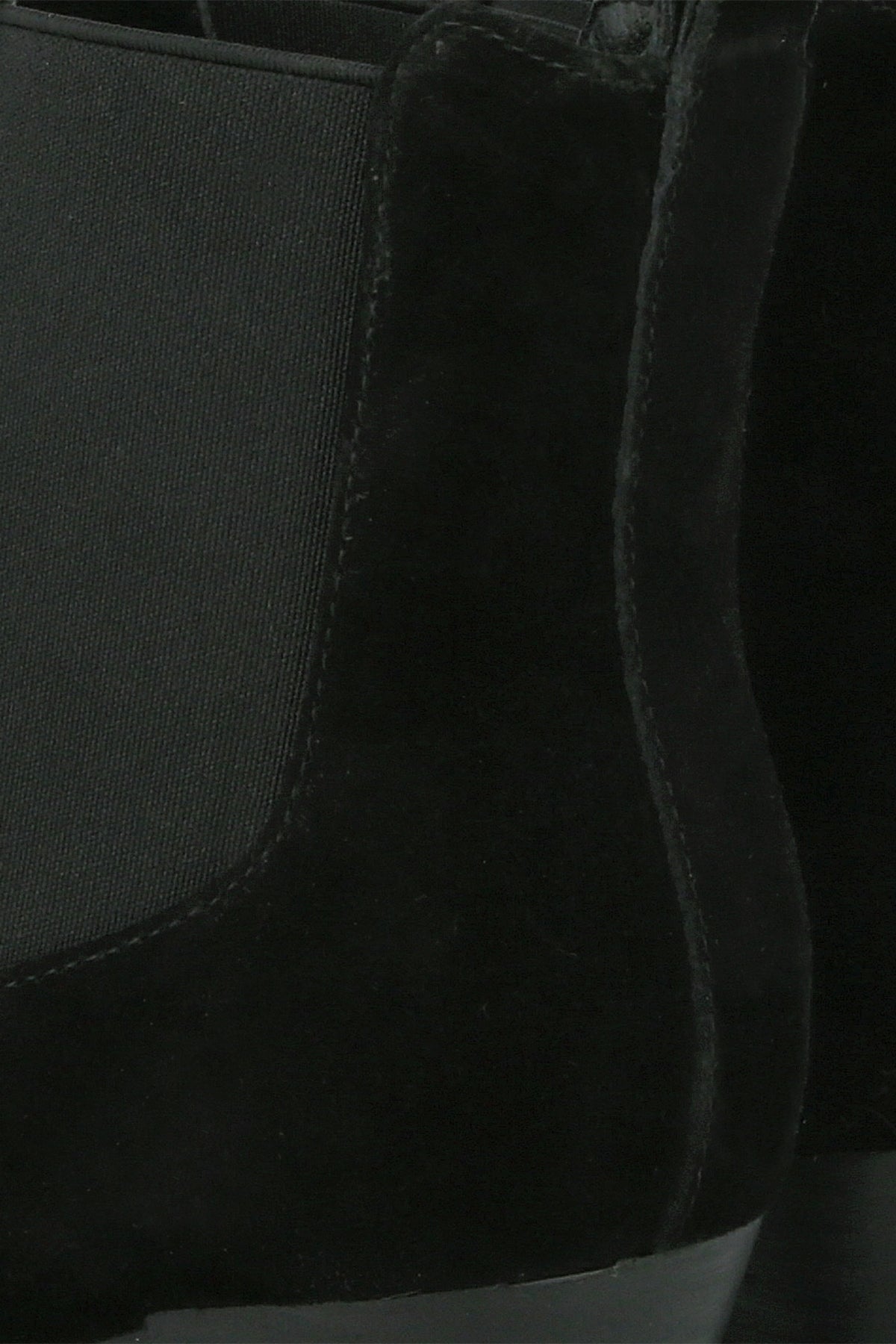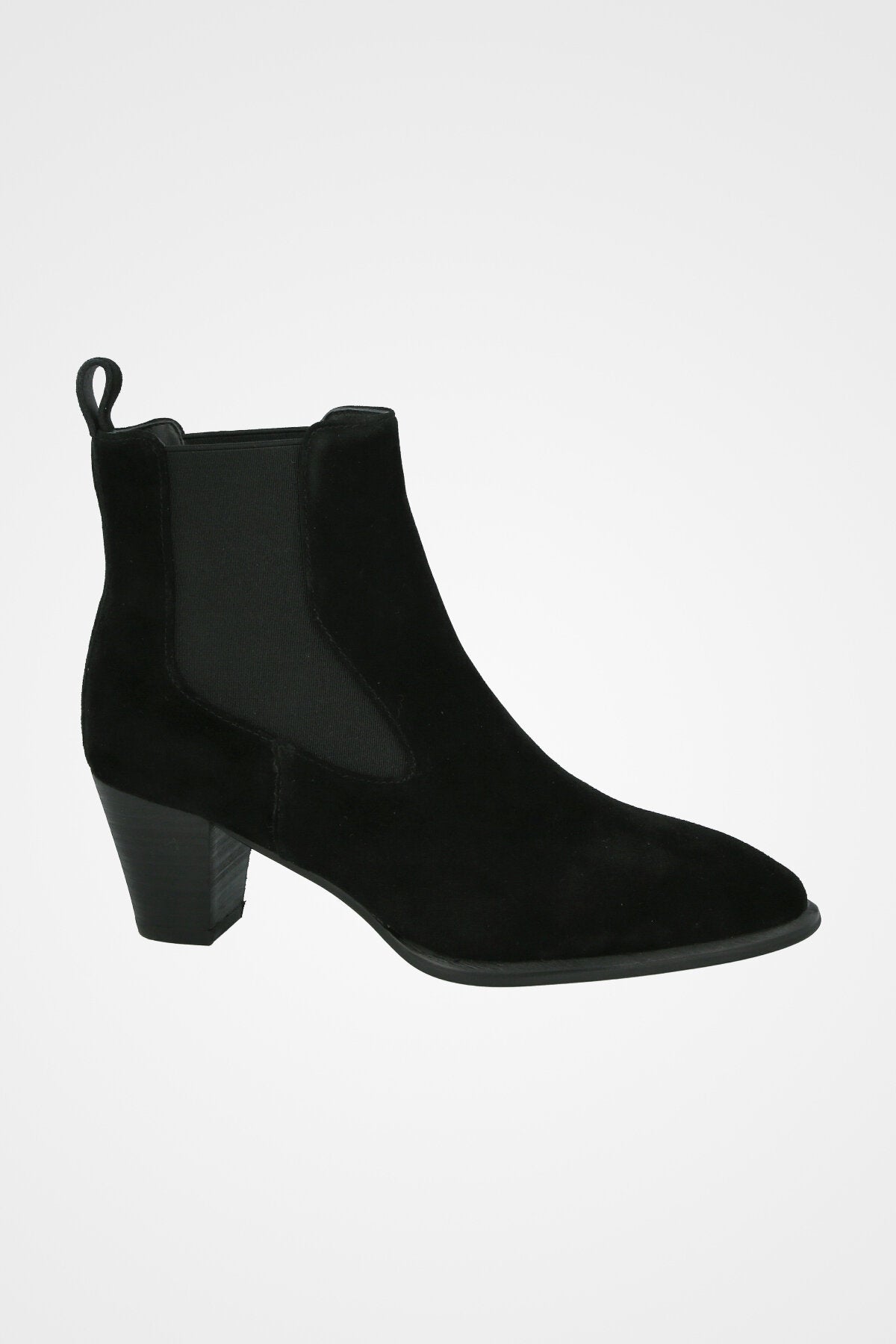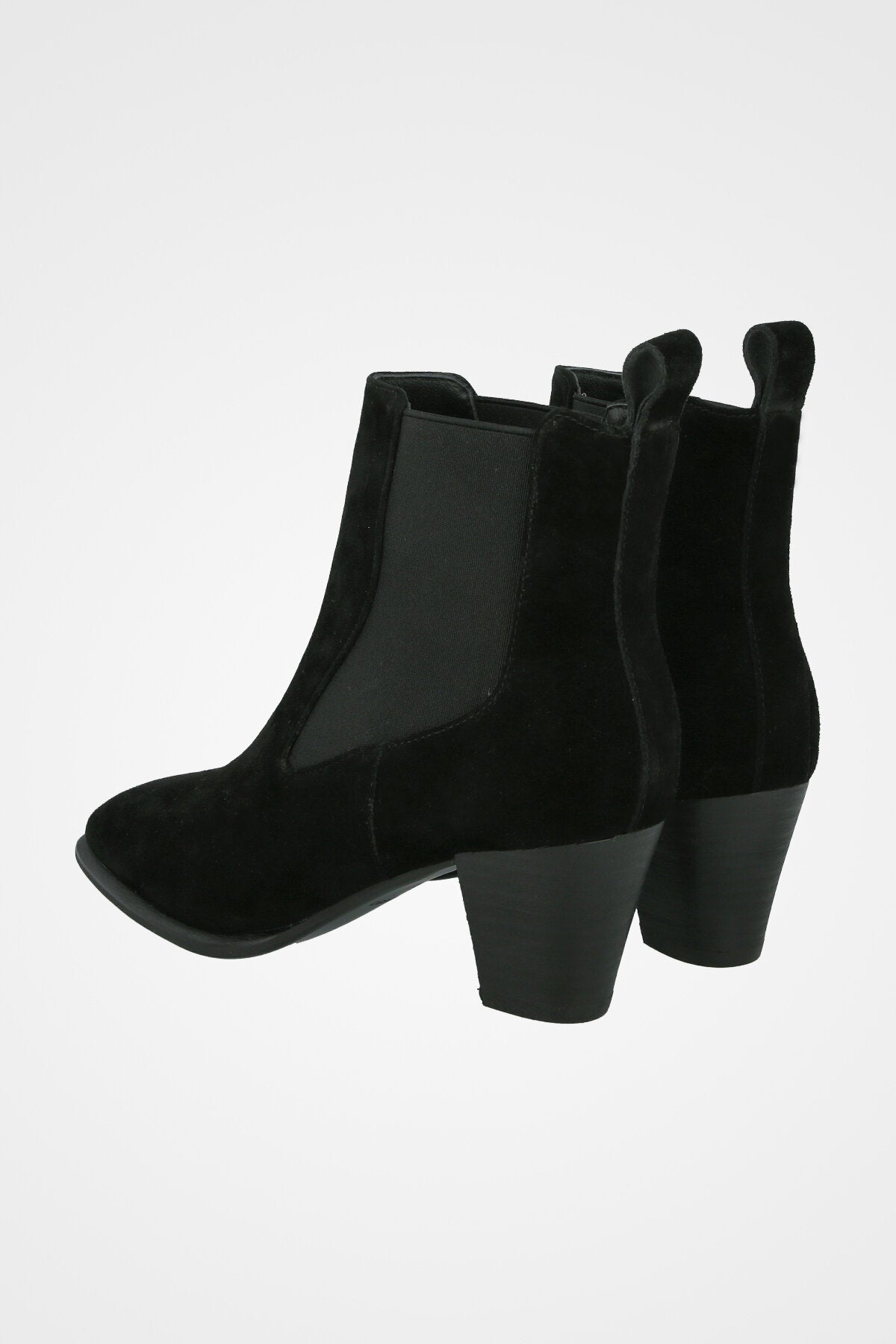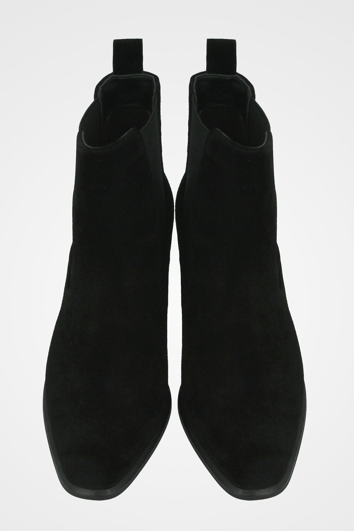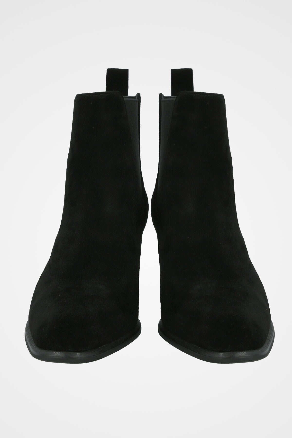מגפון בוקרים שחור מעור זמש, עם חרטום שפיץ, עקב בינוני ורצועת משיכה אחורית