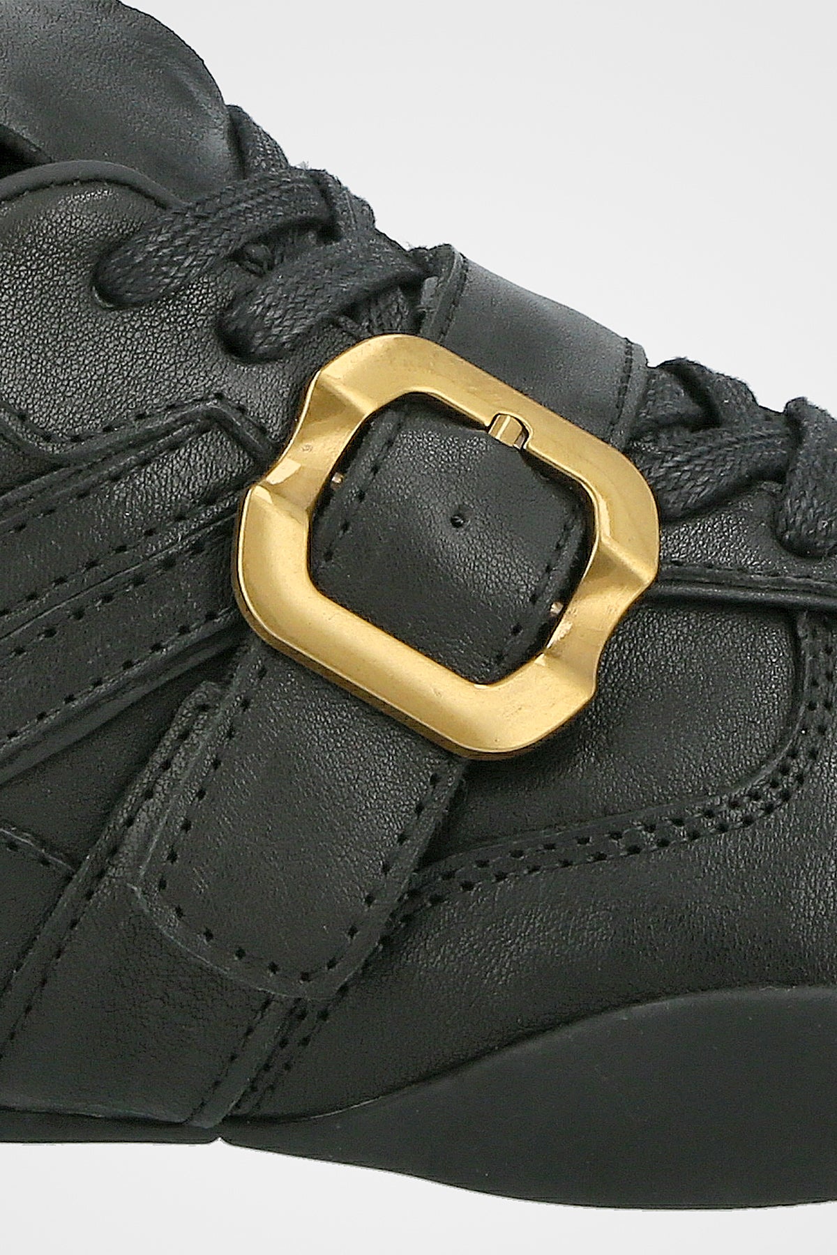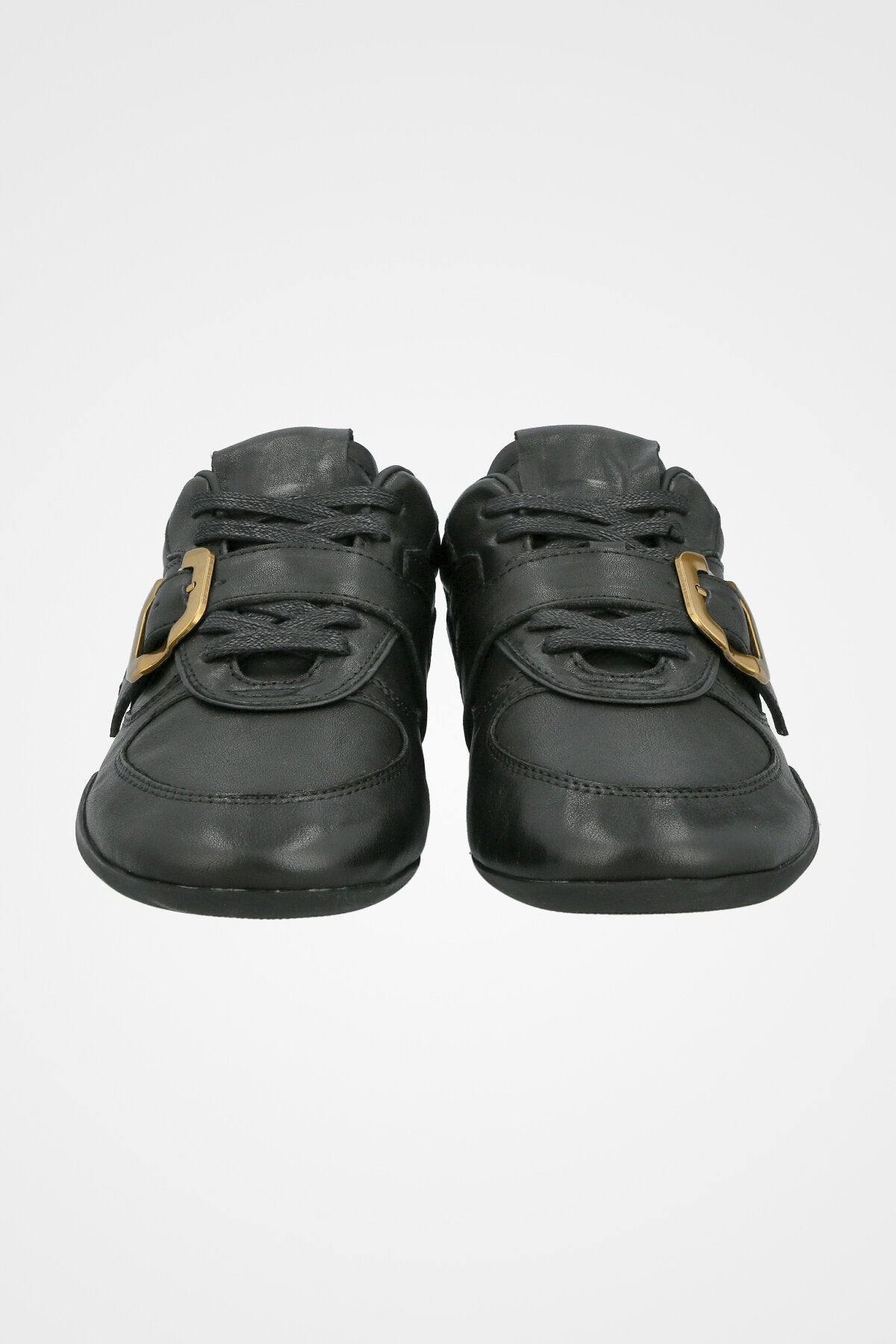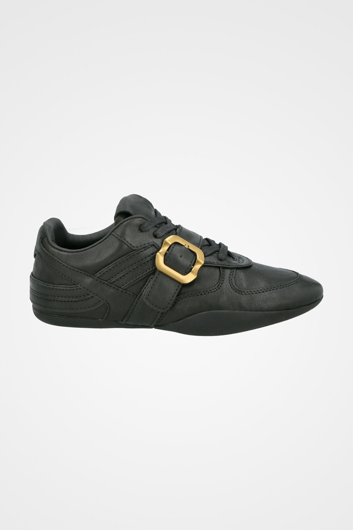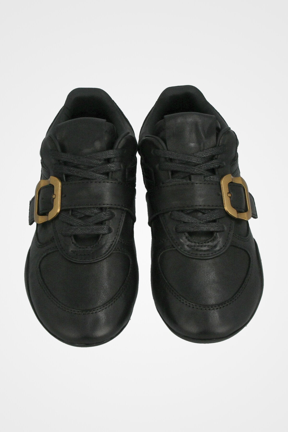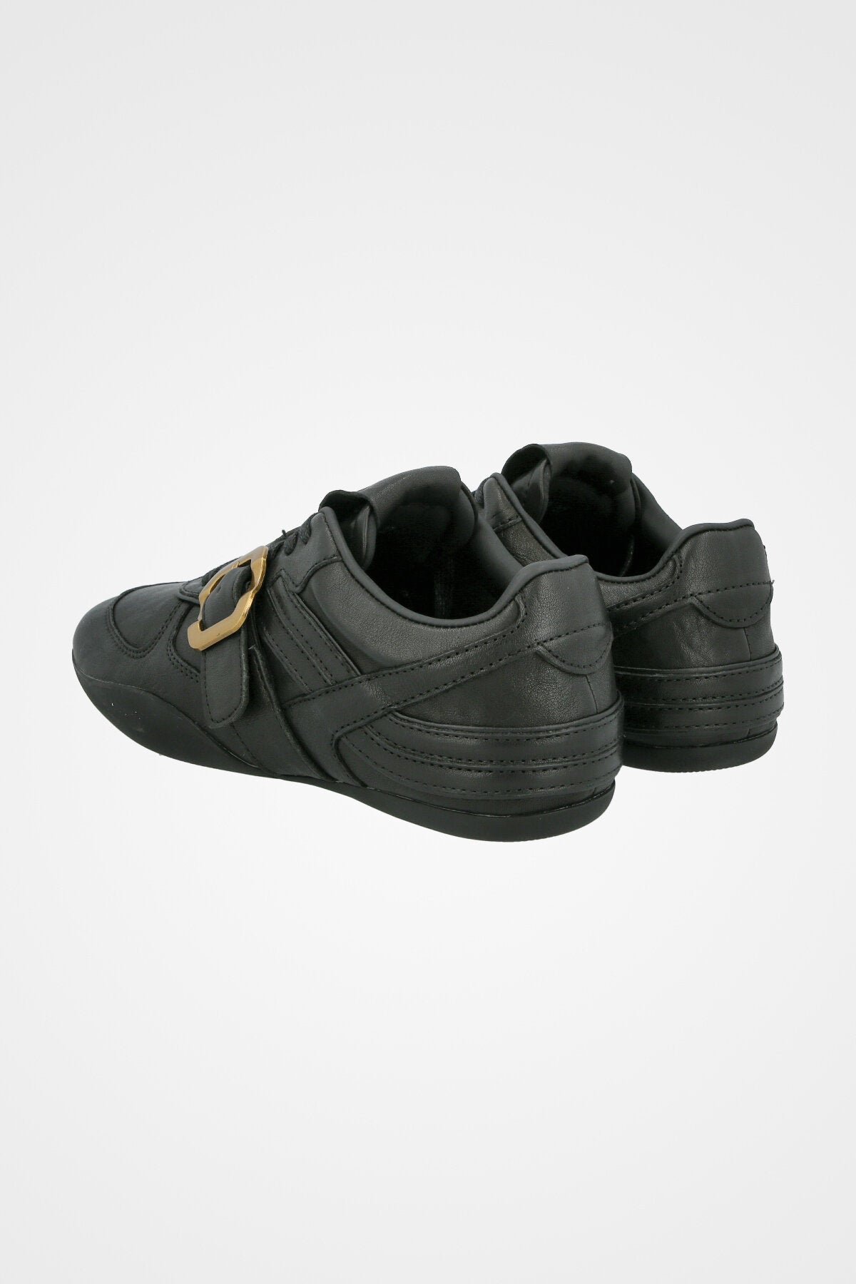 נעלי סניקרס בצבע שחור בעלות חגורת אבזם בצבע זהב וסולייה דקה ותואמת בצבע שחור