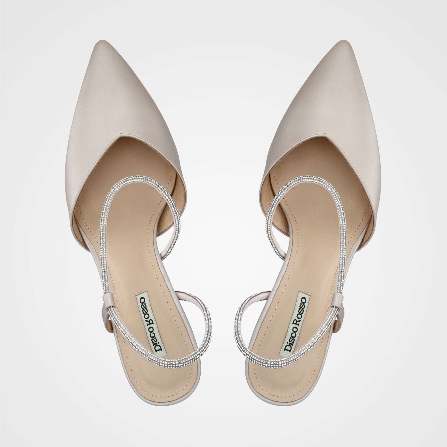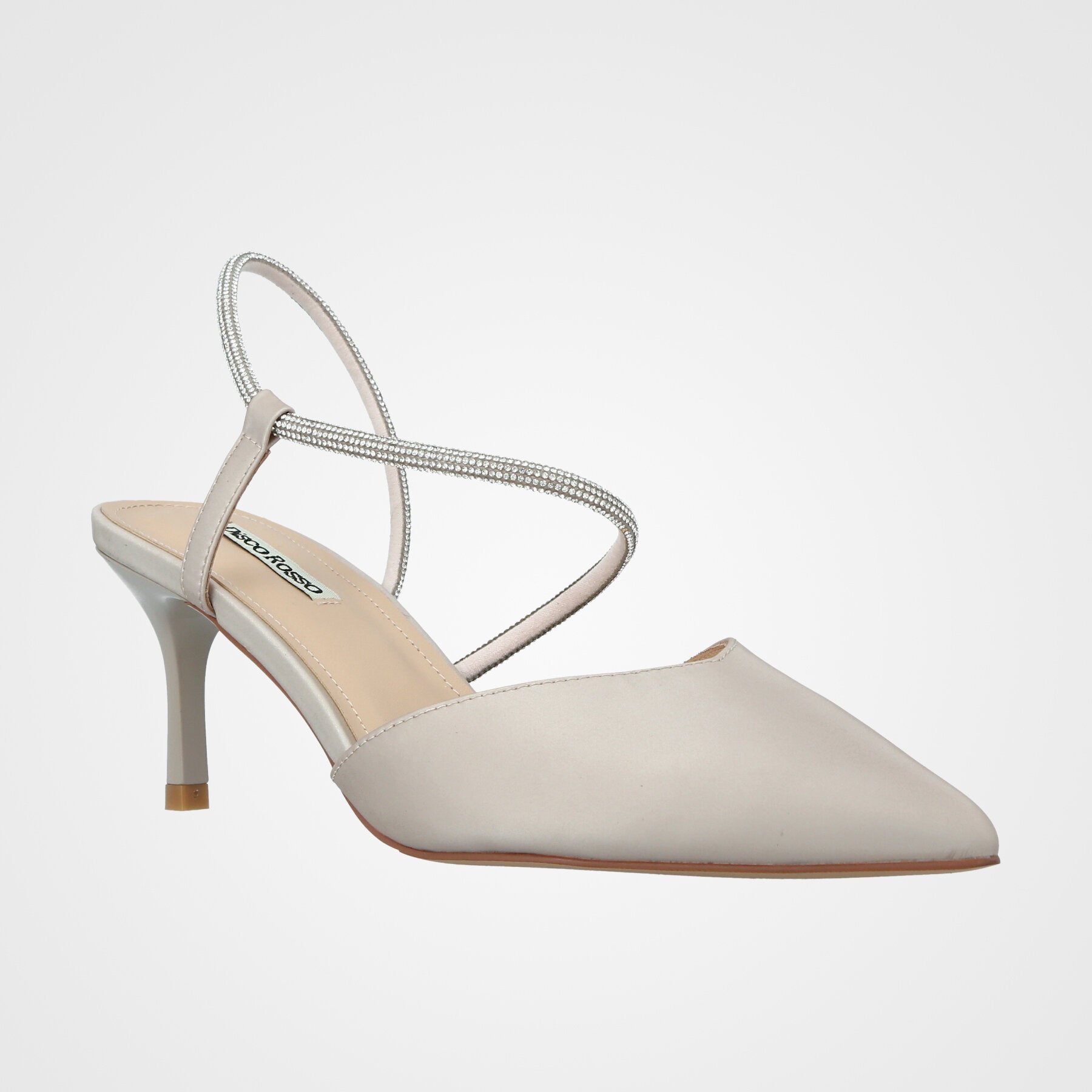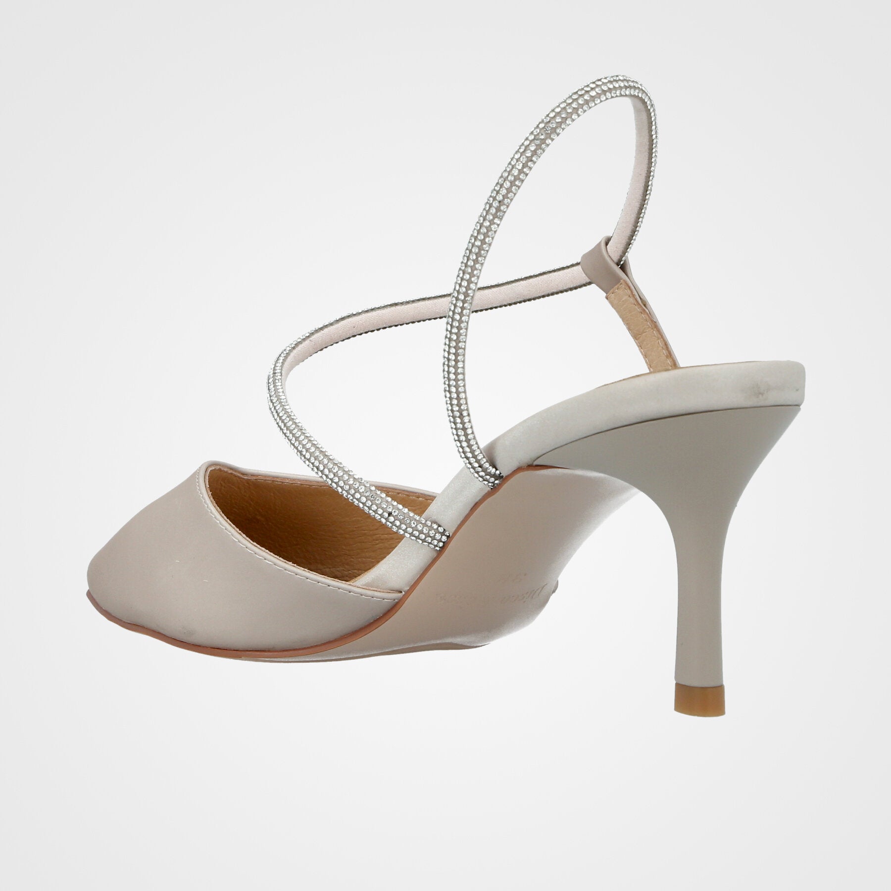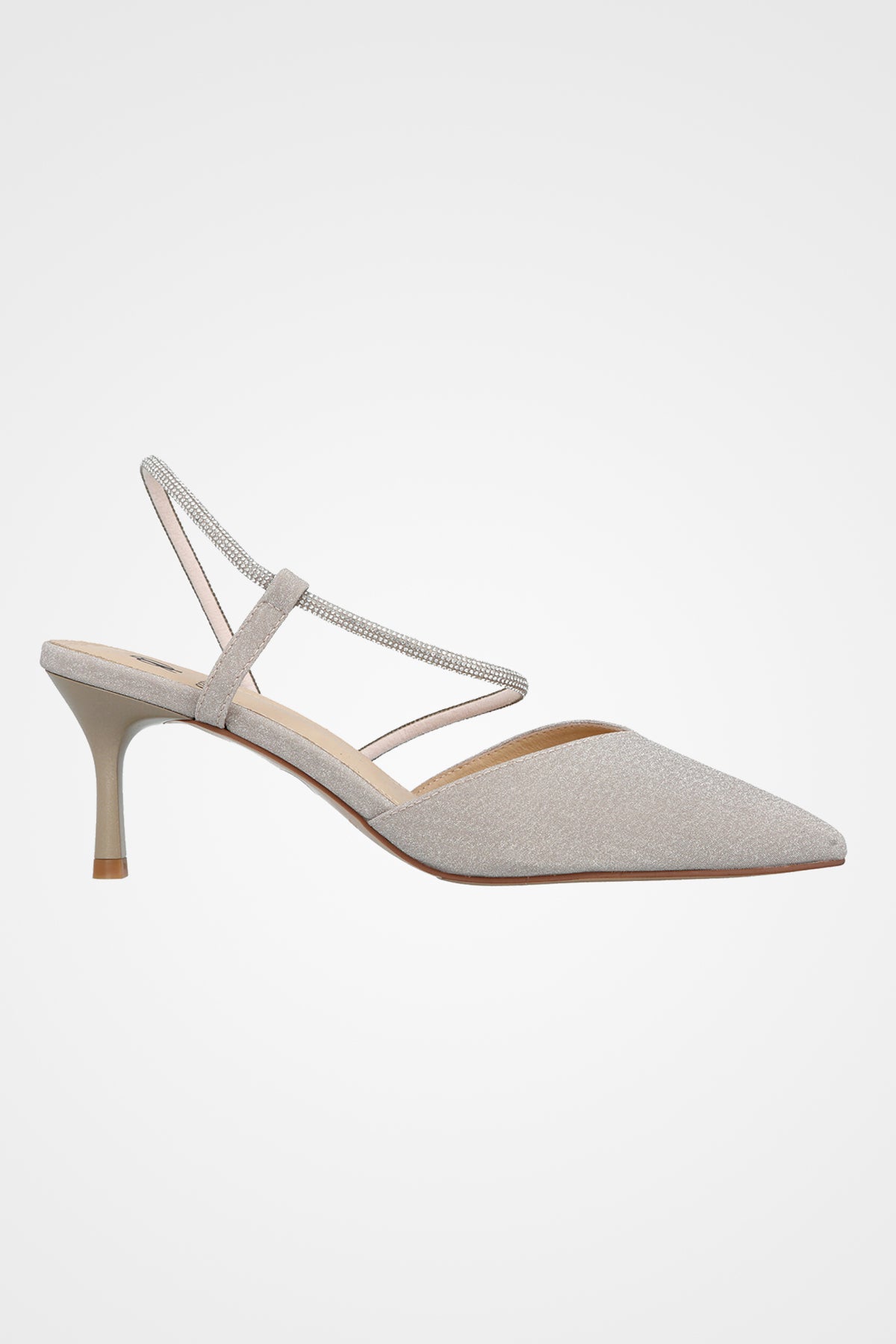 נעל עקב שפיץ בצבע ניוד עם רצועה אלכסונית משובצת אבנים בעיצוב קלאסי ואלגנטי