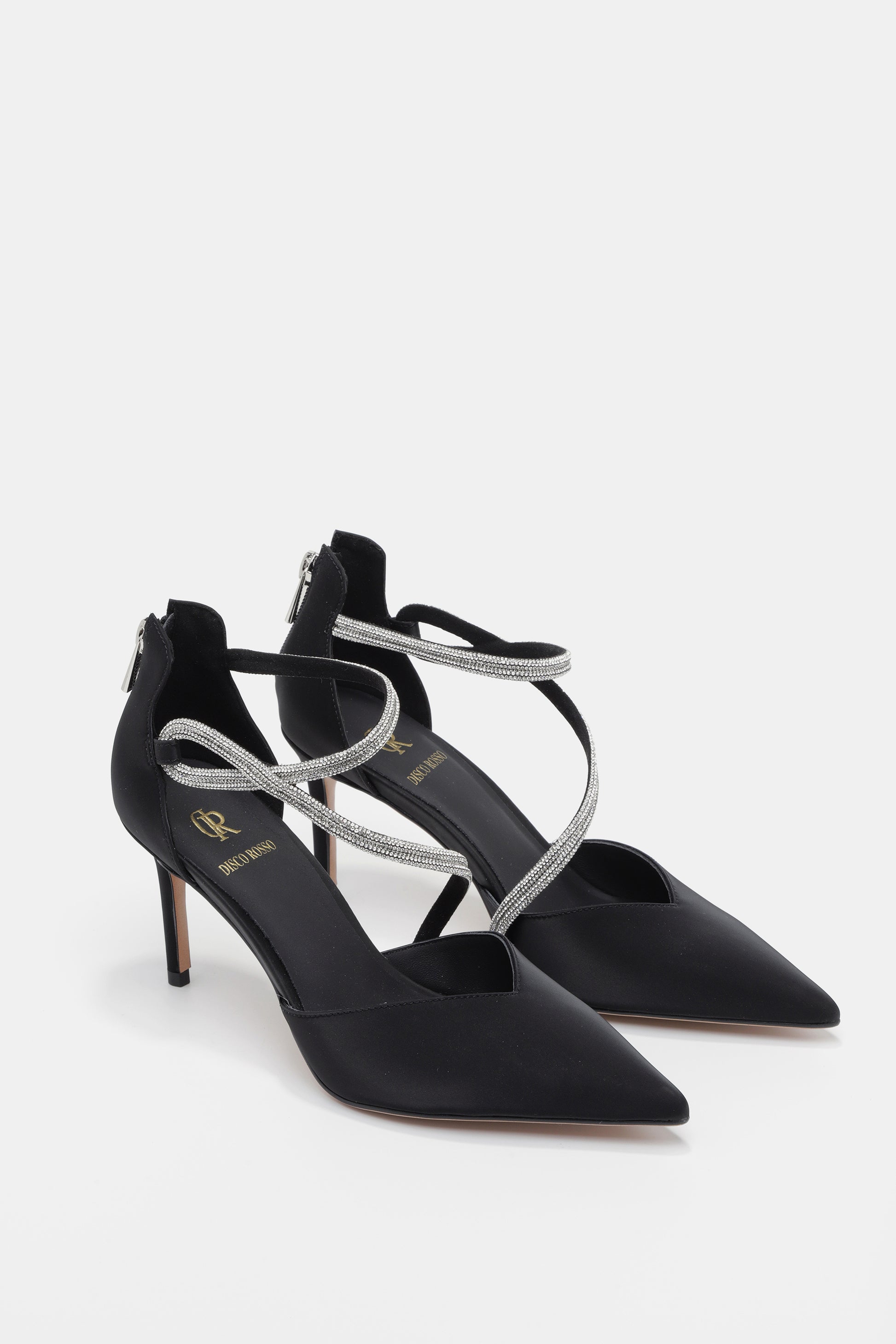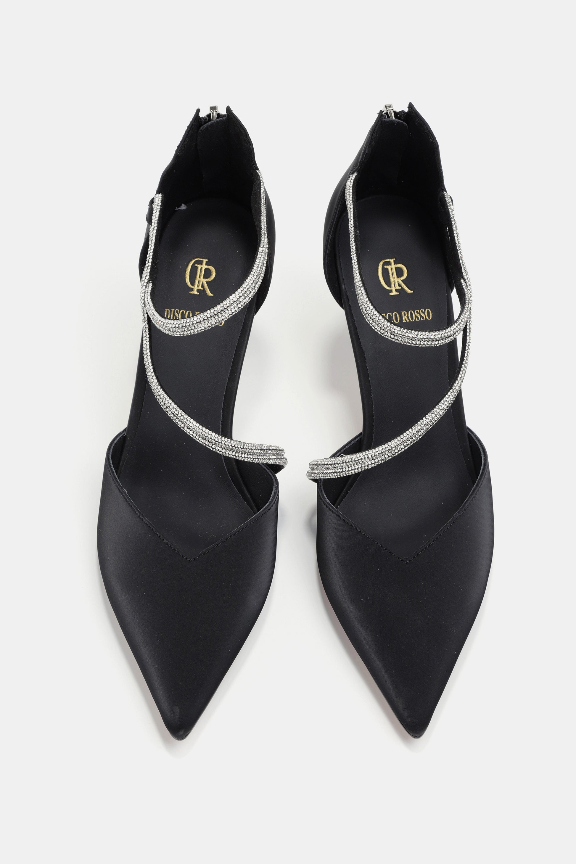 נעל עקב שפיץ בצבע שחור עם רצועות מנצנצות למראה קלאסי ואלגנטי