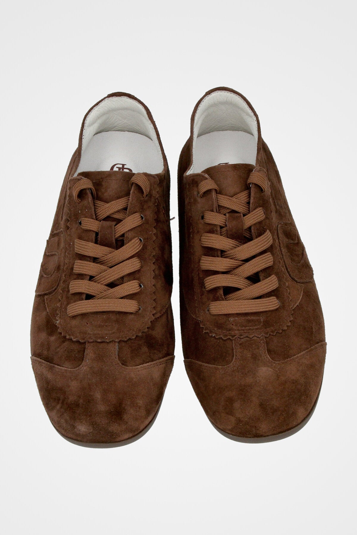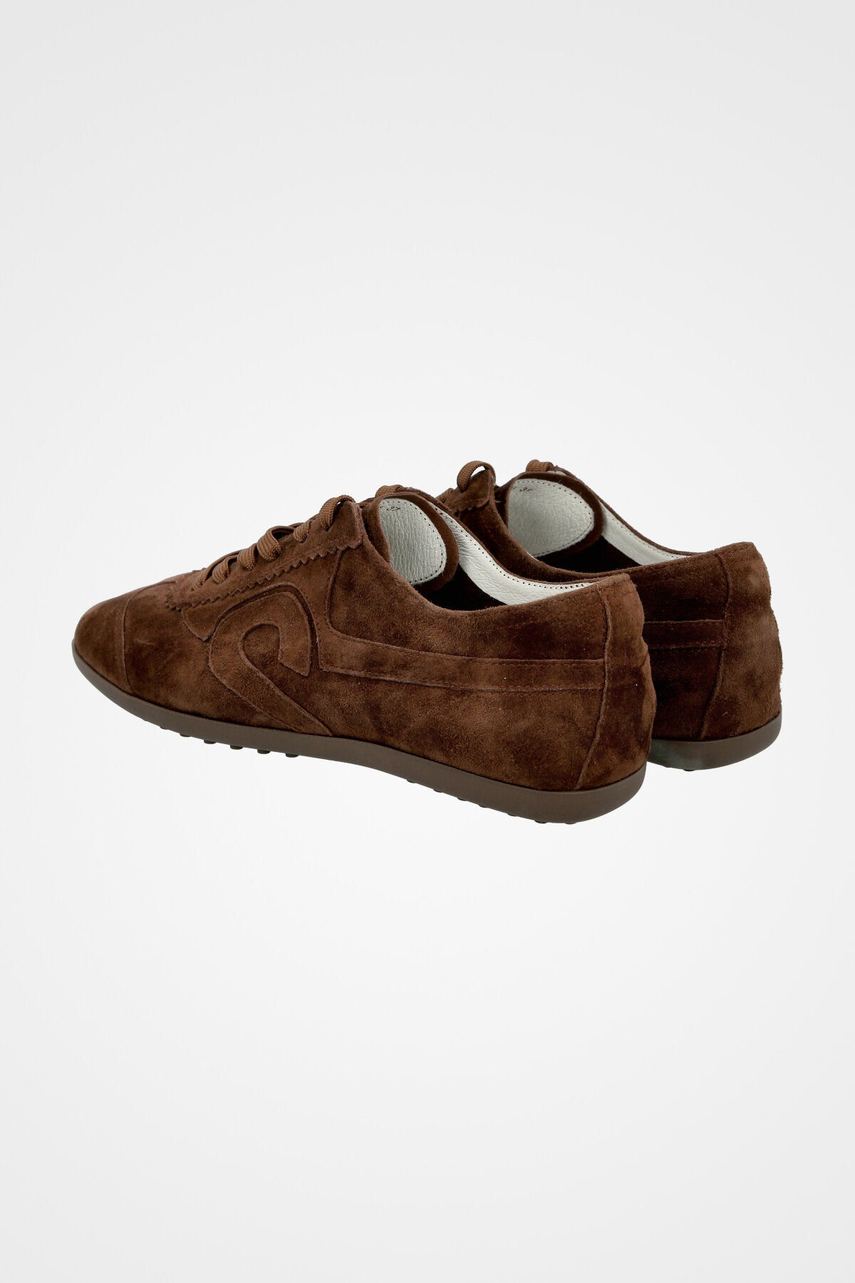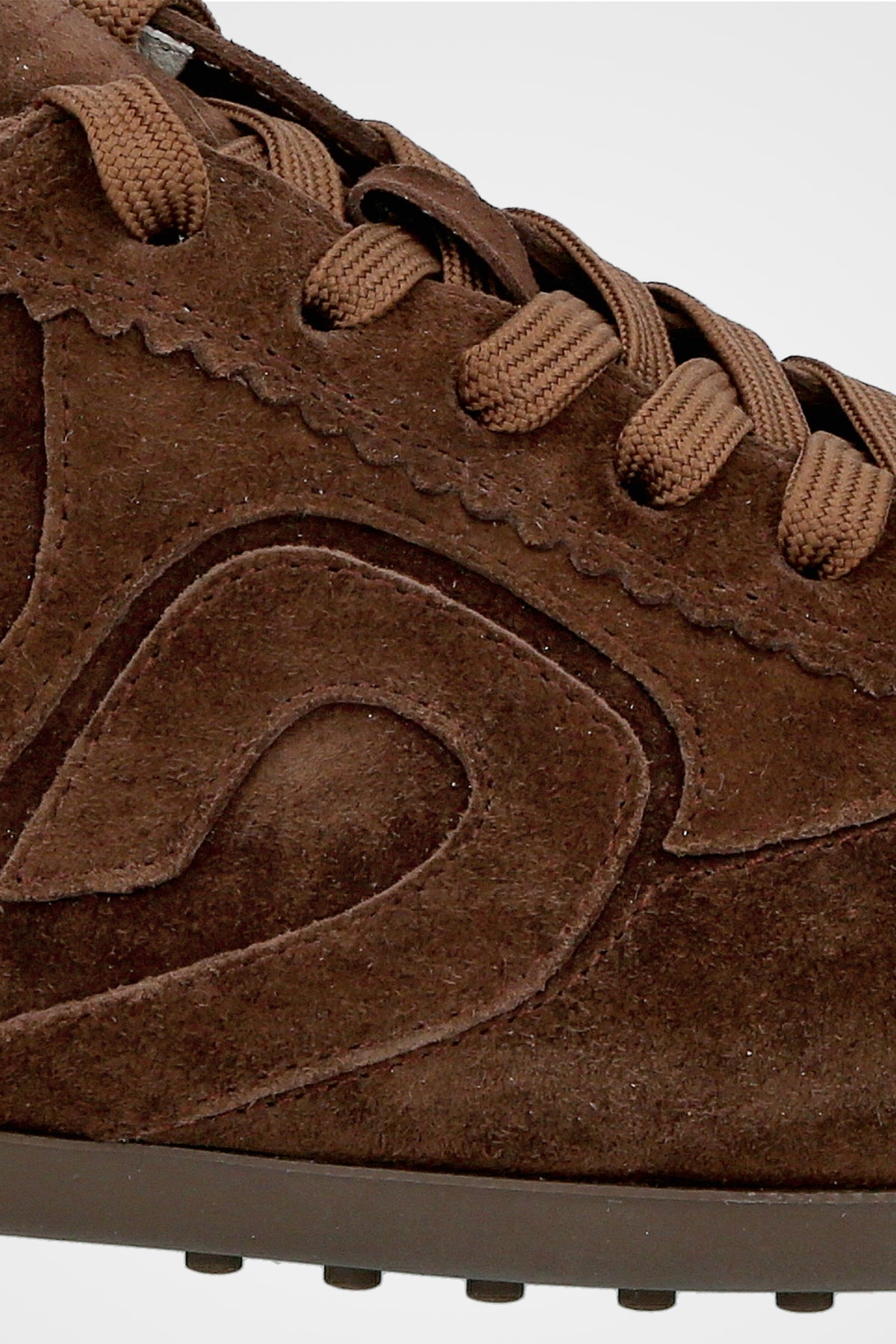 נעל סניקרס נמוכה בצבע חום כהה זמש בעלות עיטורים בצד הנעל וסולייה דקה בצבע תואם
