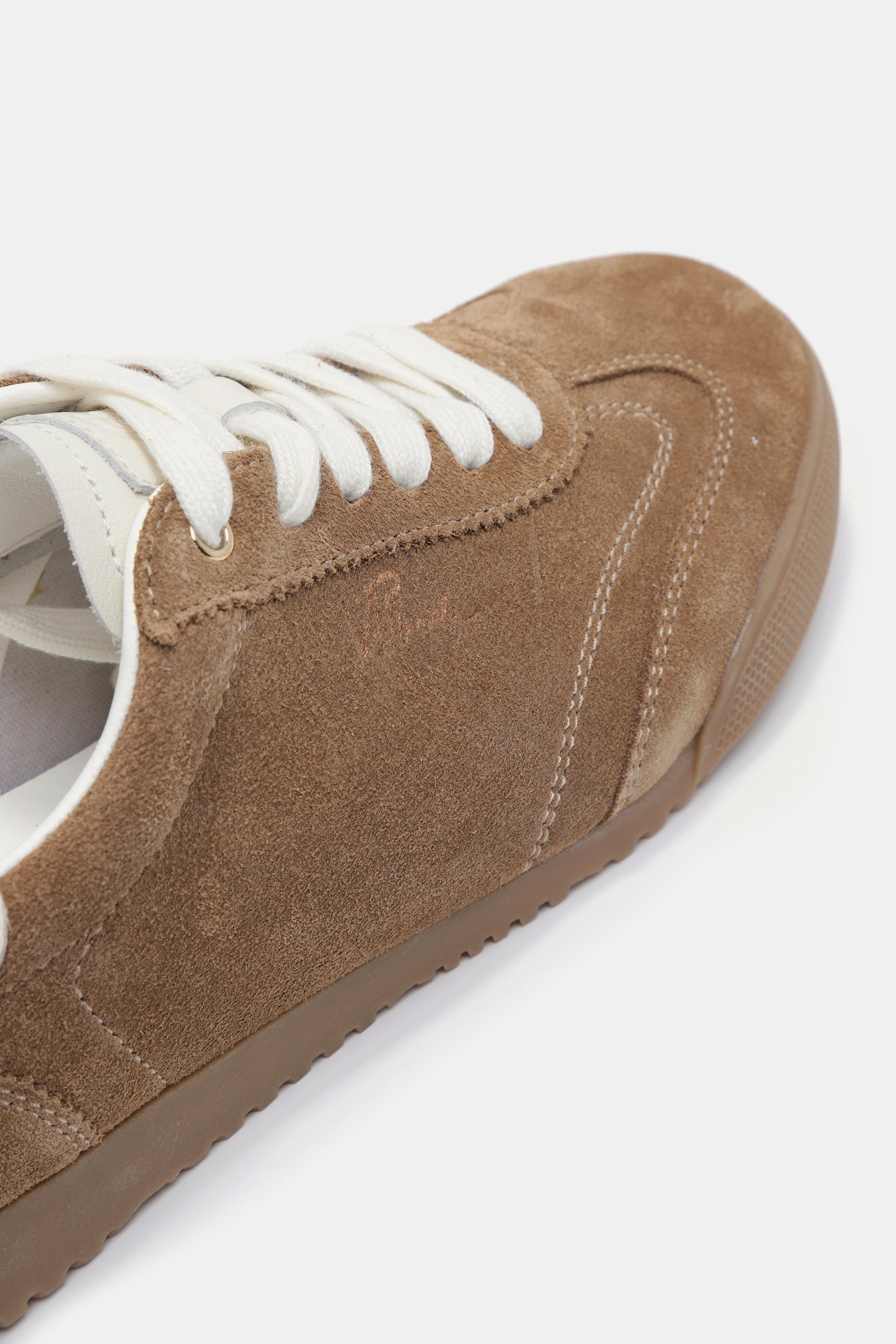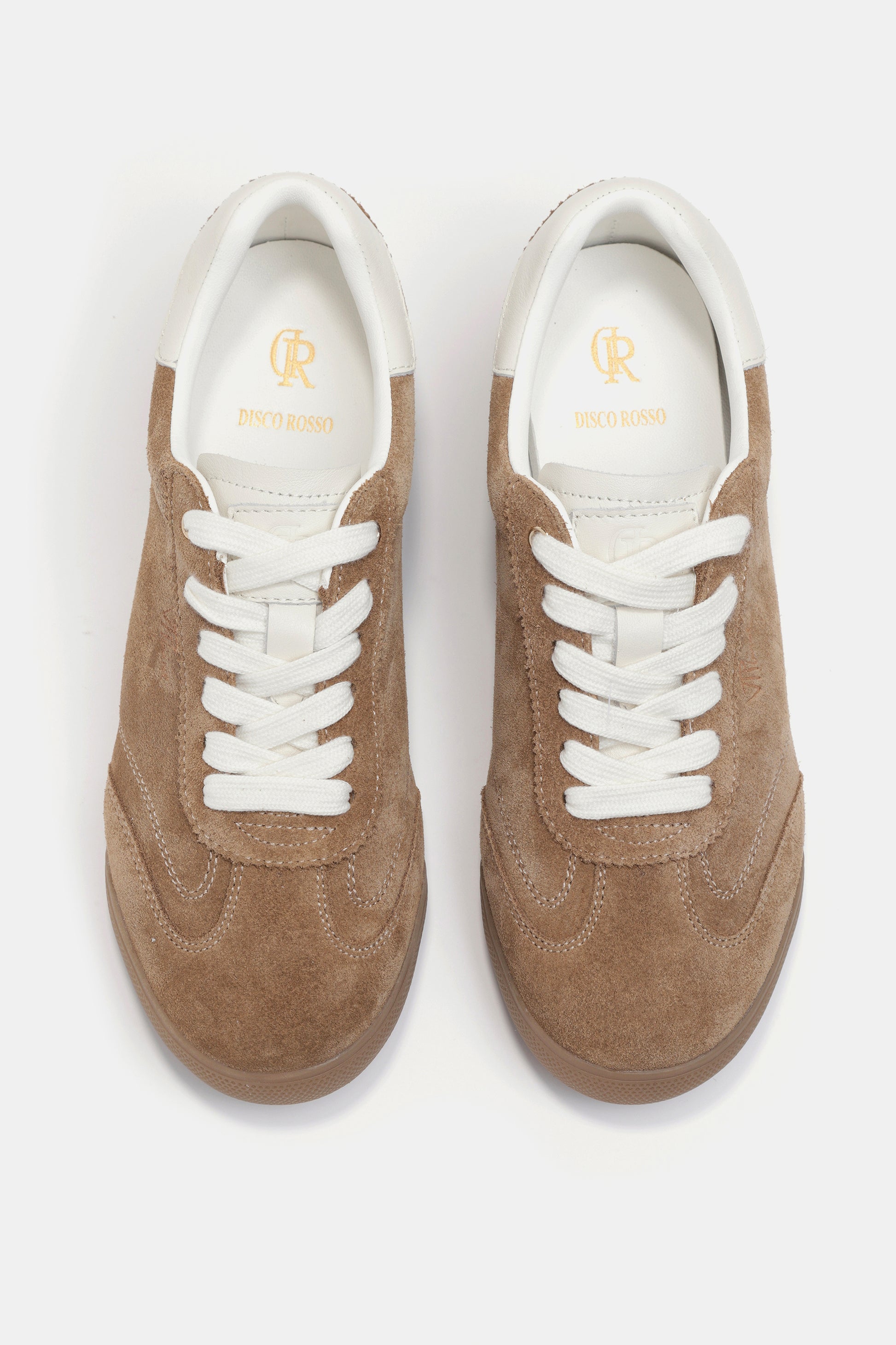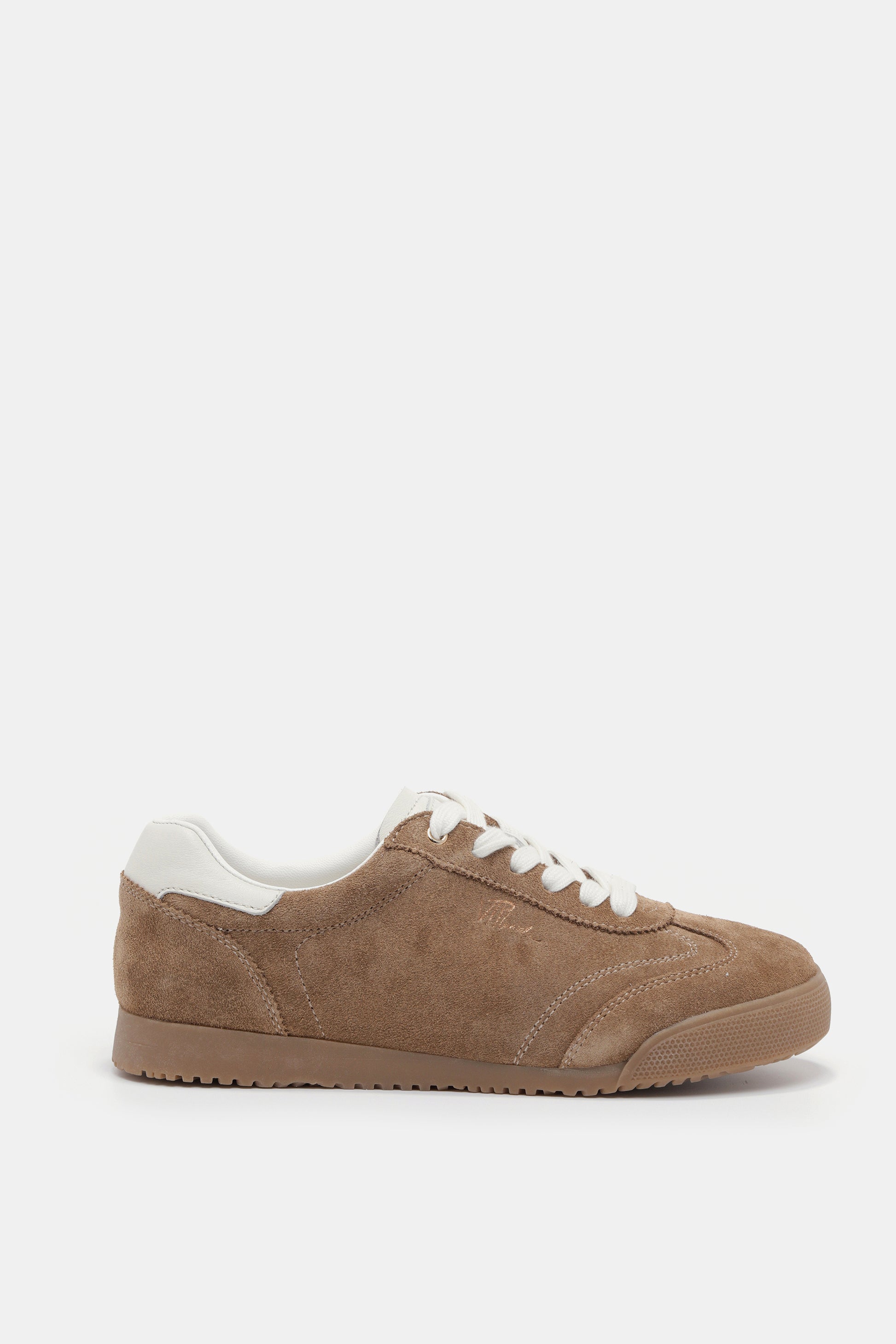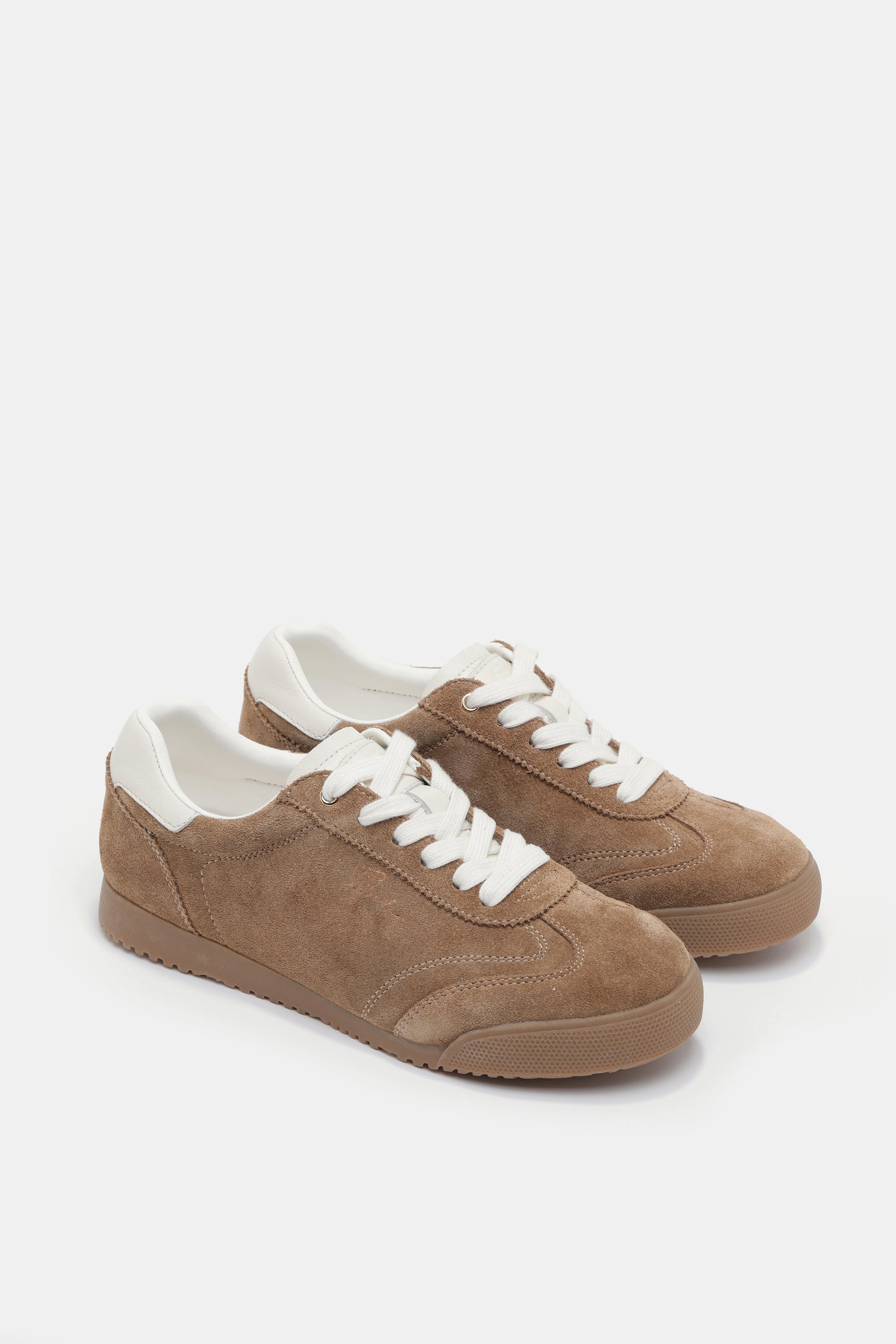 סניקרס בגוון חום, עם שרוכים לבנים וסוליה שטוחה, מראה קז'ואל ומלא סטייל