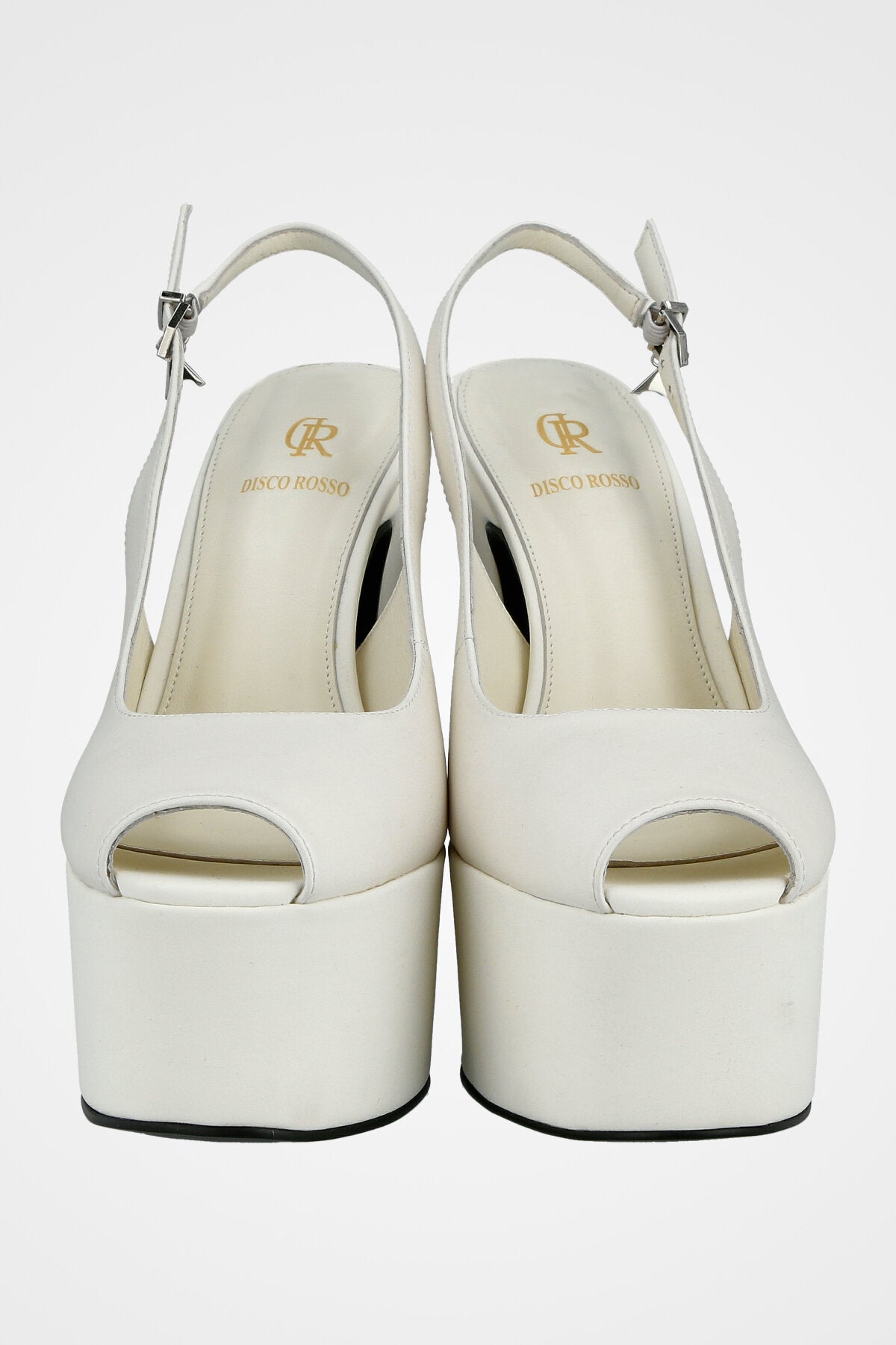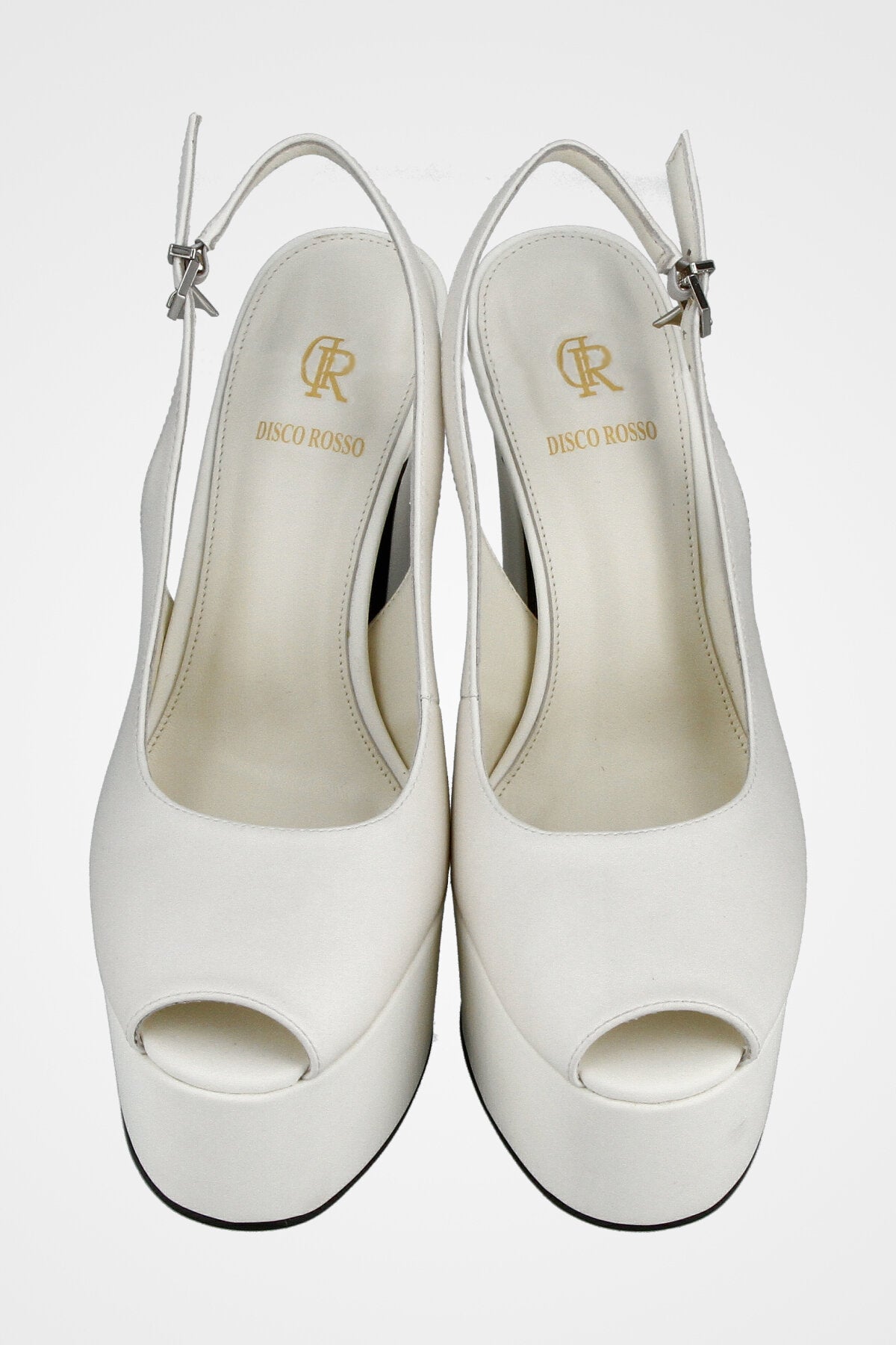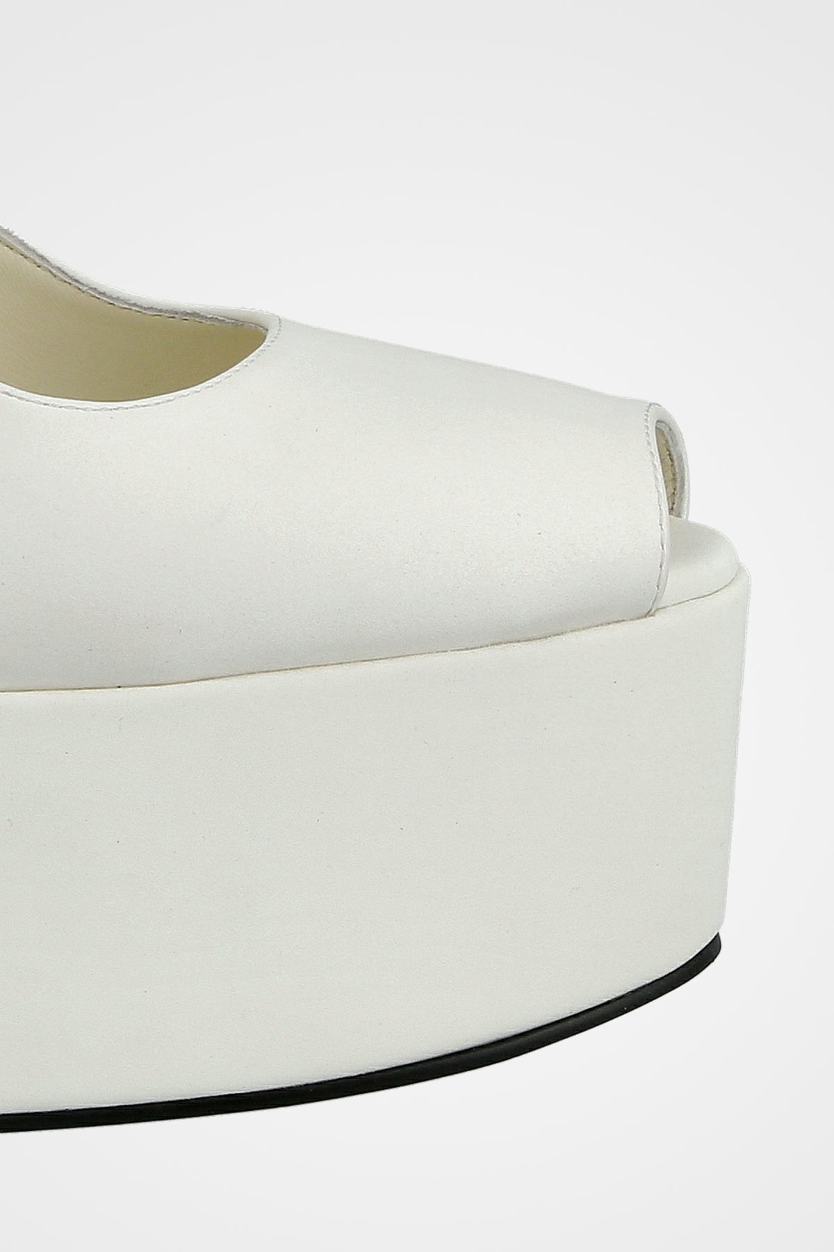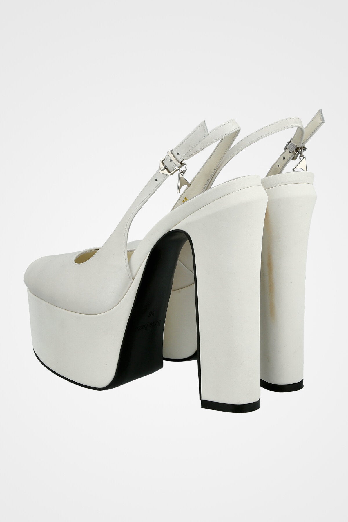 נעל עקב גבוהה עם פלטפורמה עבה, רצועה דקה מאחורה ועיצוב אלגנטי בסגנון נשי וקלאסי.