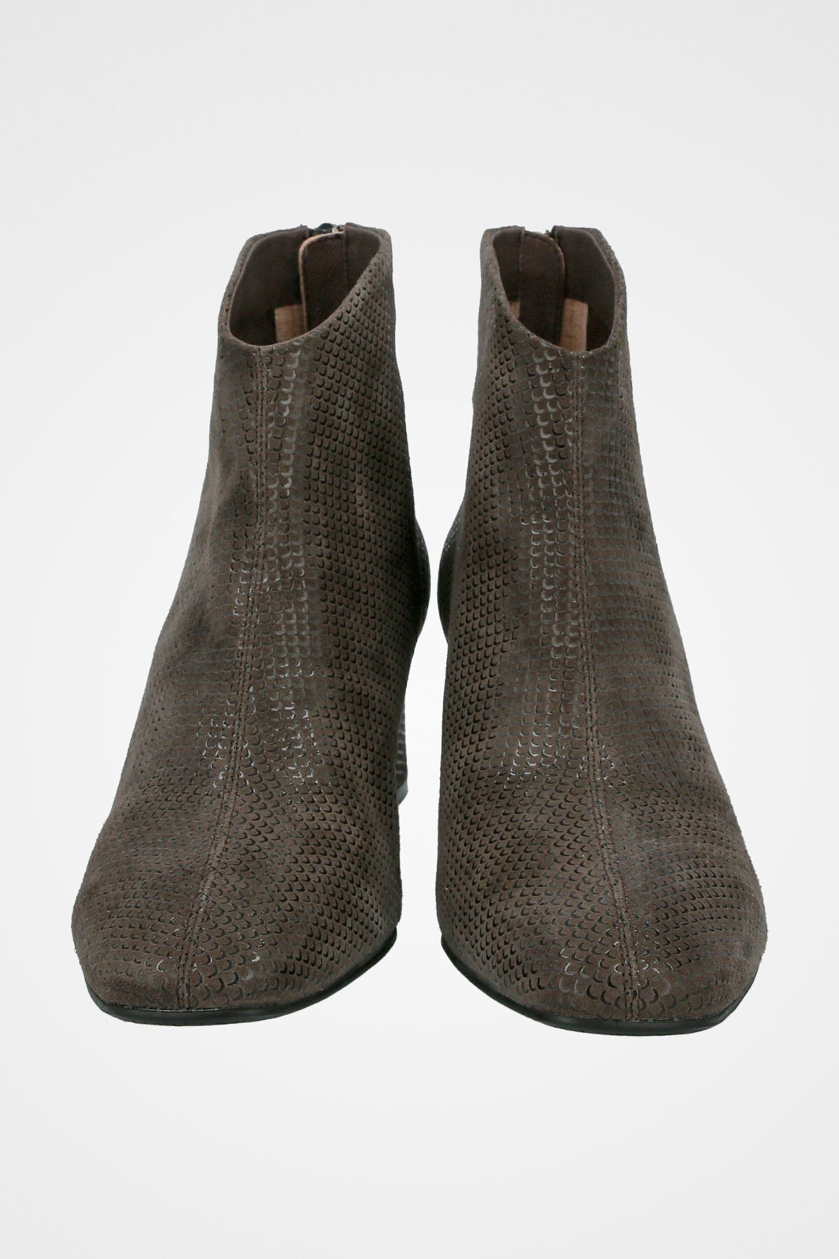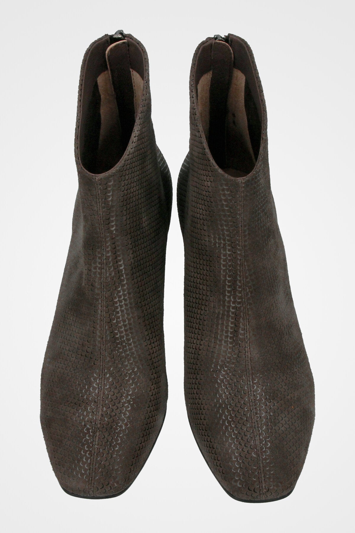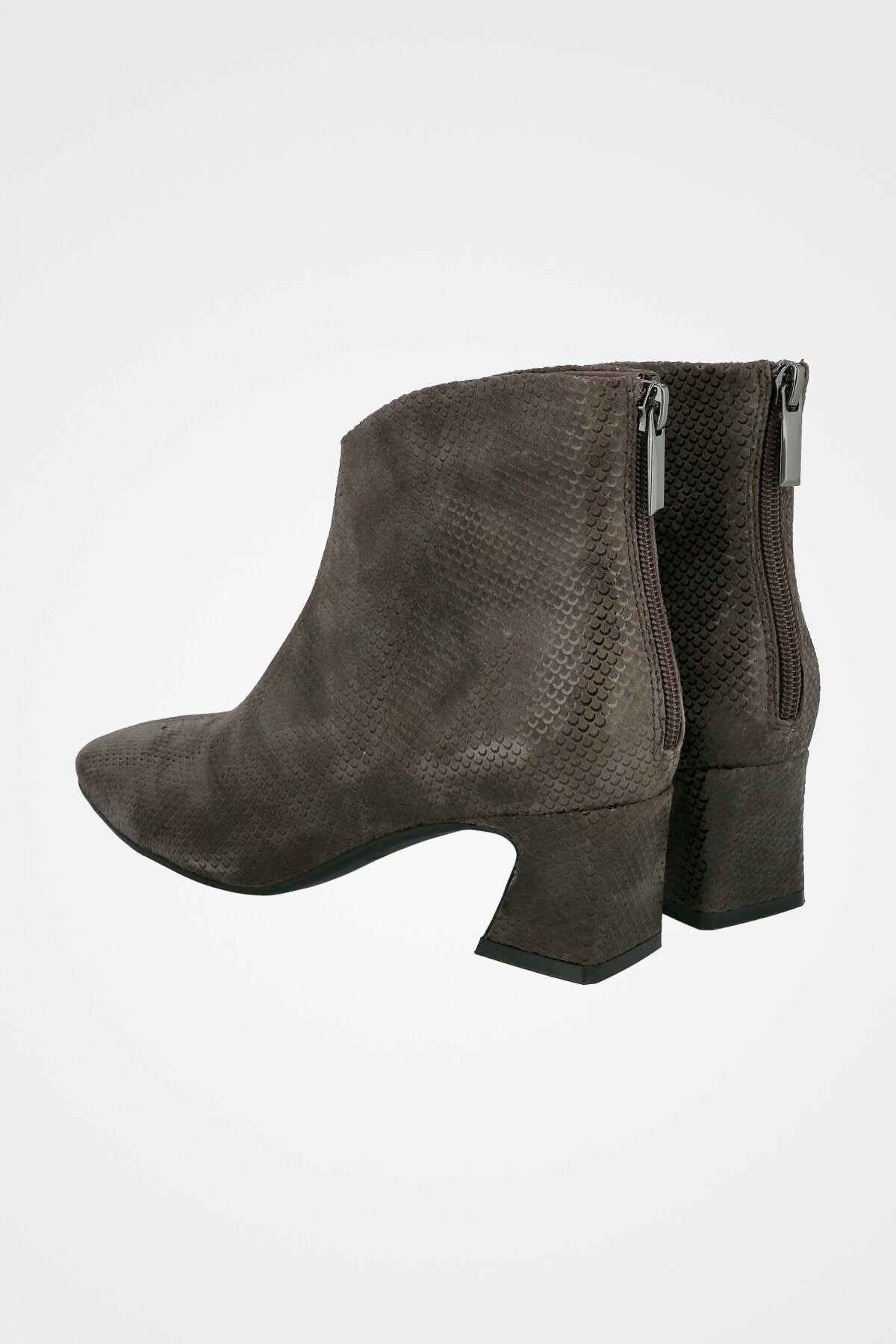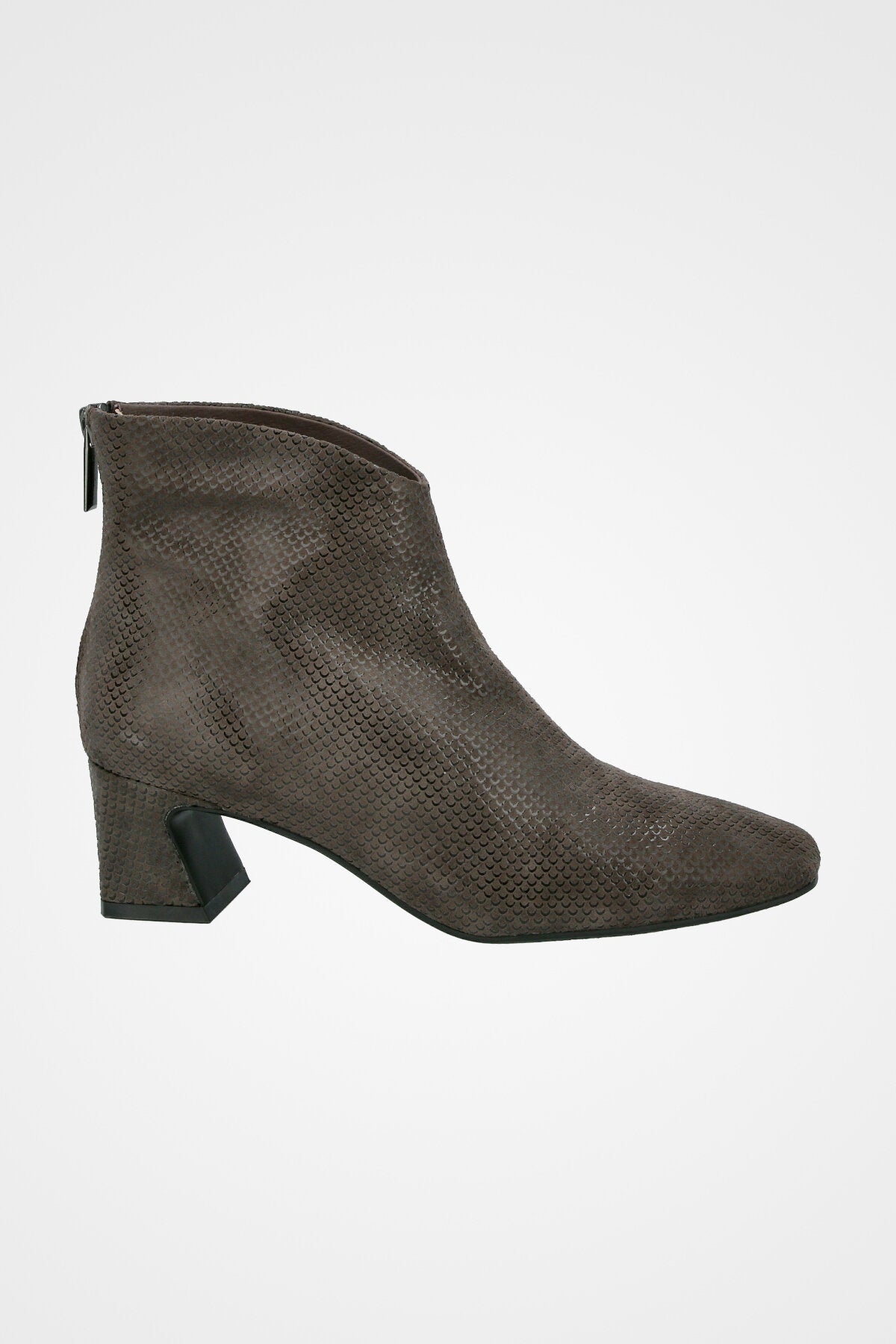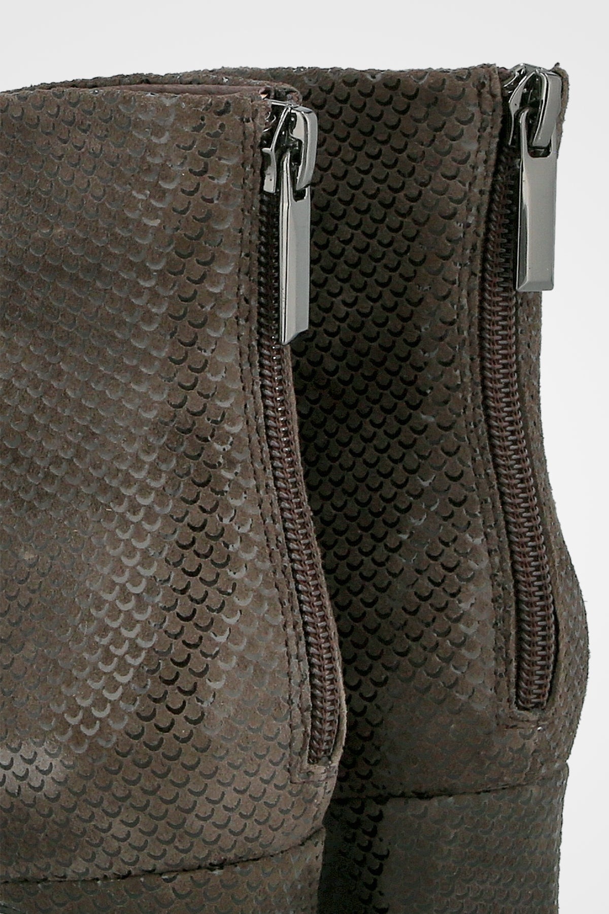 מגפון חום עם טקסטורה עדינה, קדמת נעל מעוגלת ועקב רחב ונוח בגובה בינוני