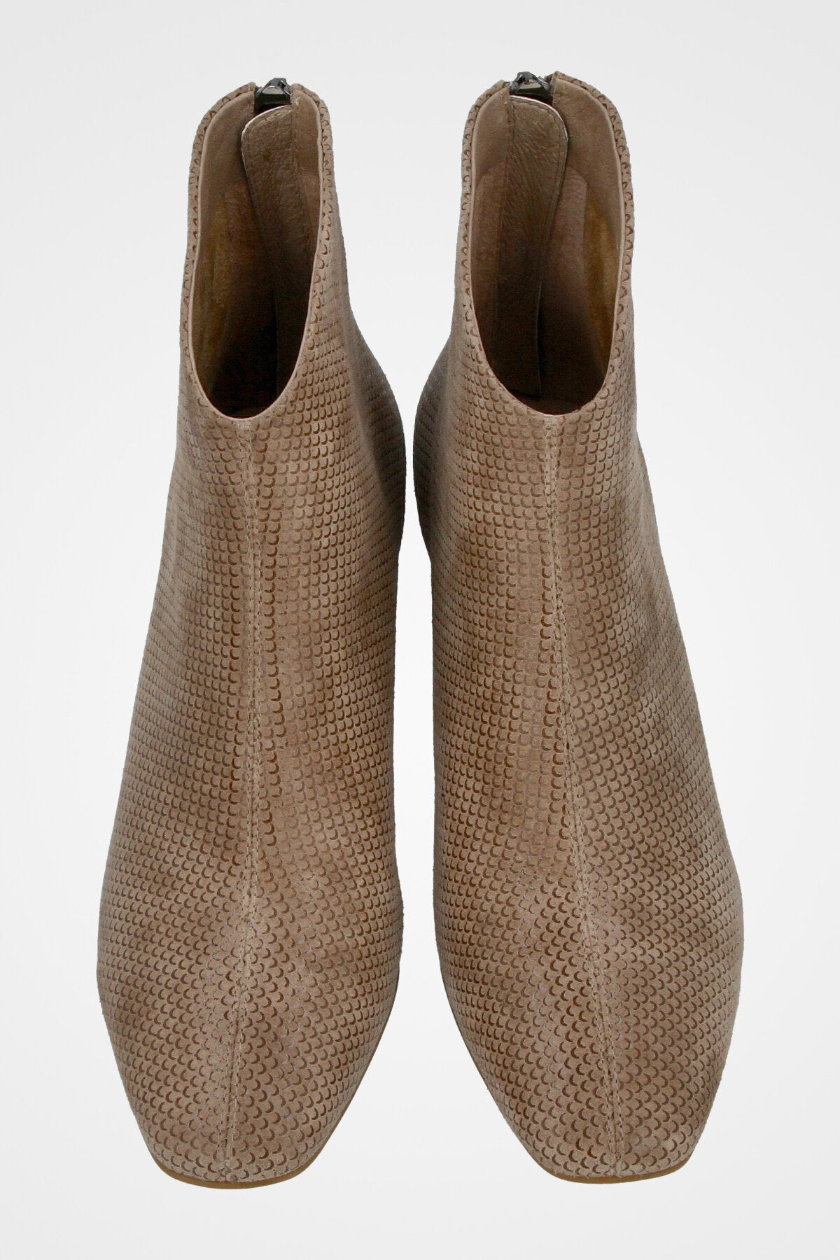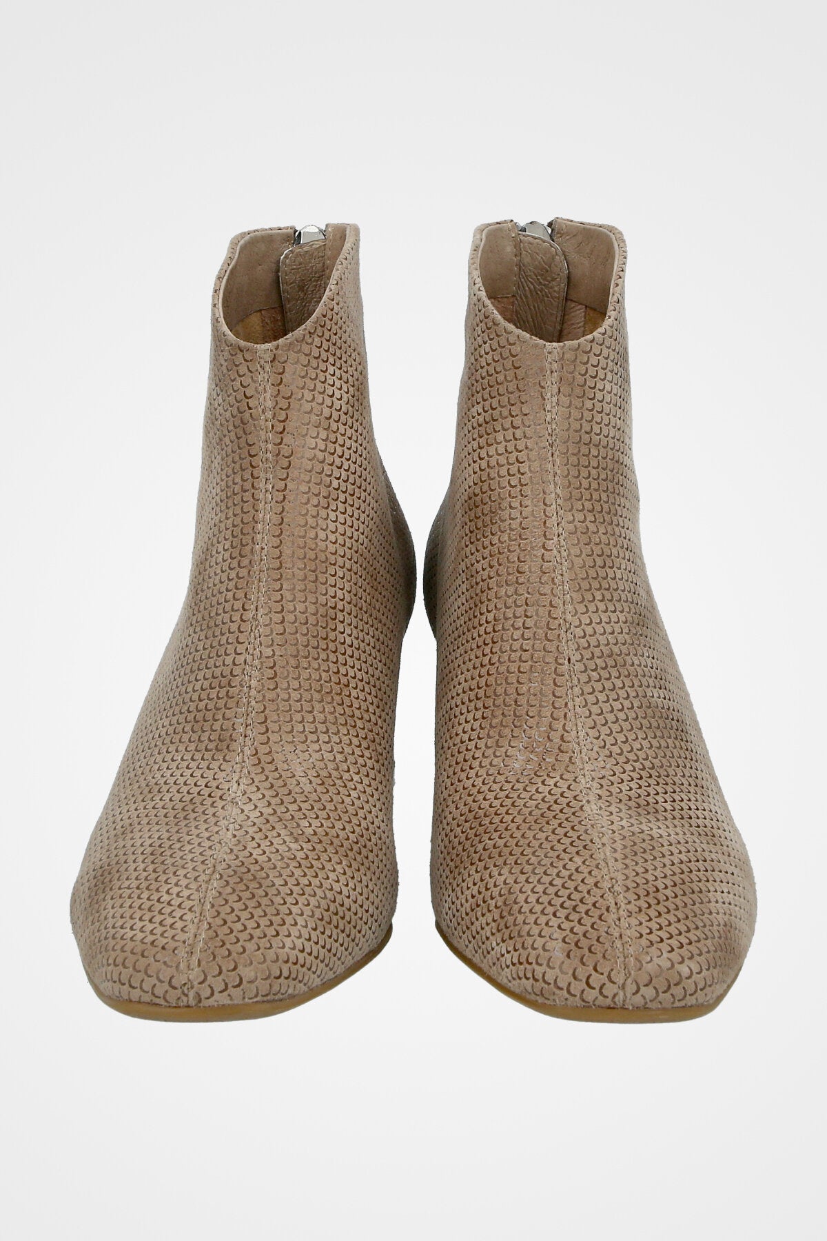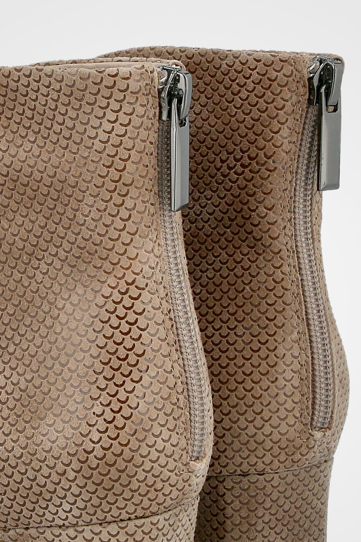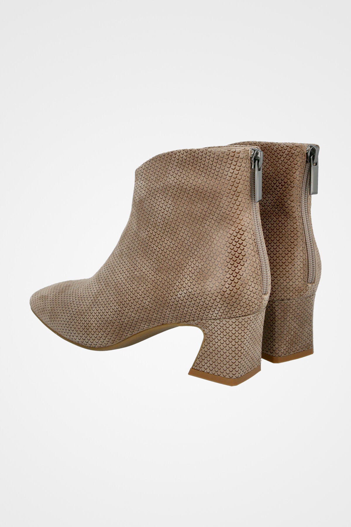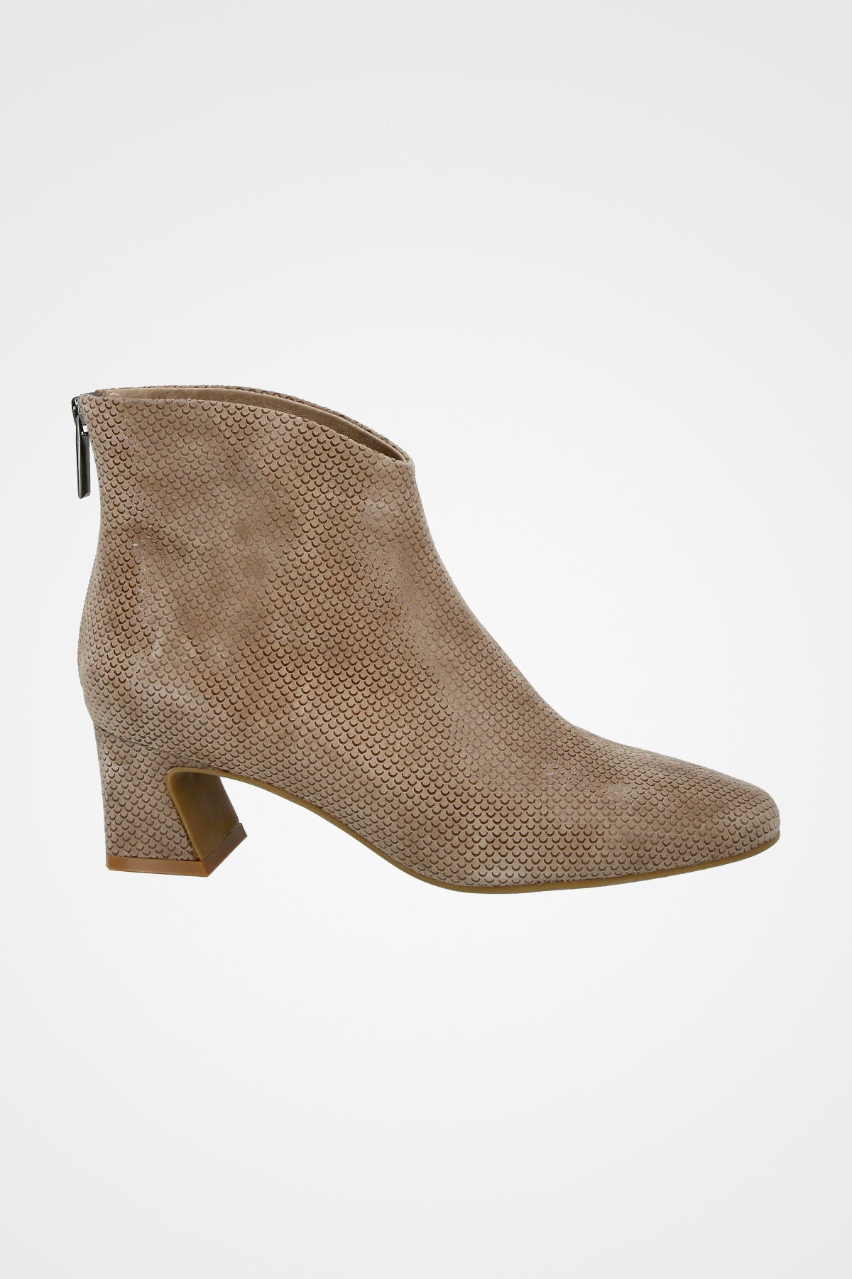 מגפון בז עם טקסטורה עדינה, קדמת נעל מעוגלת ועקב רחב ונוח בגובה בינוני