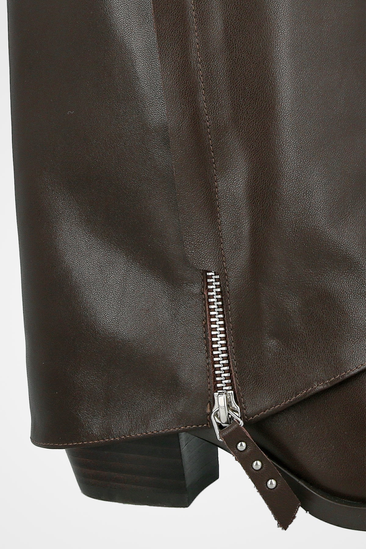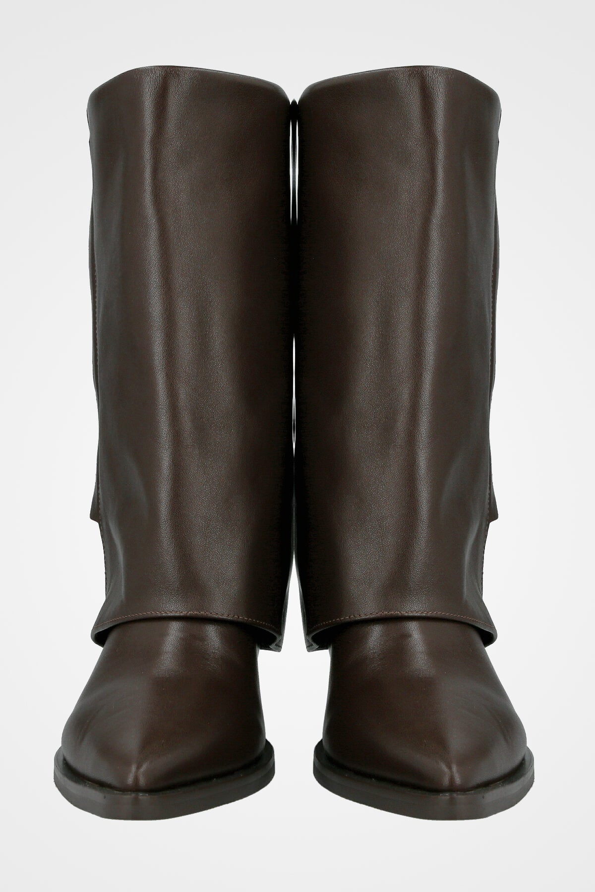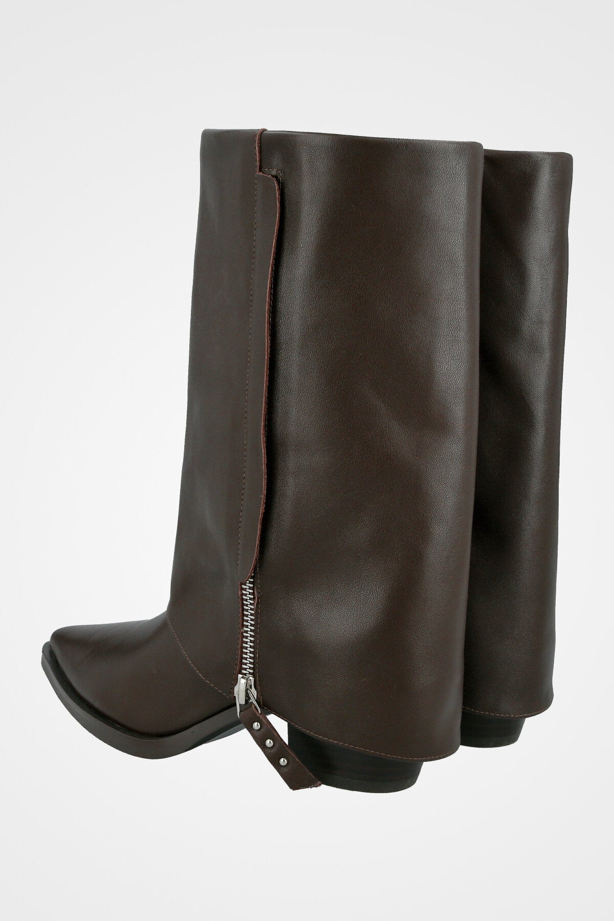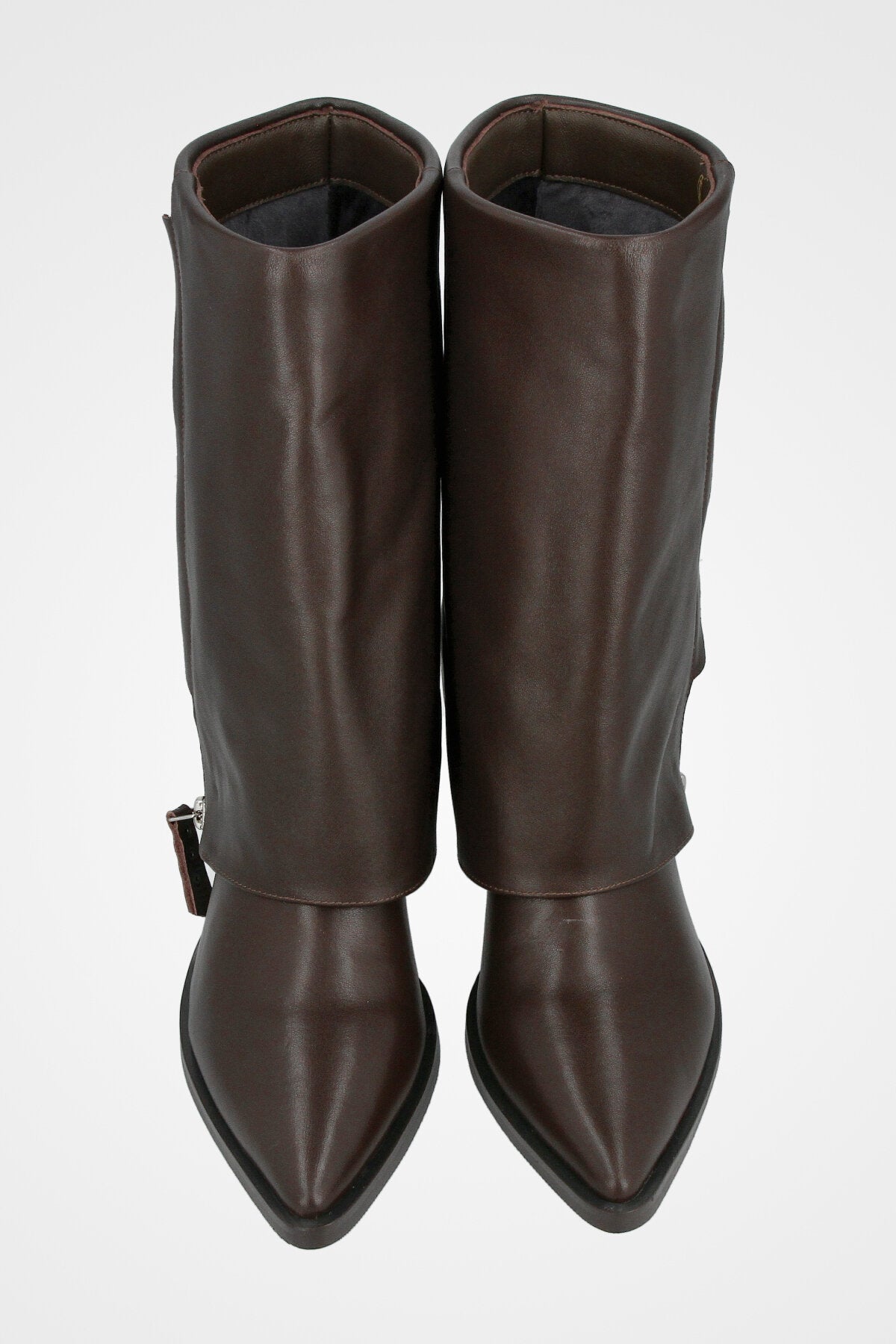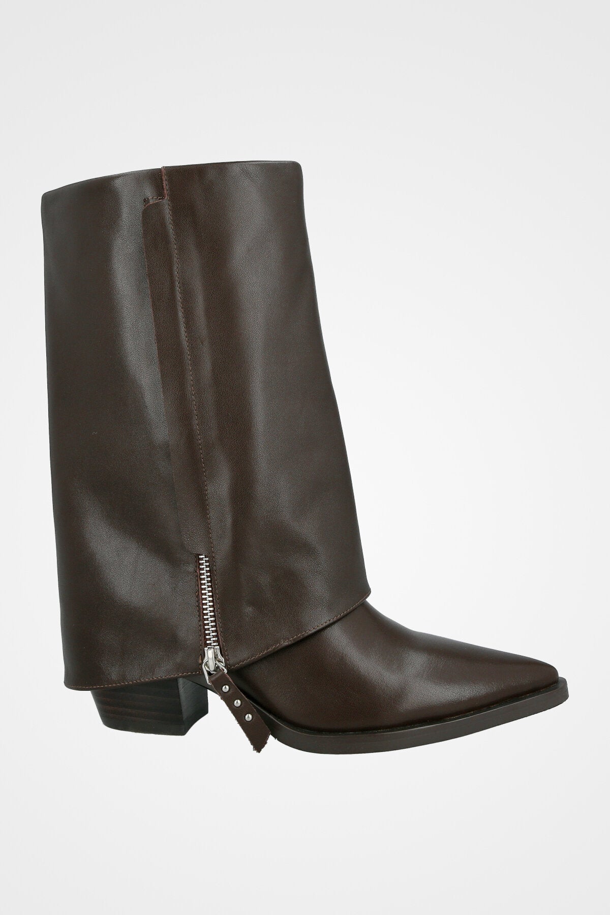 מגפון בוקרים מעור חום עם חרטום שפיץ, עקב רחב, קיפול עור ורוכסן צדדי לסגירה נוחה