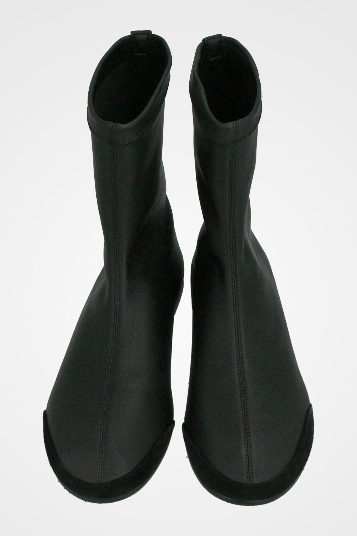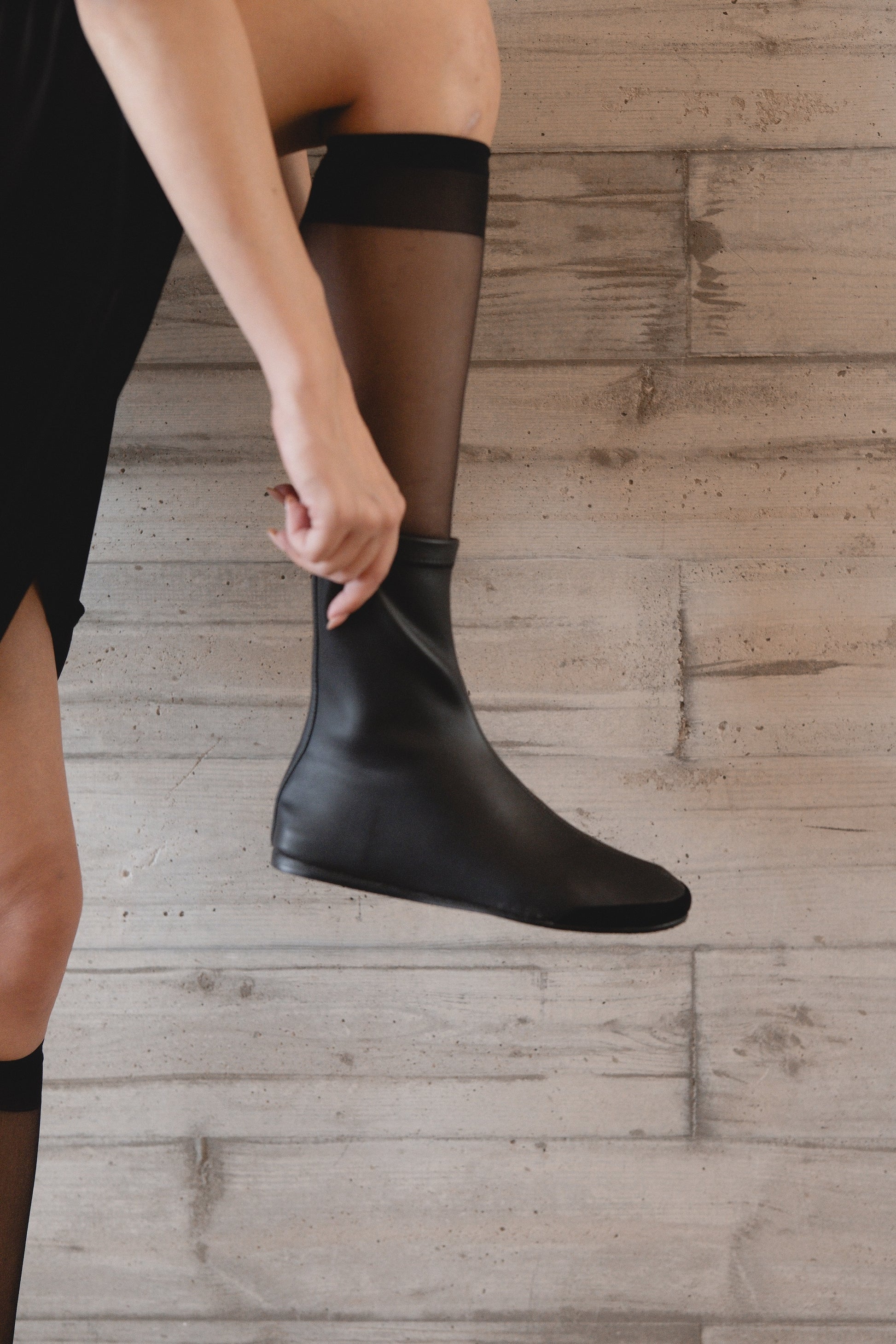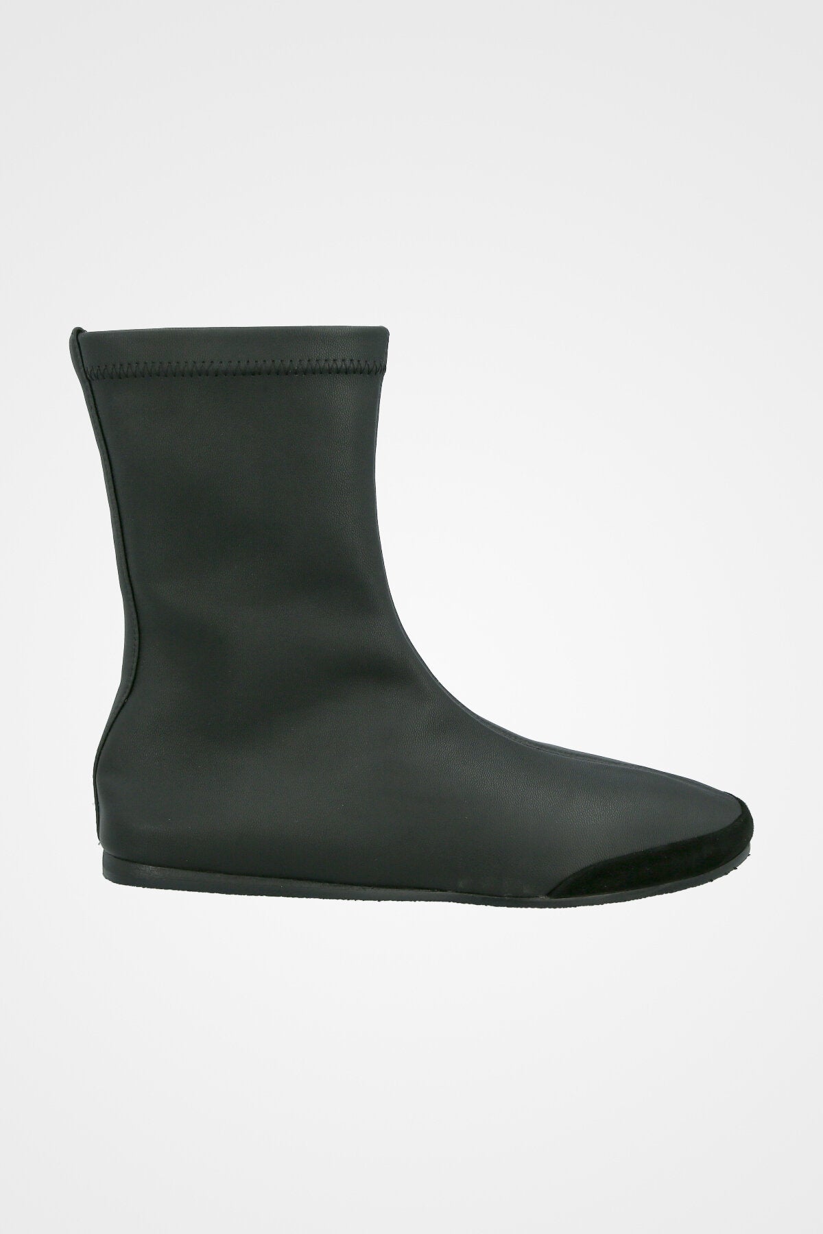 מגפון קצר בצבע שחור, בעיצוב מינימליסטי וחלק, עם סוליה שטוחה נוחה