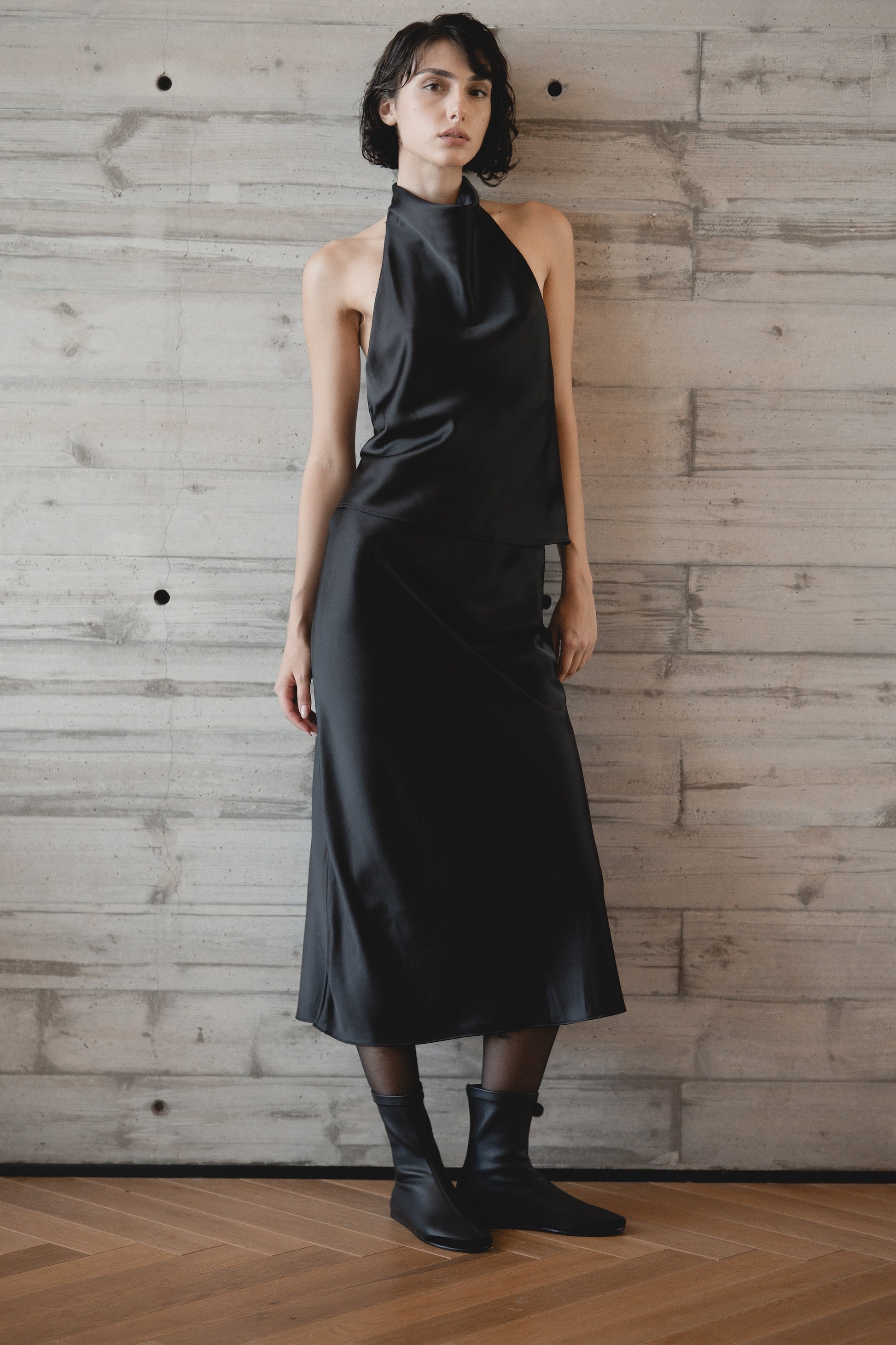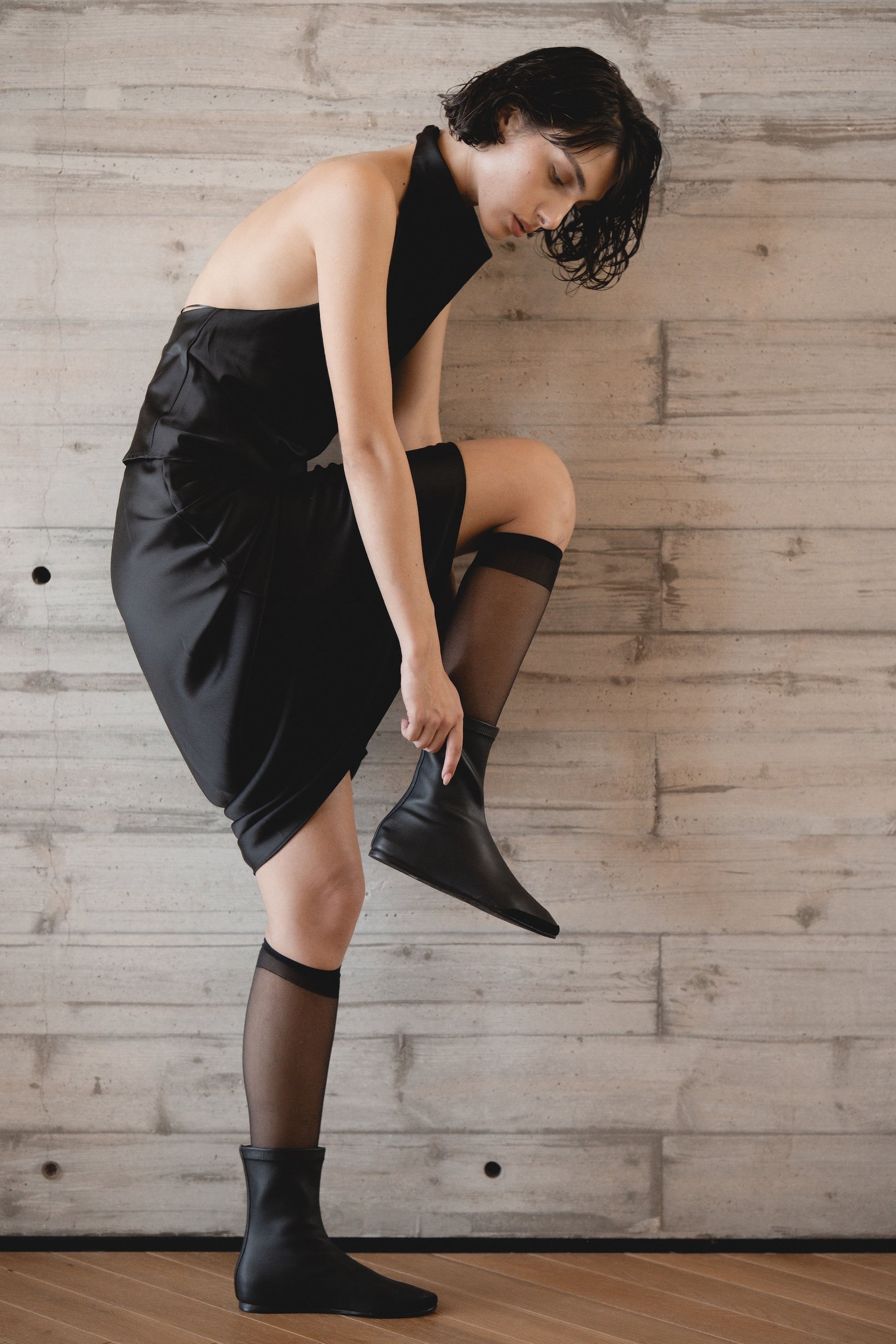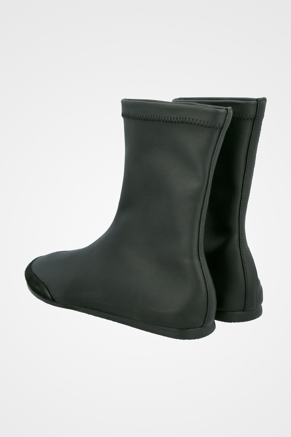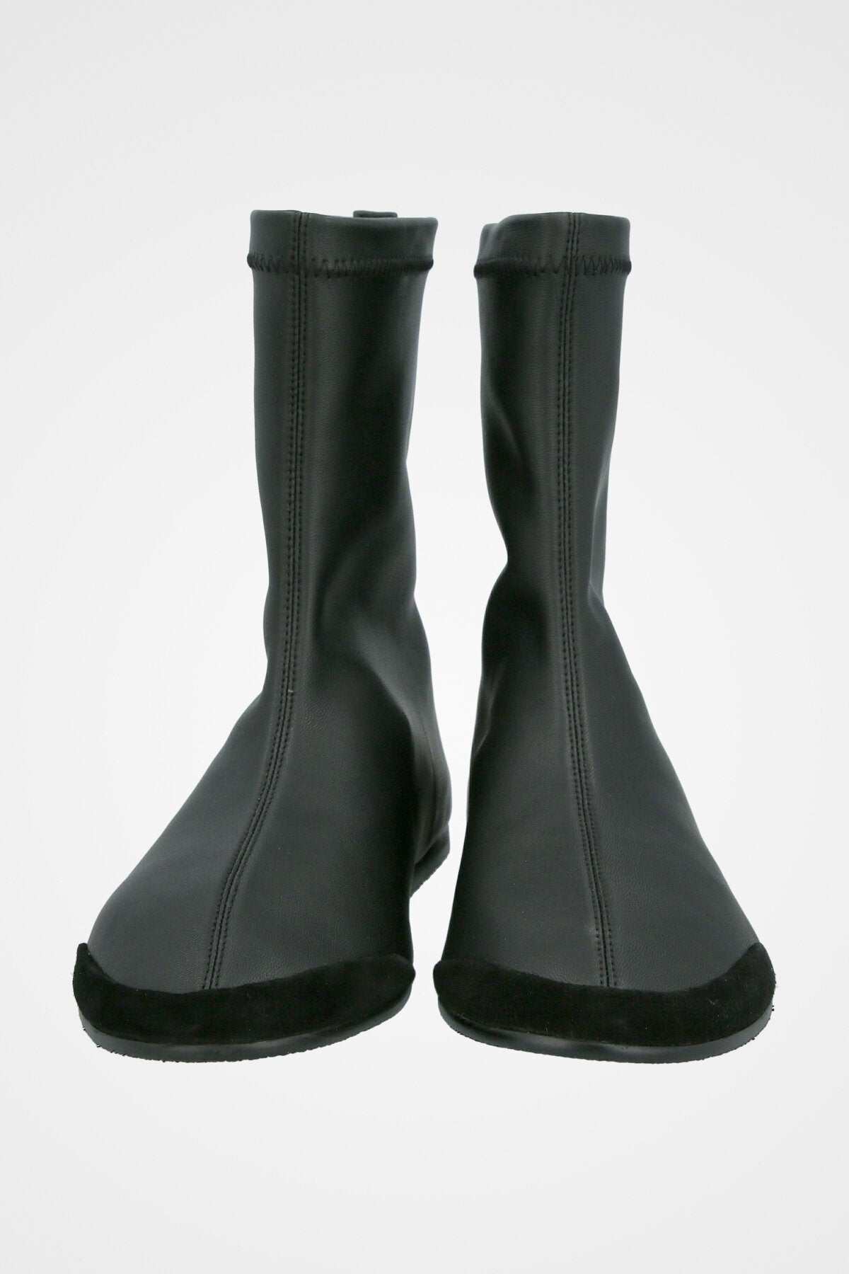 מגפון קצר בצבע שחור, בעיצוב מינימליסטי וחלק, עם סוליה שטוחה נוחה