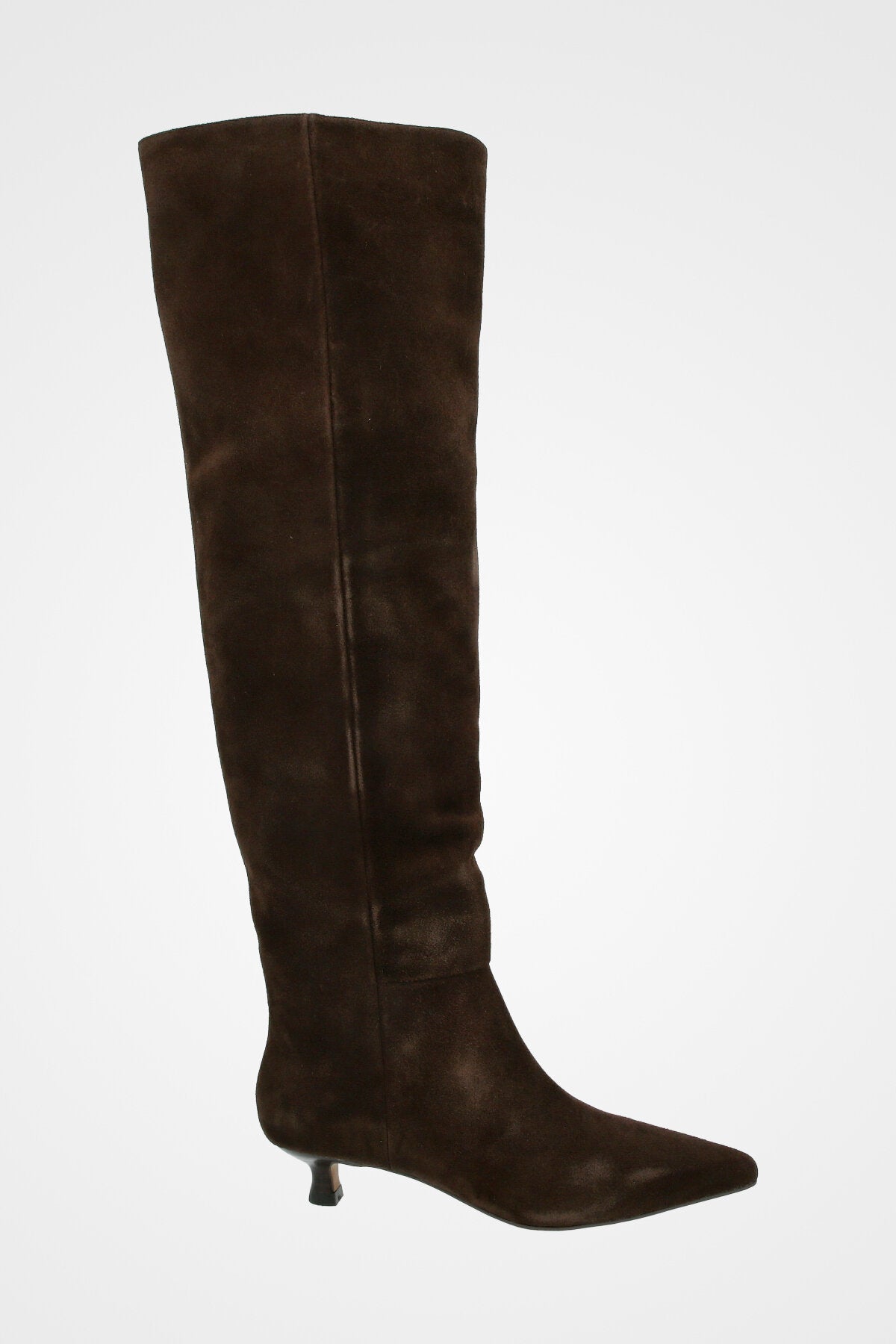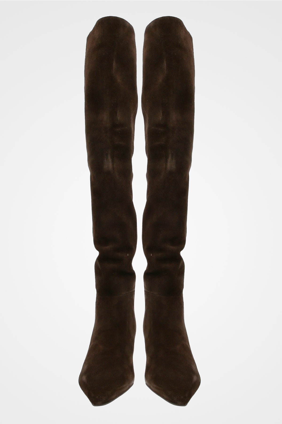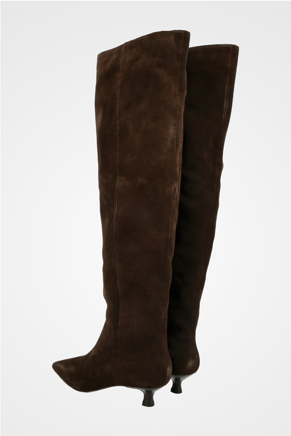 מגף גבוה מעל הברך, בעל חרטום שפיץ ועקב דק נמוך בעיצוב אלגנטי